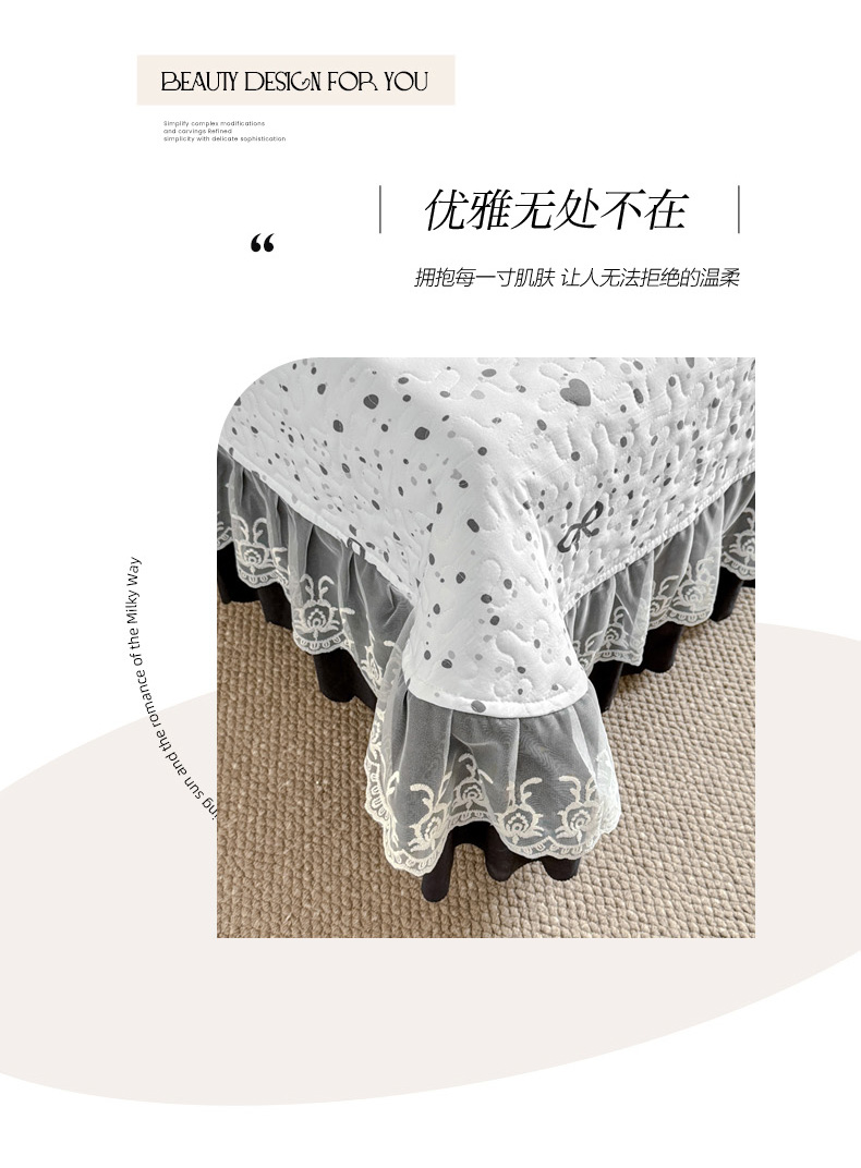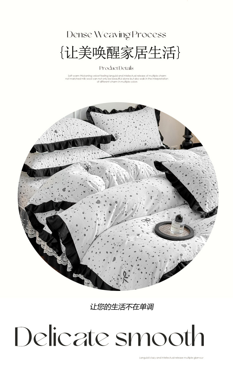 2023牛奶绒保暖四件套韩版蕾丝花边,紫色,松花绿,灰色,豆沙,宾利蓝