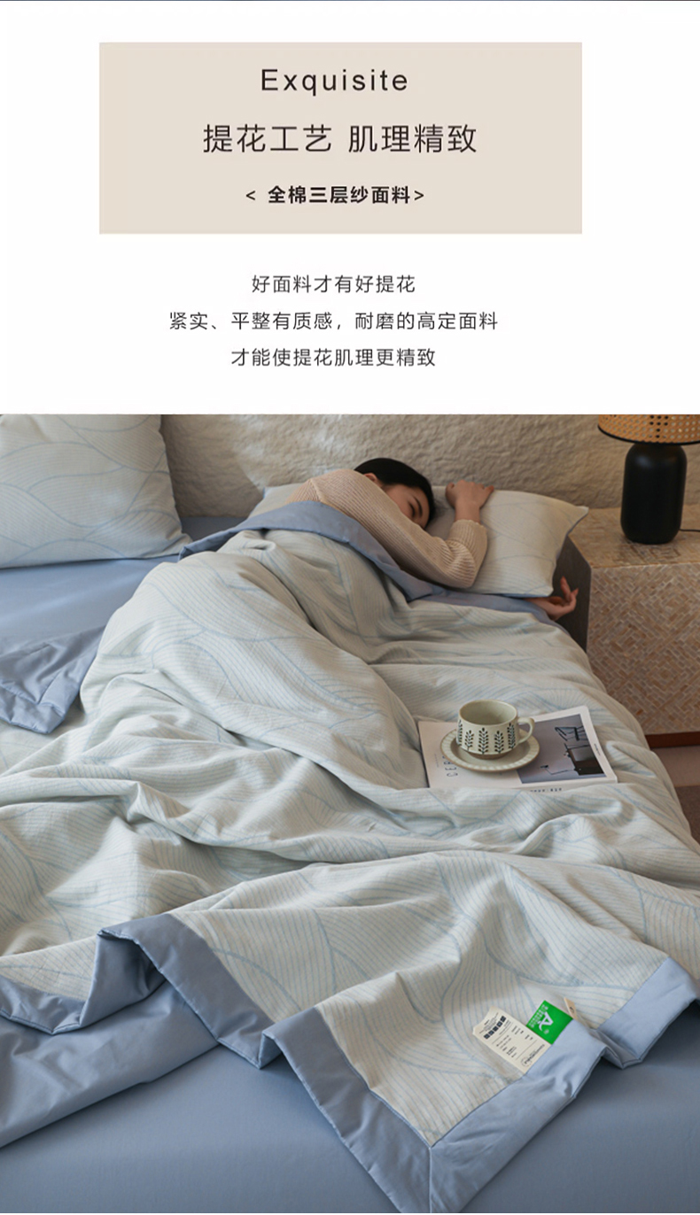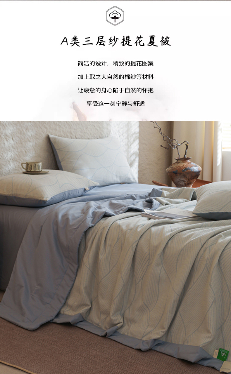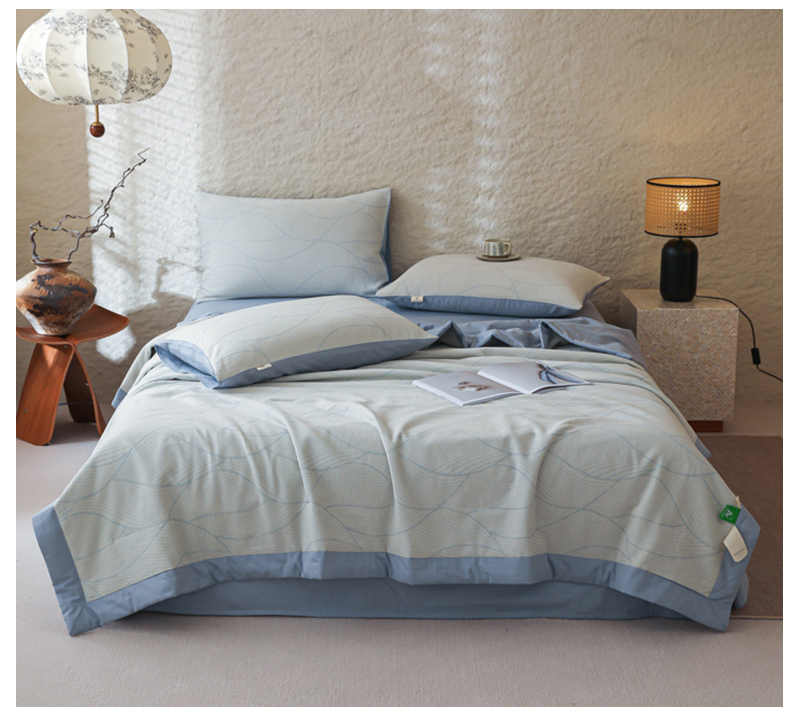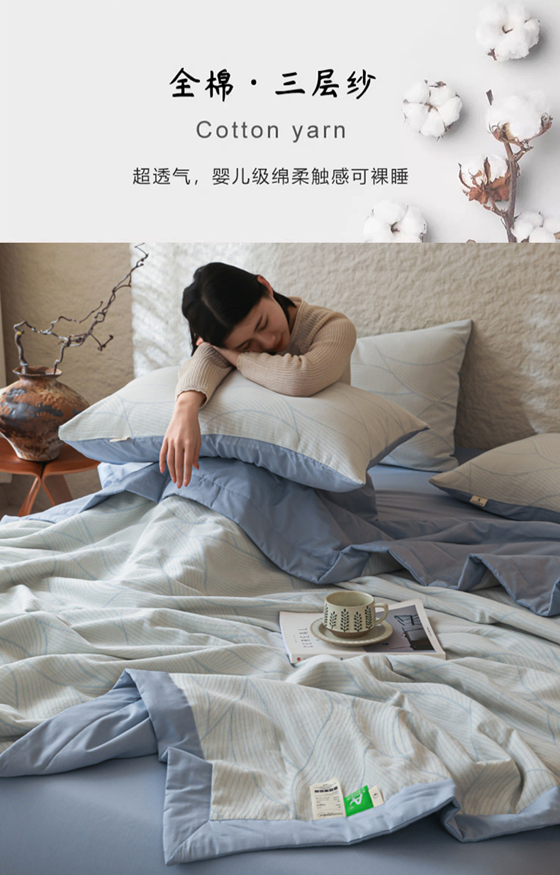 当前位置: 91家纺网 > 商品网购 > 床品套件 > 四件套 > 提花四件套 > 眠博士 2025新款A类全棉包边三层纱提花夏被四件套 包边三层纱夏被-曲线-蓝