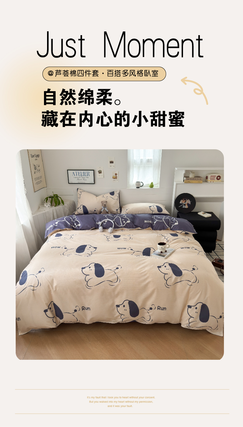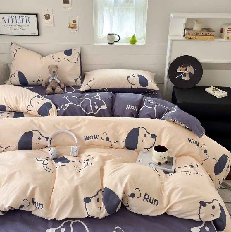 商品名称:可可家纺 2025新款印花卡通芦荟棉被套亲肤被罩单件小清新 欢乐小狗