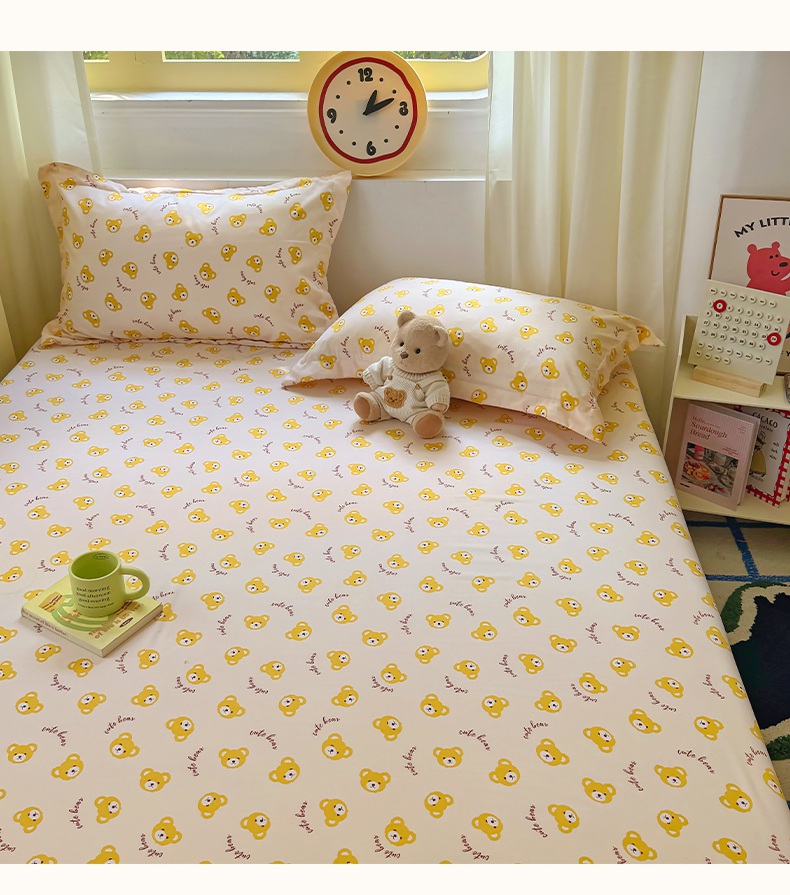 (总)十一家居 2025新款ins韩系卡通印花亲肤水洗棉床笠,黑色可颂,彩蝶之舞,波点小猫,欢乐伙伴,焦糖蘑菇,面包甜甜圈,奶芙小熊,微笑狗狗,组合