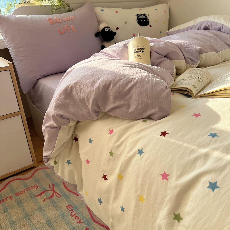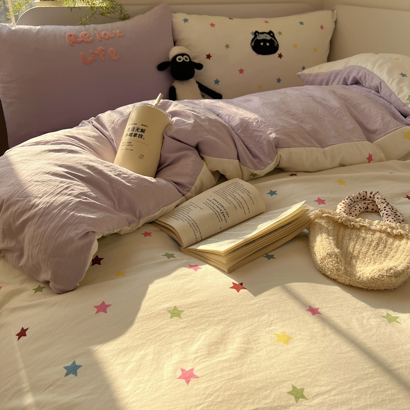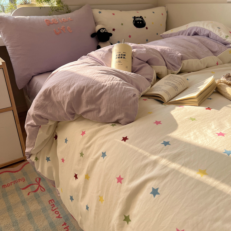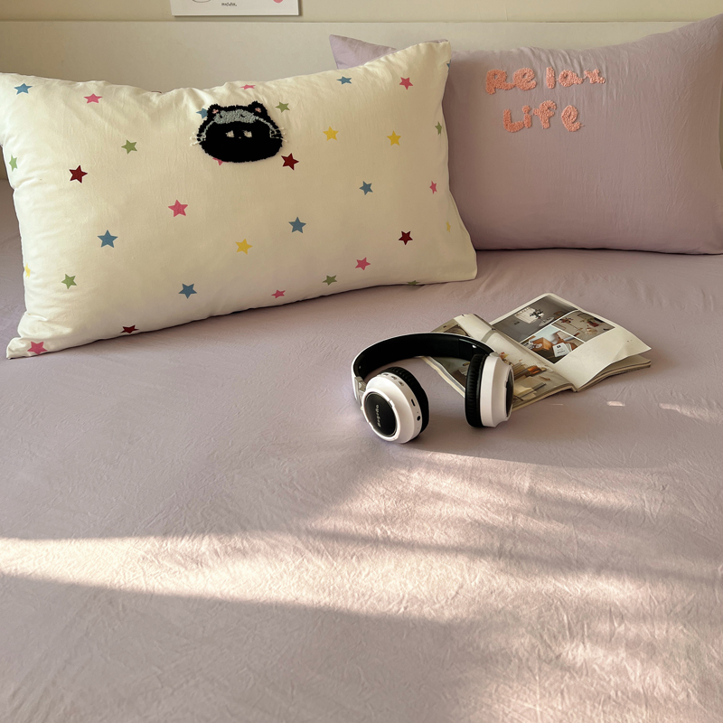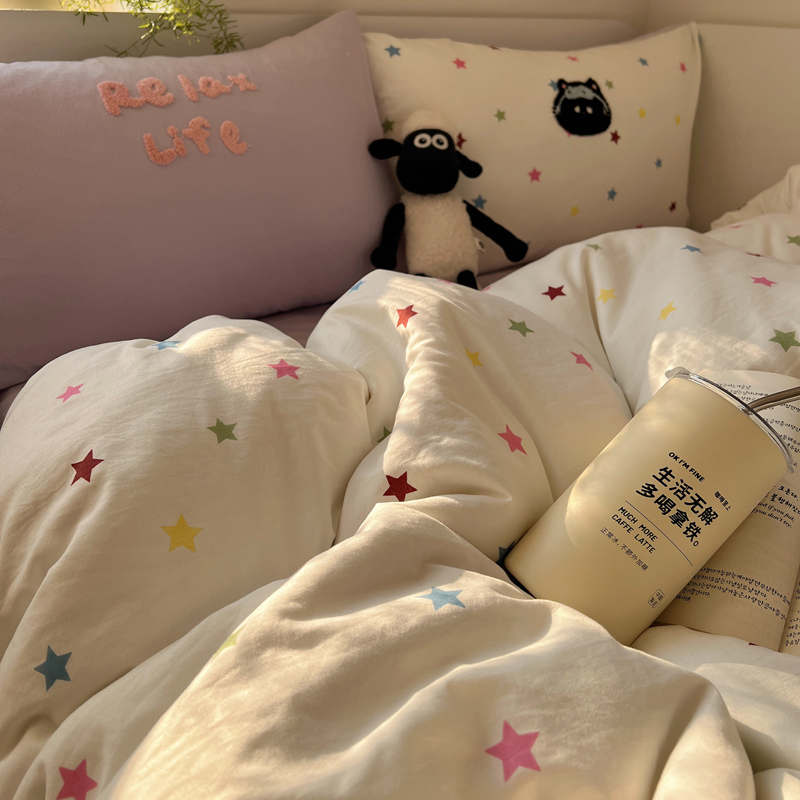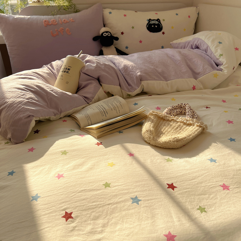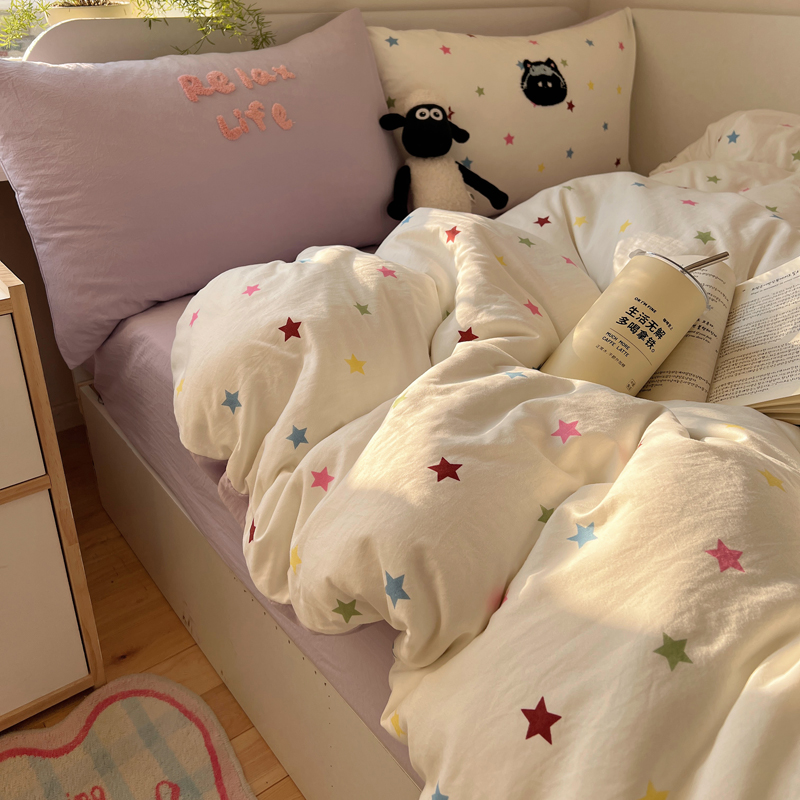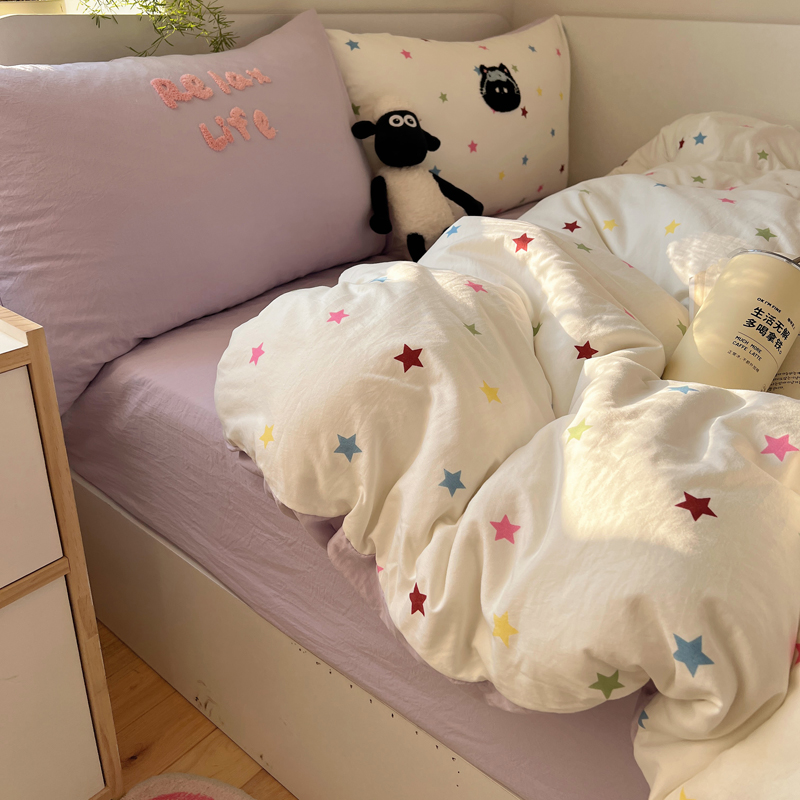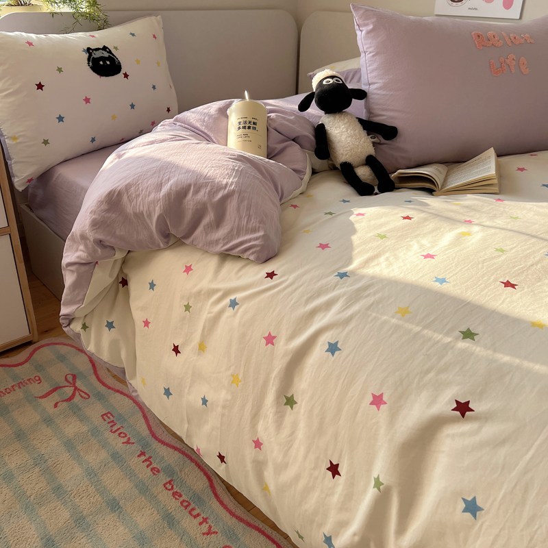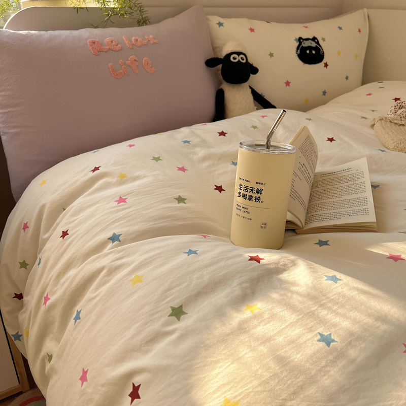 商品名称:顾里家纺 2025新款ins韩系童趣毛巾绣云朵棉四件套 彩星黑猫
