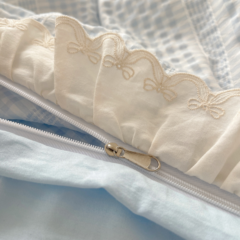 轻奢坊 2025新款色织提花格子水洗棉仙仙花边安妮四件套 花边安妮-蓝