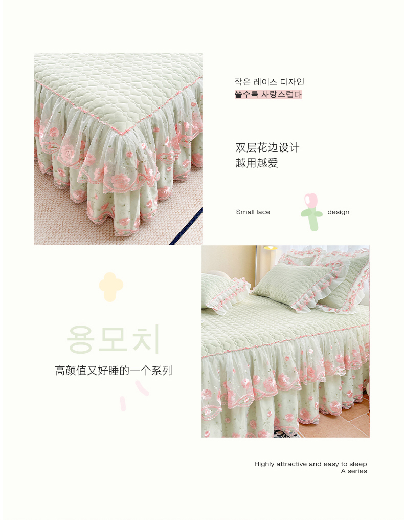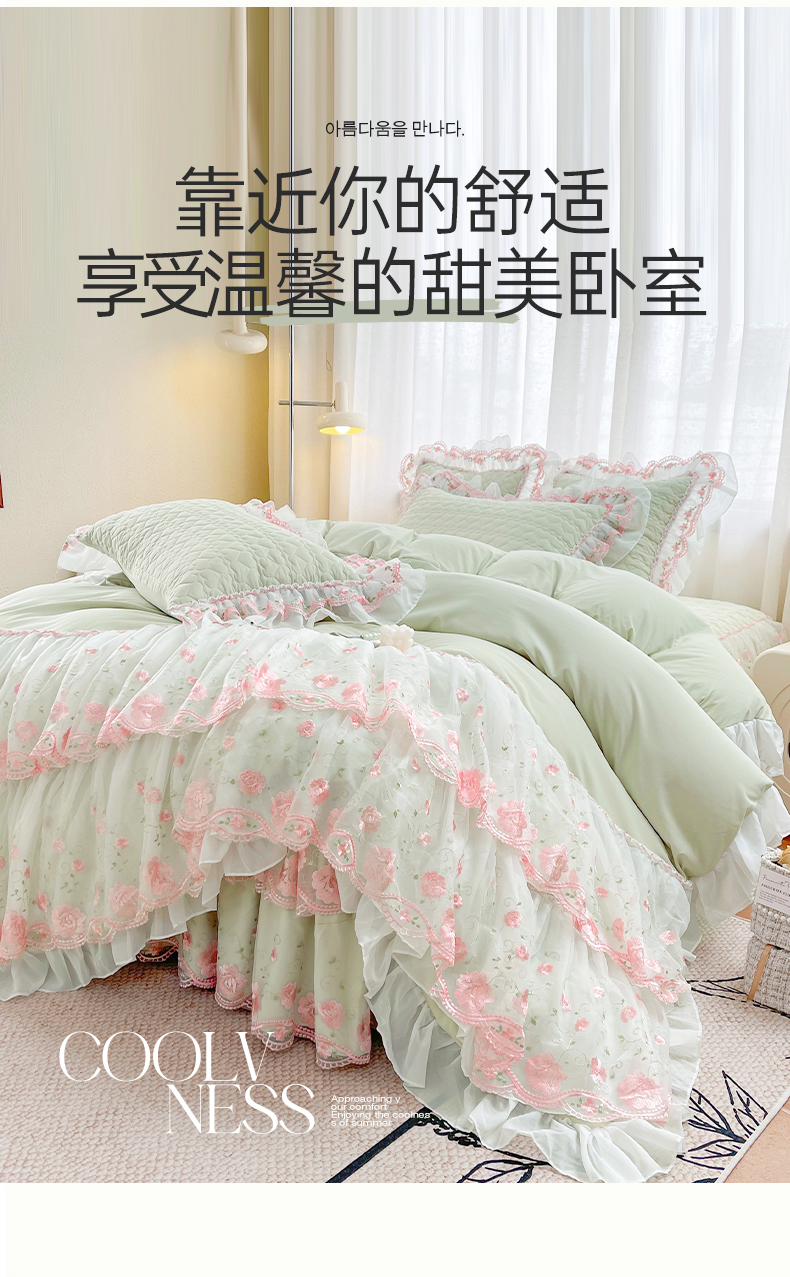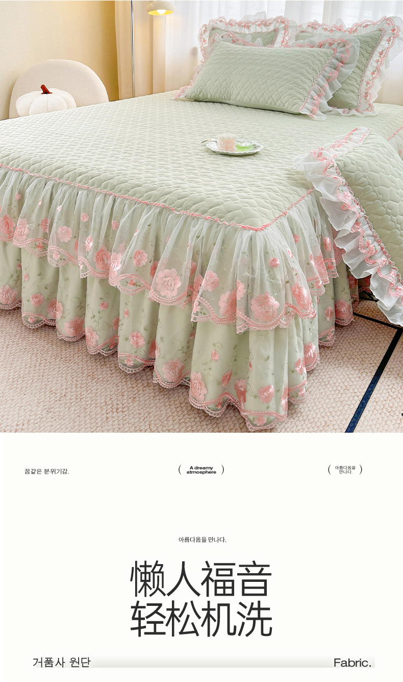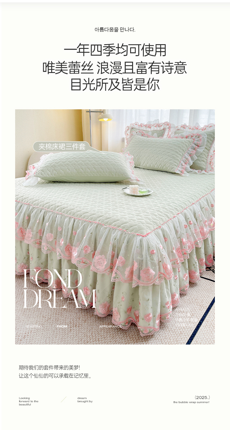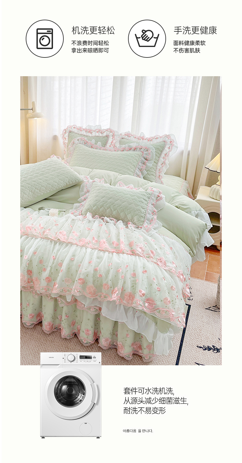 当前位置: 91家纺网 > 商品网购 > 床品套件 > 四件套 > 化纤普通四件套 > 罗艺轩 2025新款A类珍珠棉花边床裙四件套-梦幻花园 梦幻花园-碧草绿