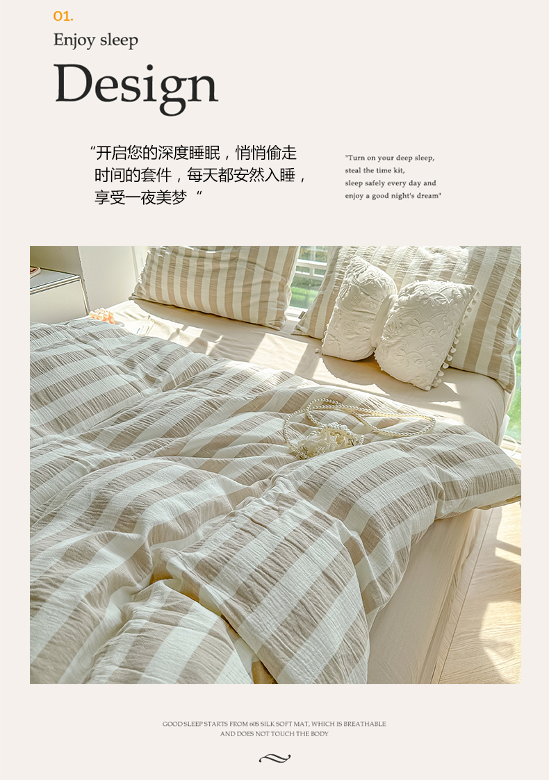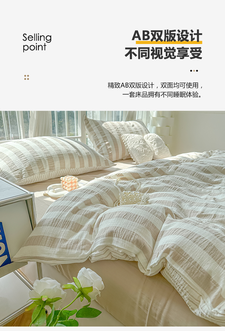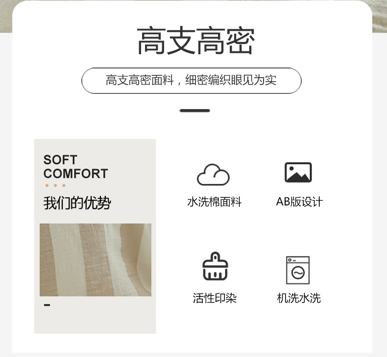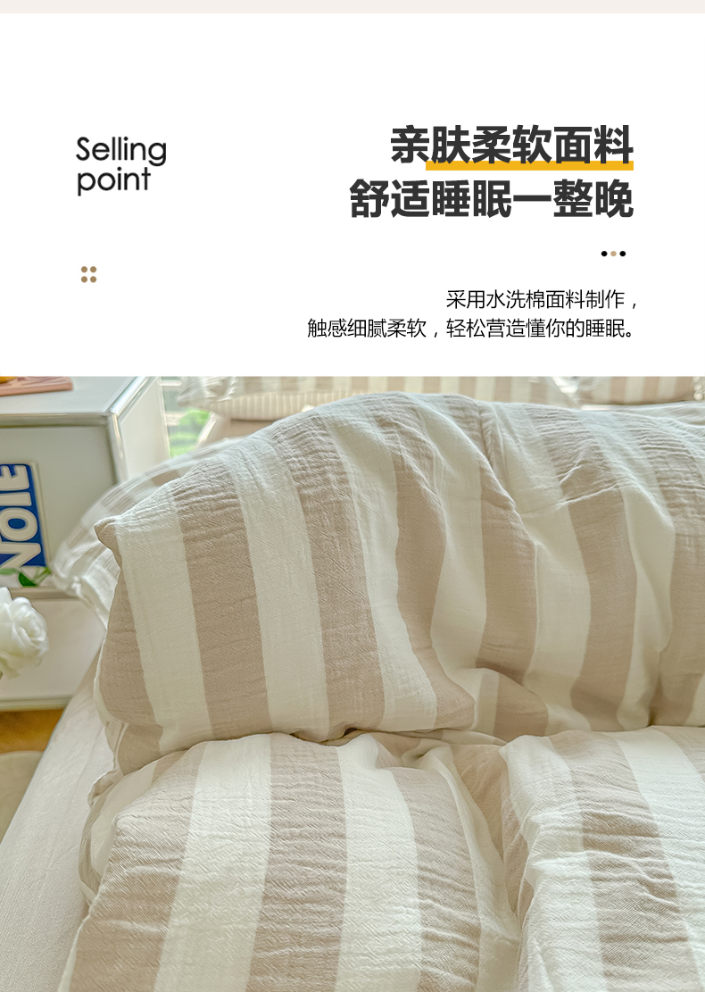 当前位置: 91家纺网 > 商品网购 > 床品套件 > 四件套 > 水洗棉四件套 > 悦织湾家纺 2025新款水洗棉亲肤云朵条纹四件套 云朵条纹奶咖