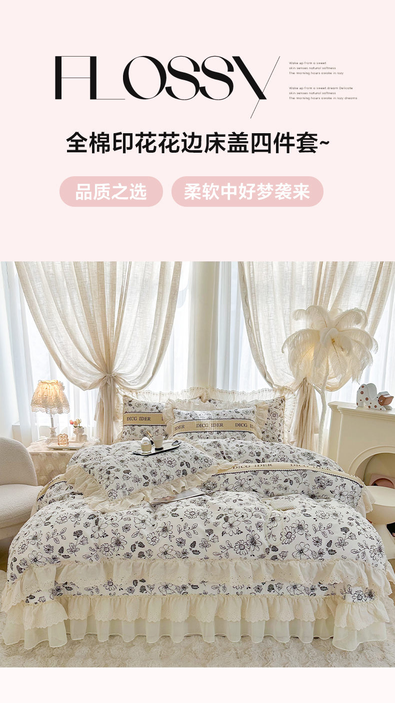 当前位置: 91家纺网 > 商品网购 > 床品套件 > 四件套 > 全棉普通四件套 > 罗艺轩 2025新款全棉印花花边床盖四件套 迪克奥莱