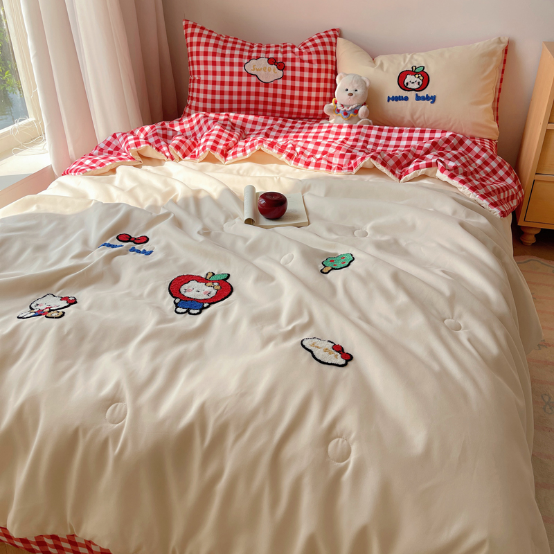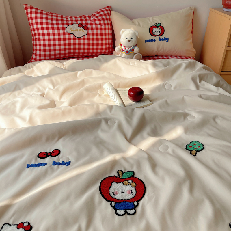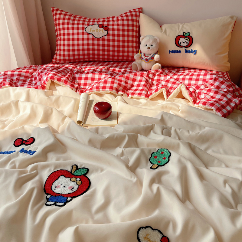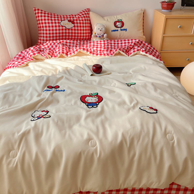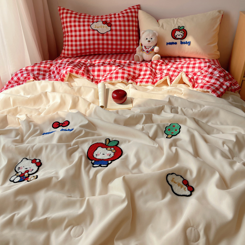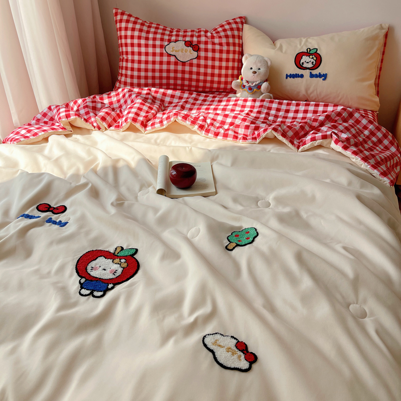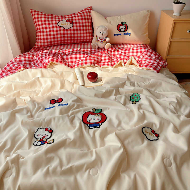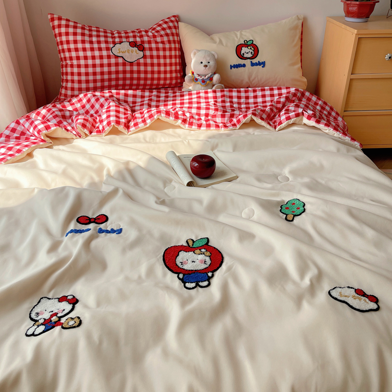 桃喜 2025新款水洗棉毛巾绣单夏被被子被芯夏被套件(非全棉)系列1 红格子小猫