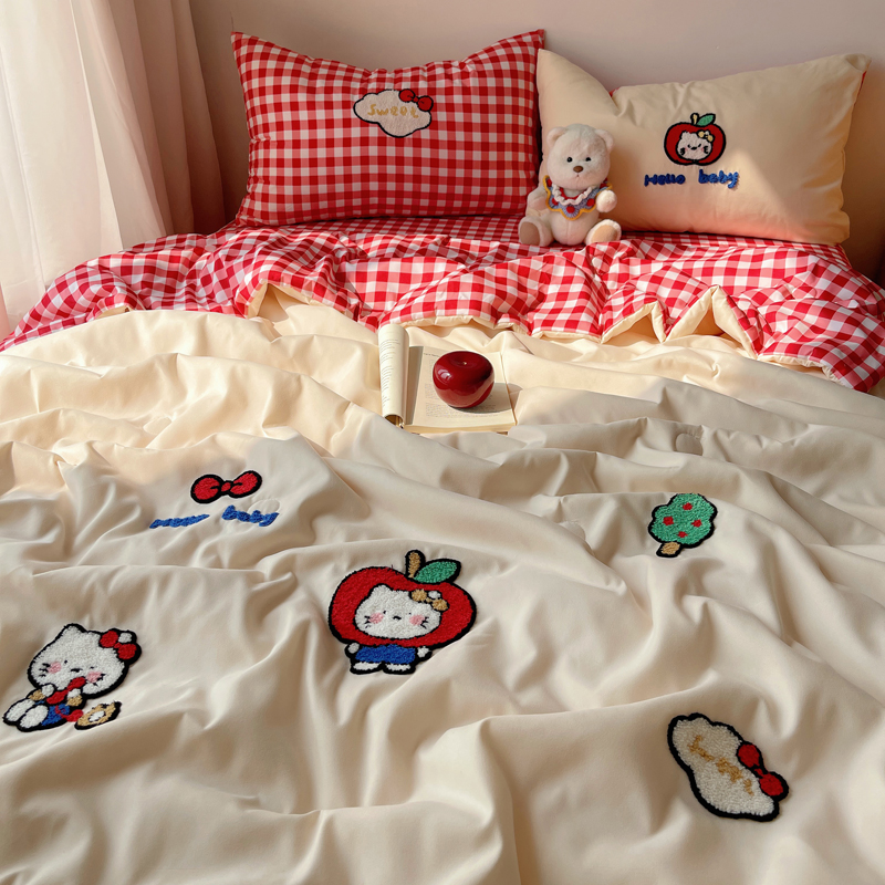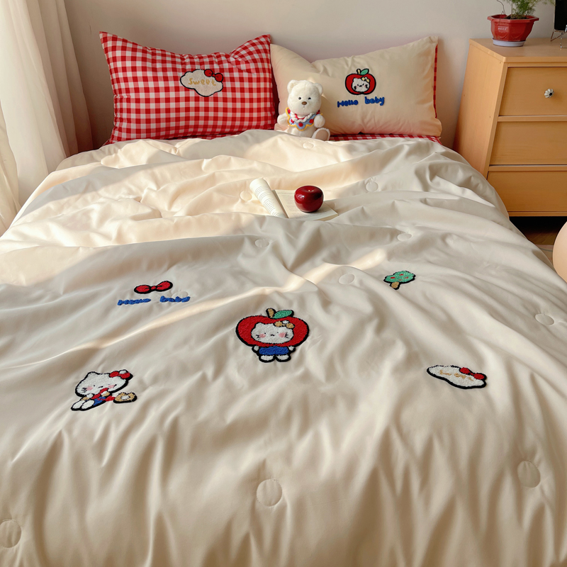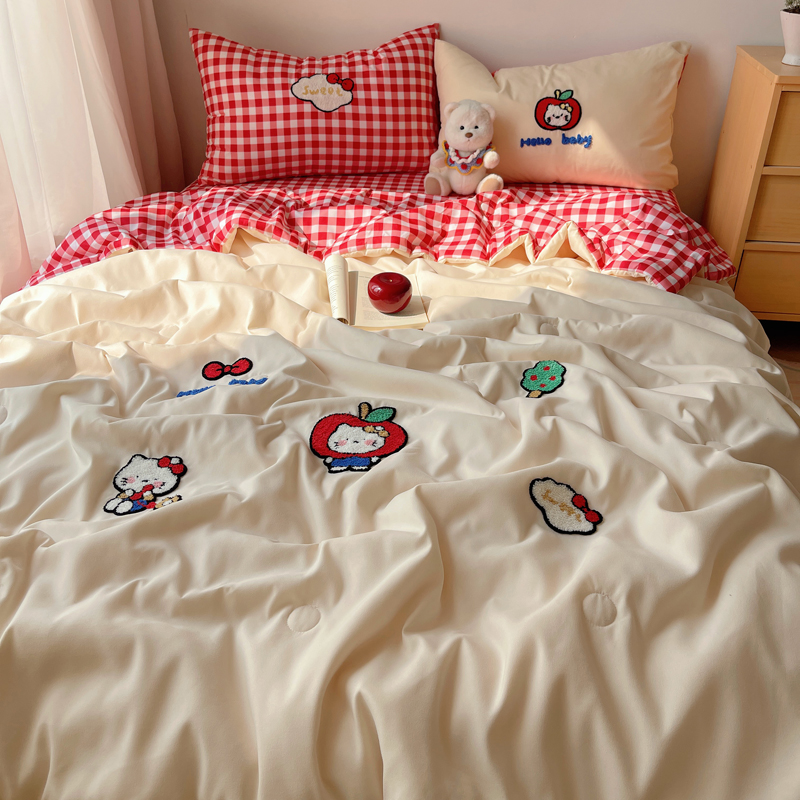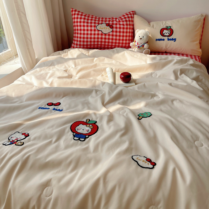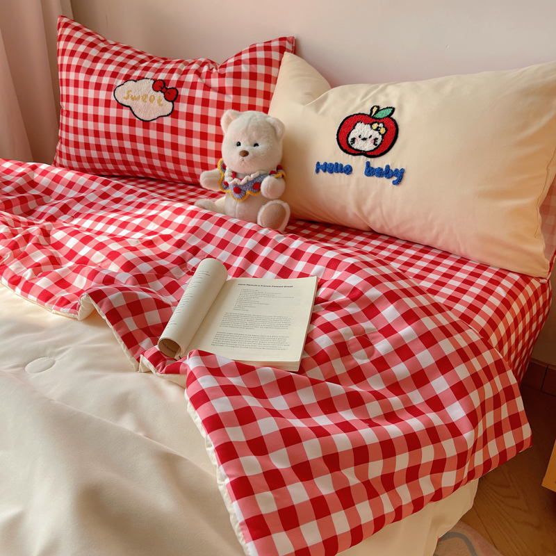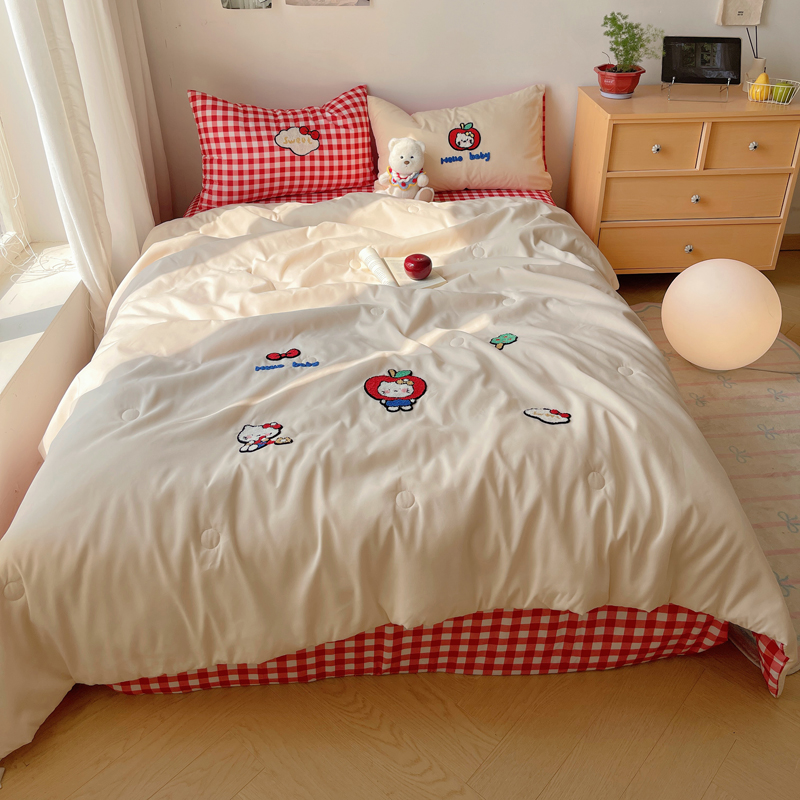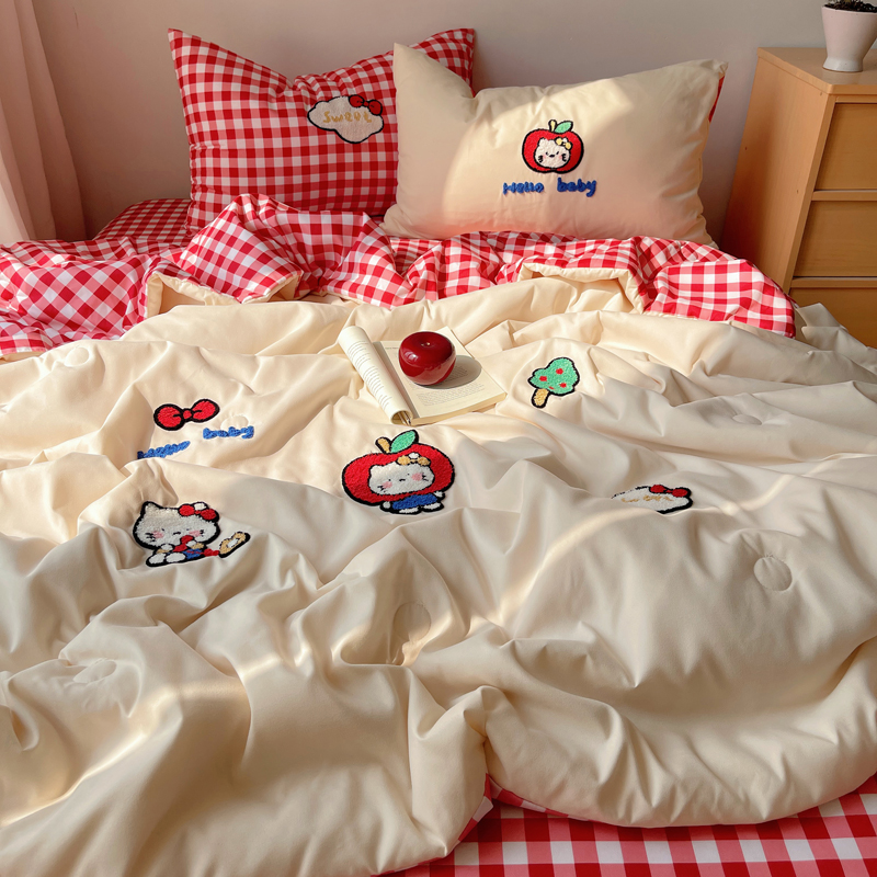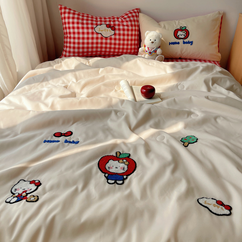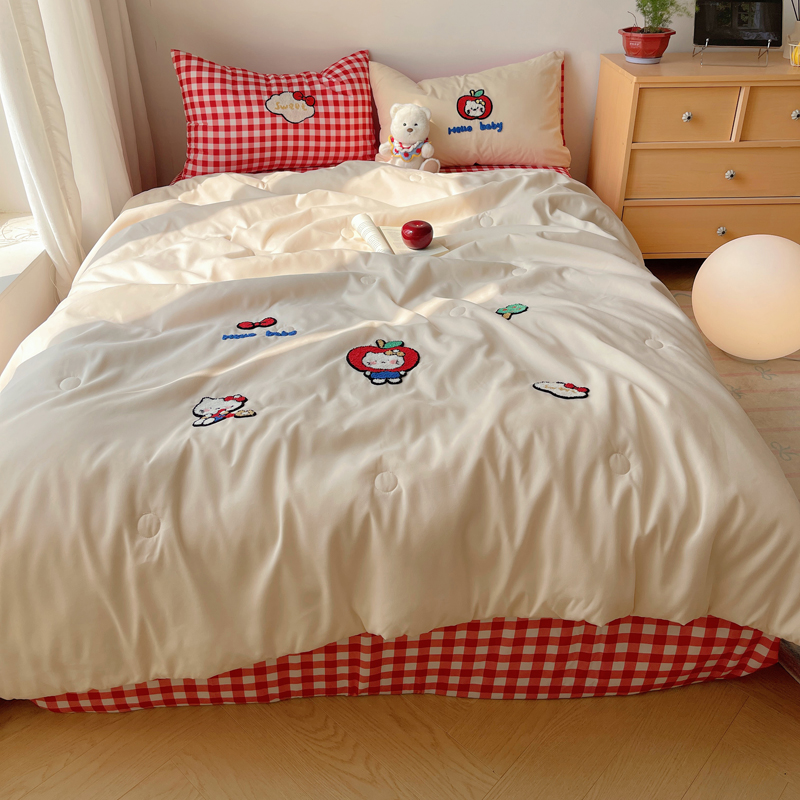 桃喜 2025新款水洗棉毛巾绣单夏被被子被芯夏被套件(非全棉)系列1 红格子小猫