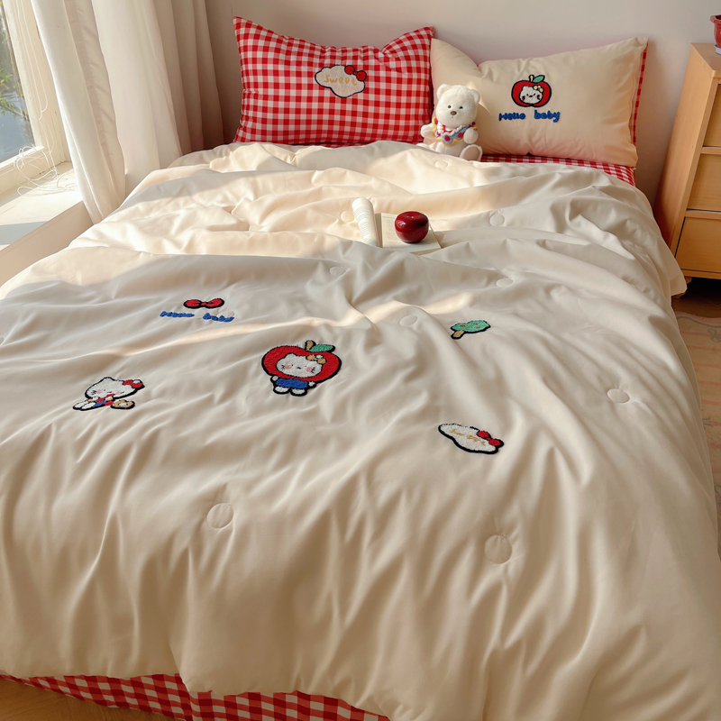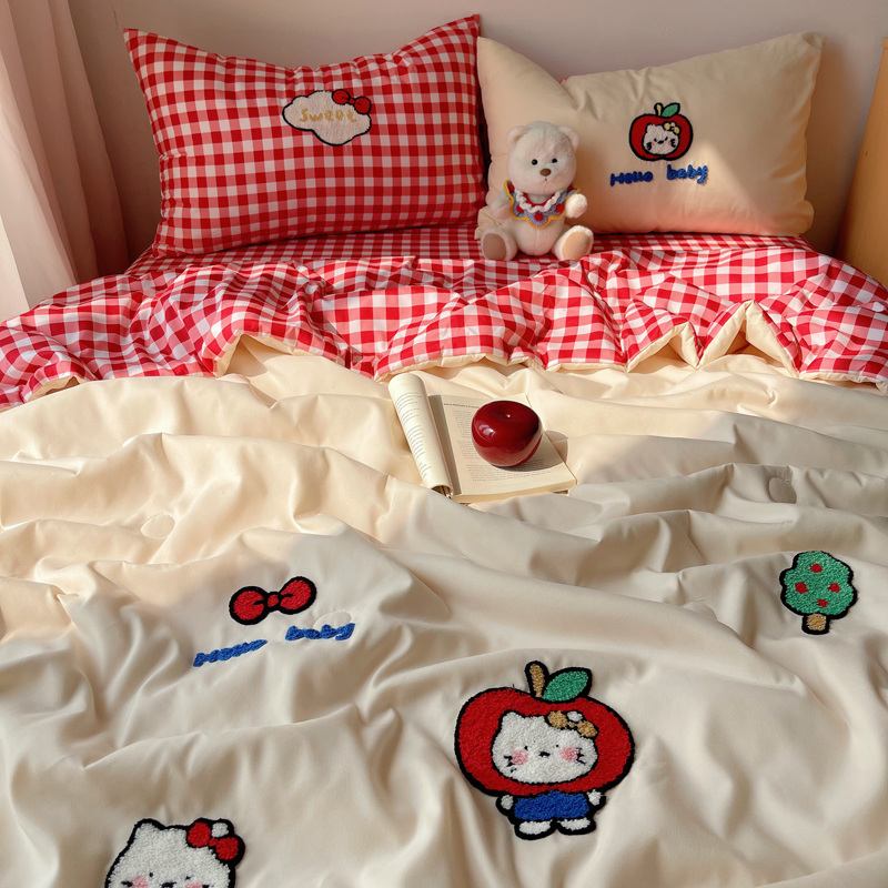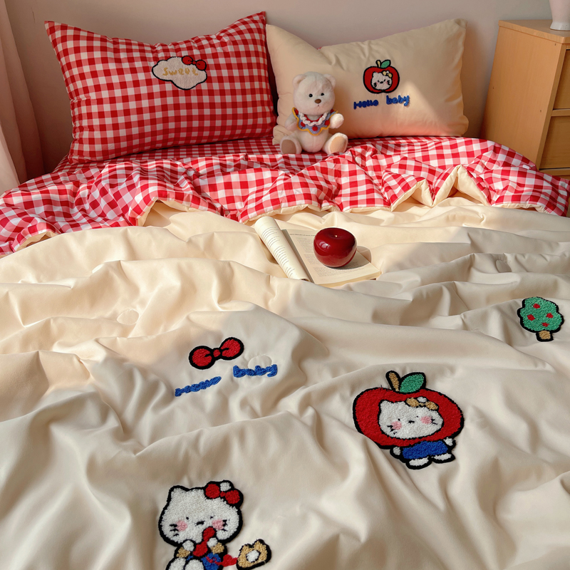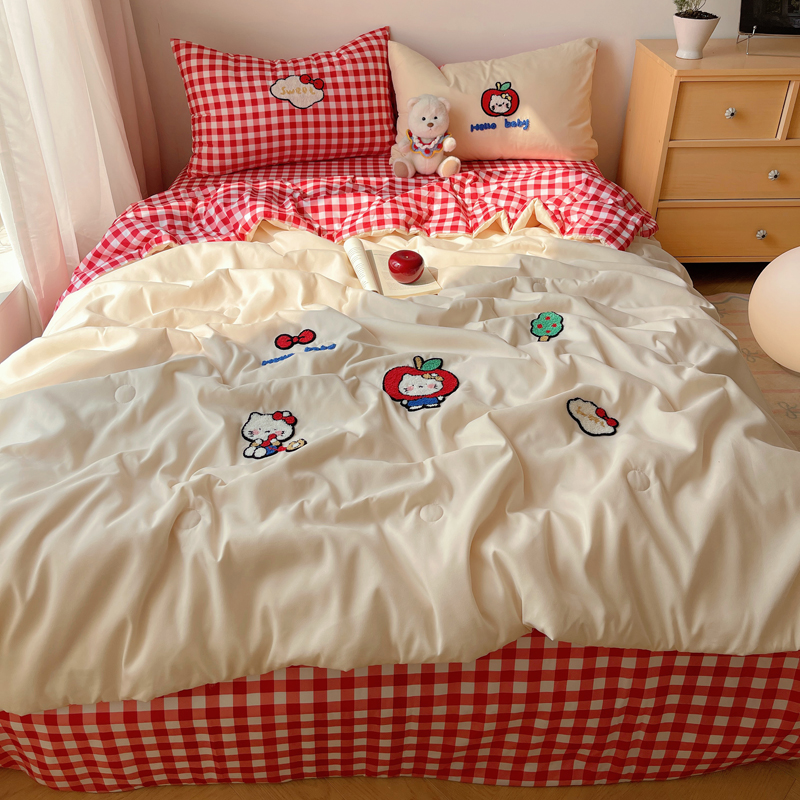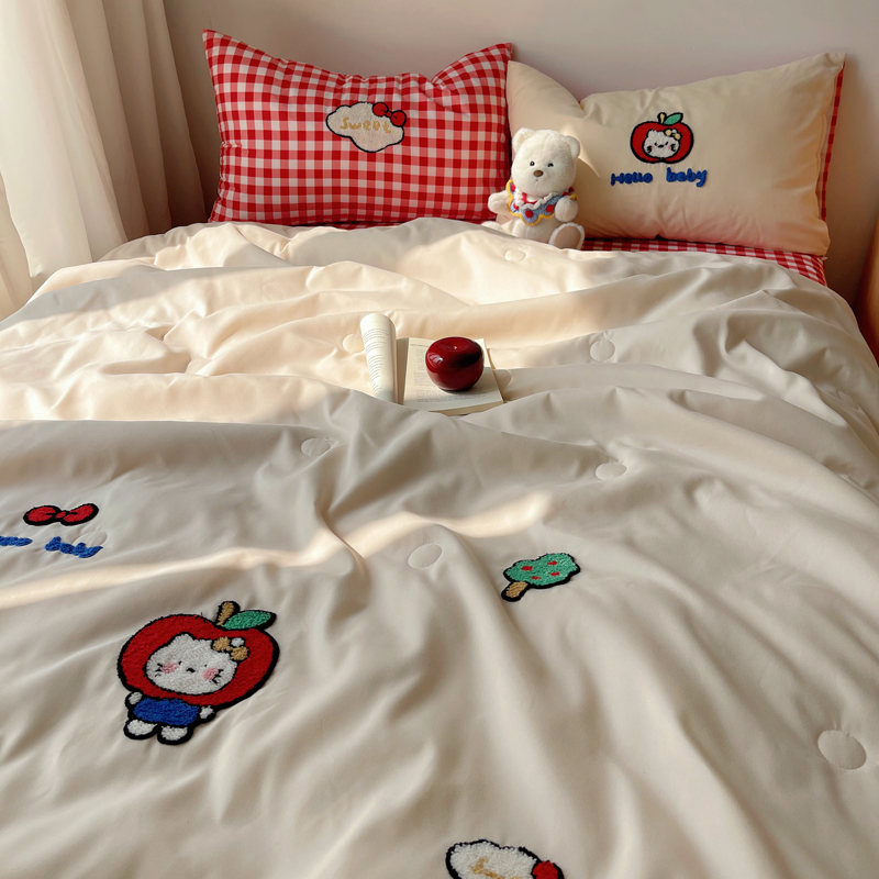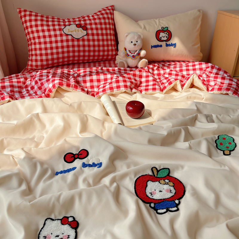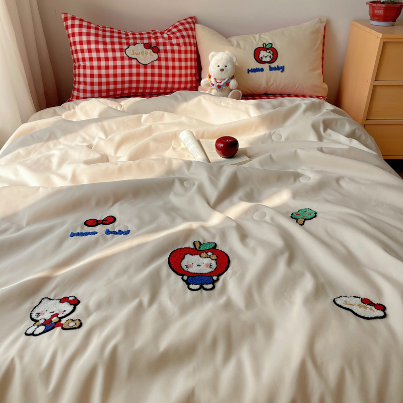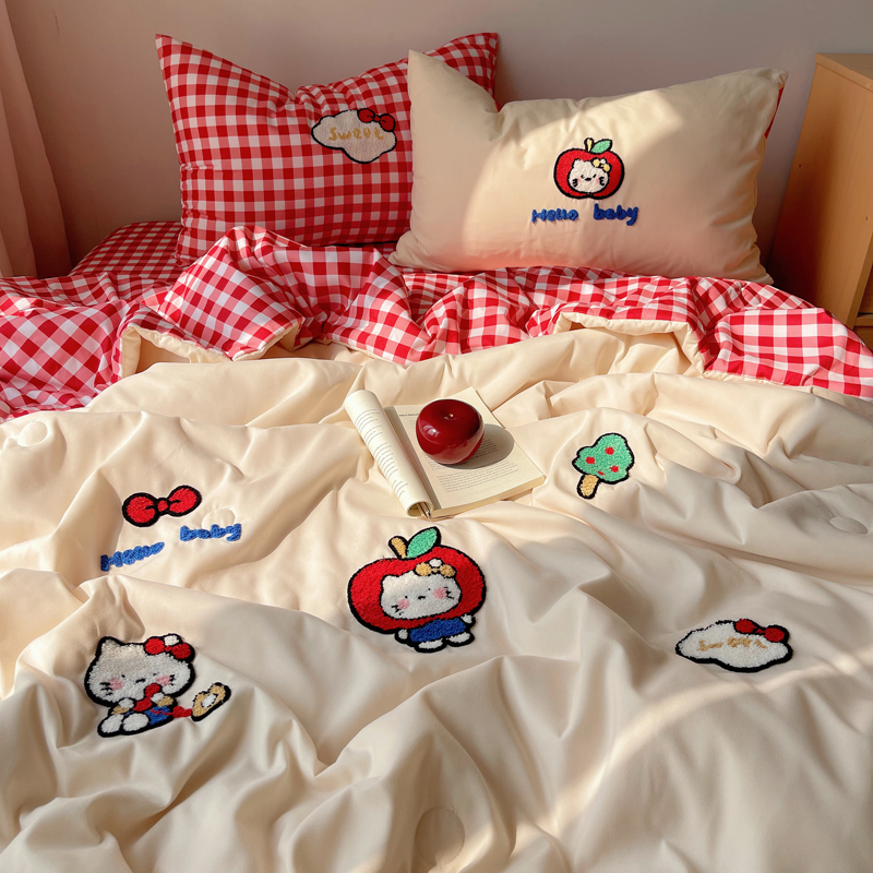 桃喜 2025新款水洗棉毛巾绣单夏被被子被芯夏被套件(非全棉)系列1 红格子小猫
