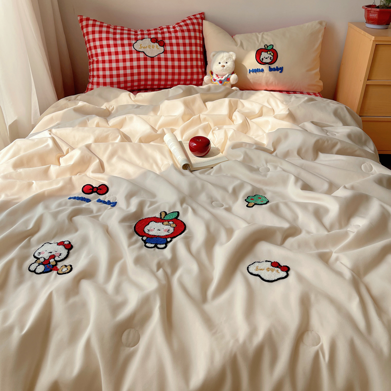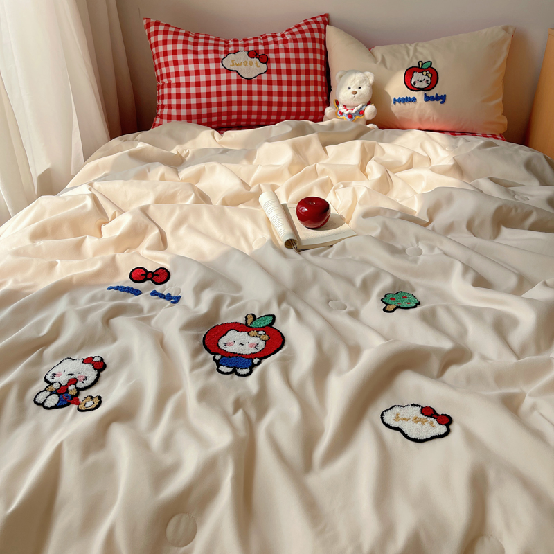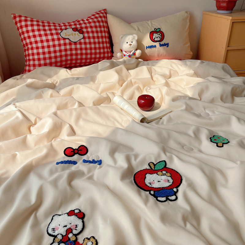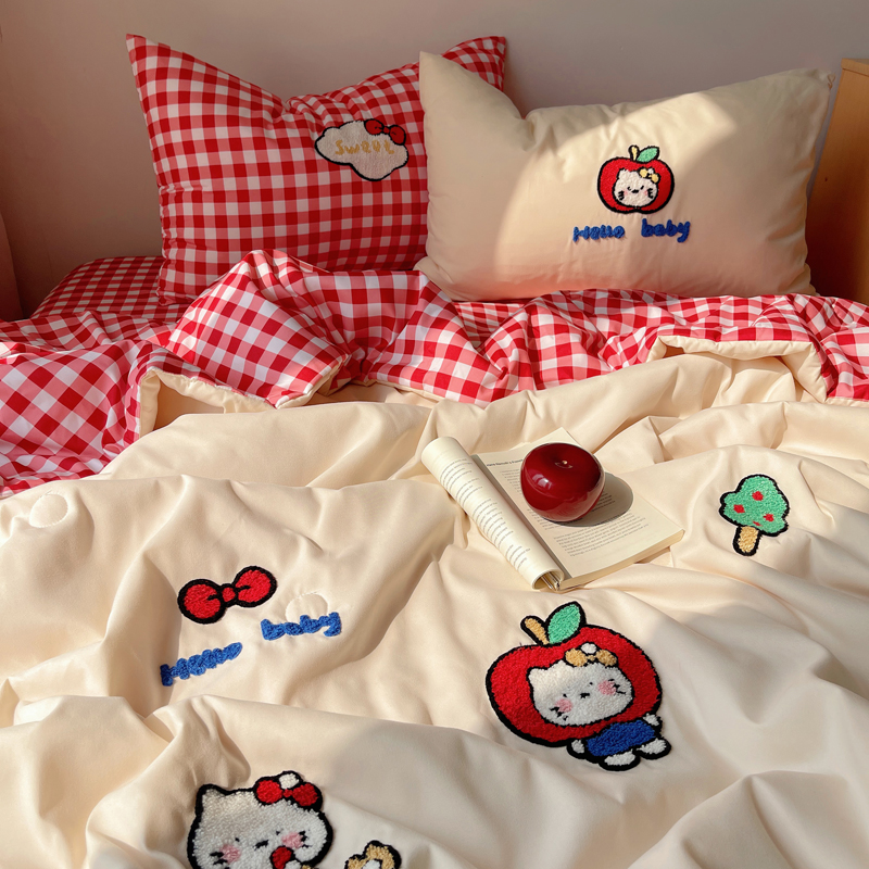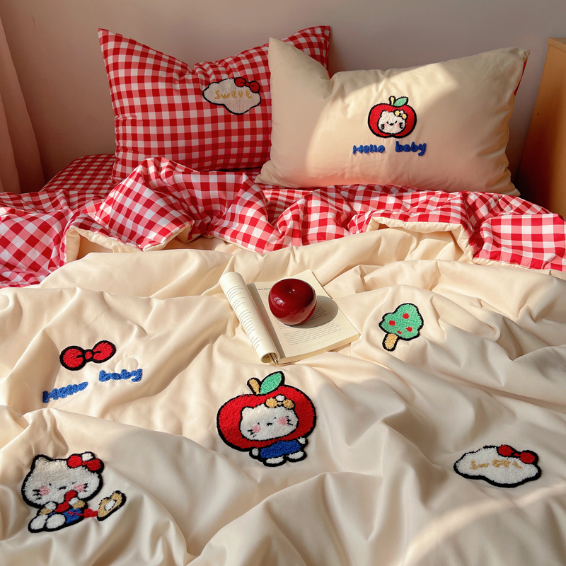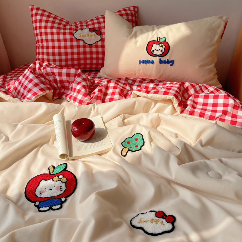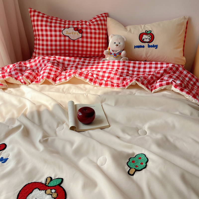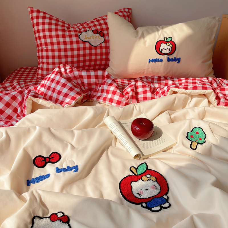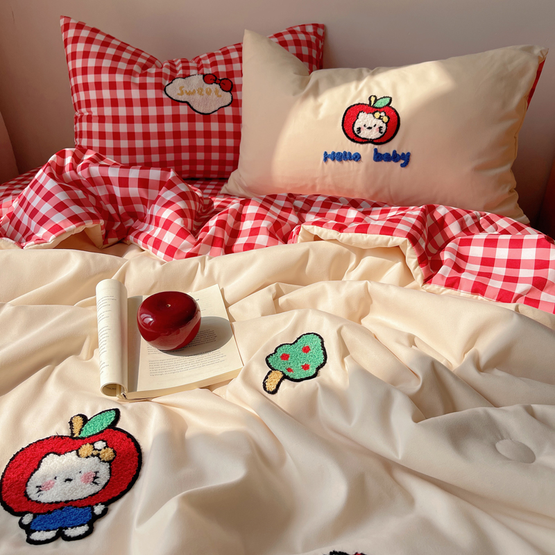 桃喜 2025新款水洗棉毛巾绣单夏被被子被芯夏被套件(非全棉)系列1 红格子小猫