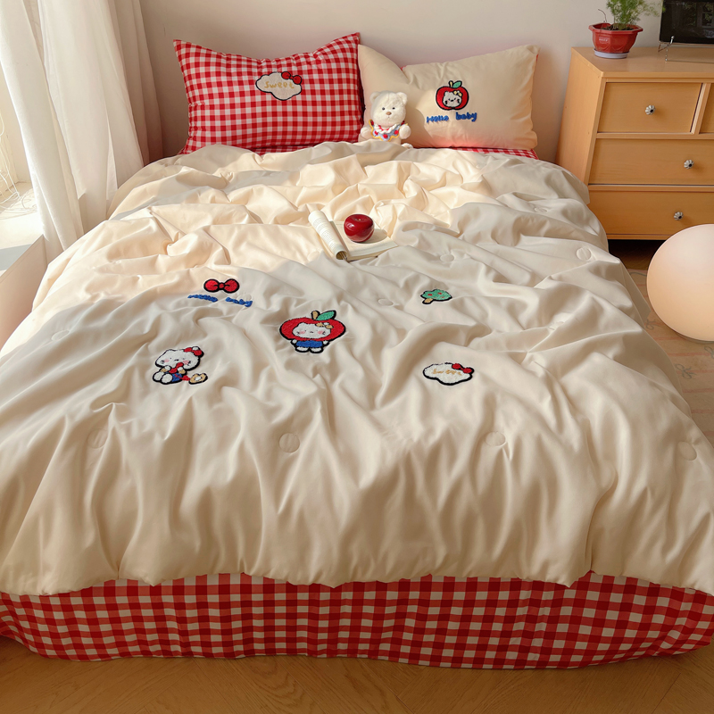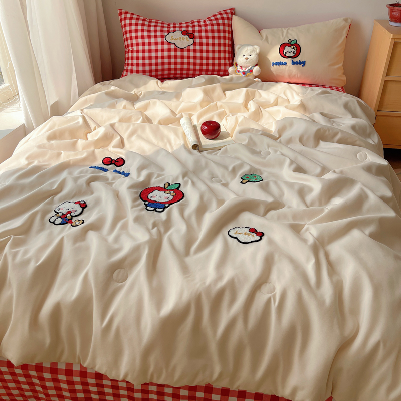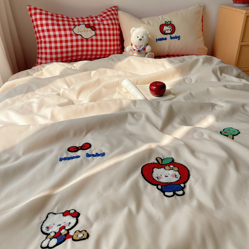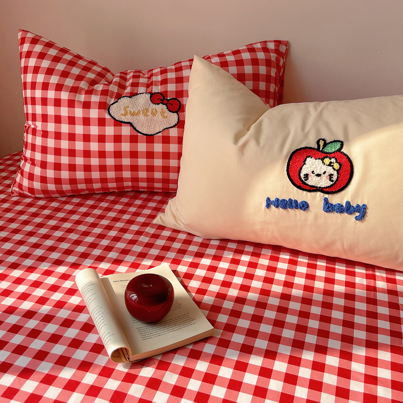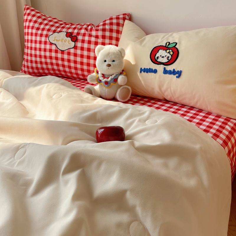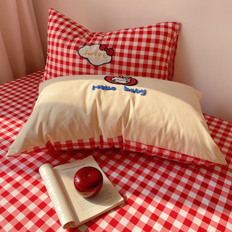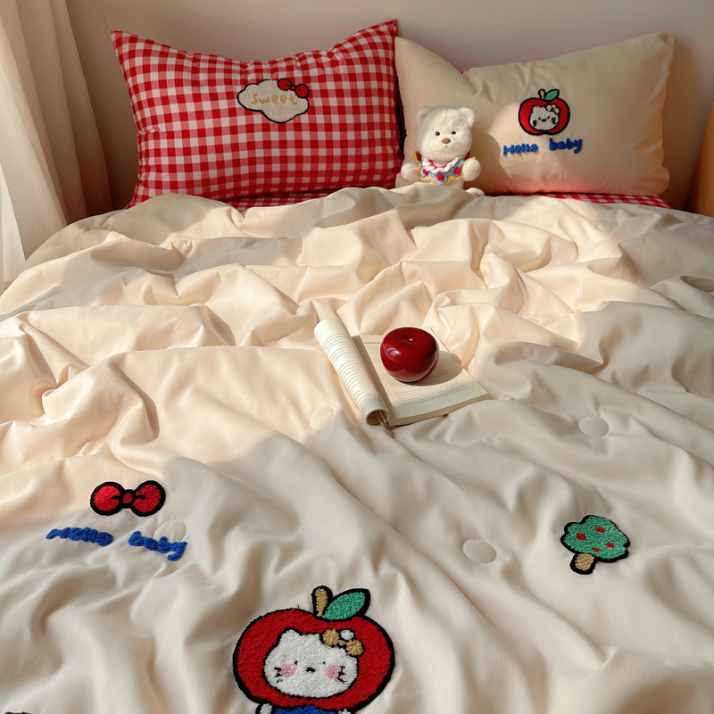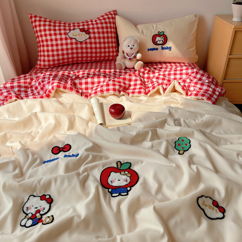 桃喜 2025新款水洗棉毛巾绣单夏被被子被芯夏被套件(非全棉)系列1 红格子小猫