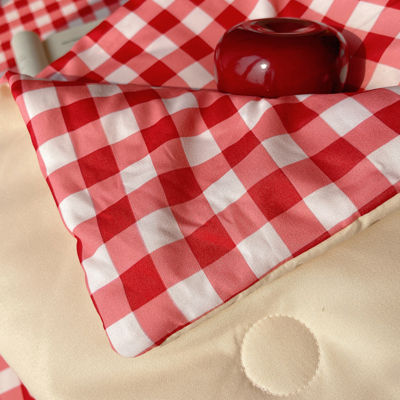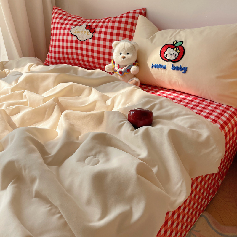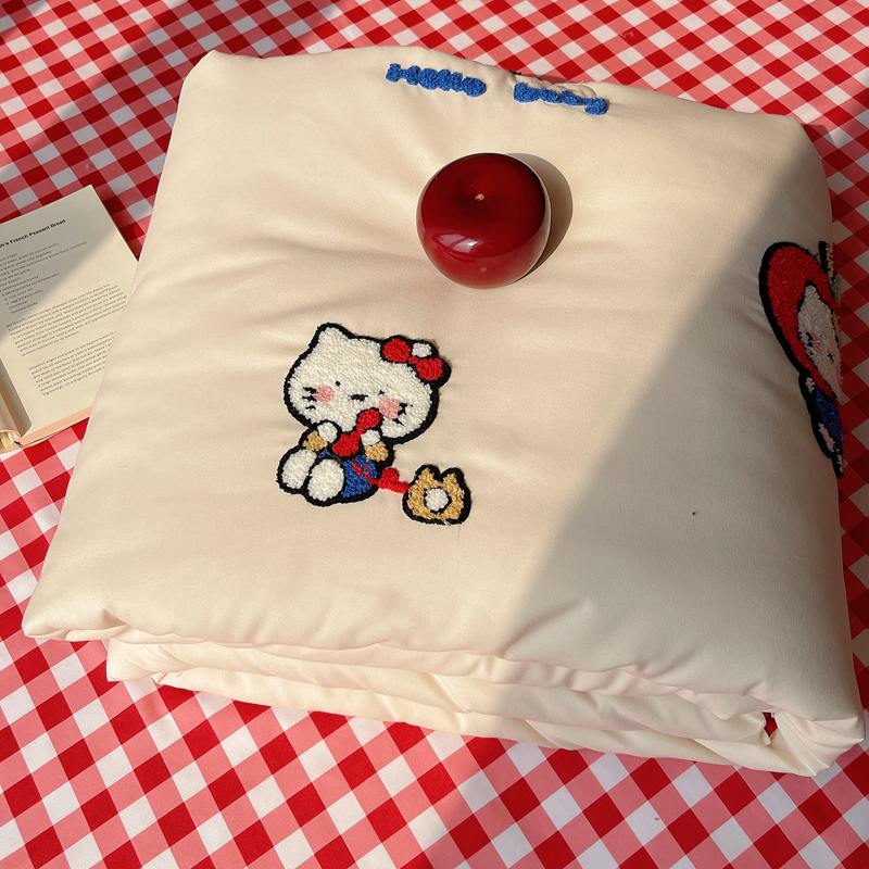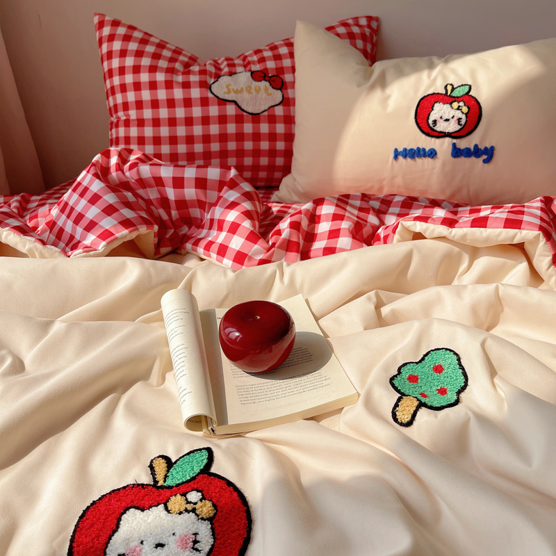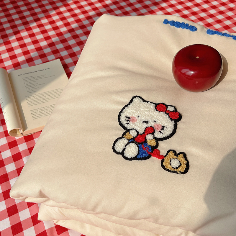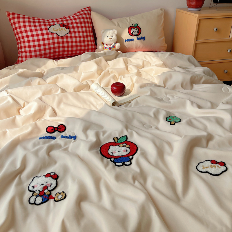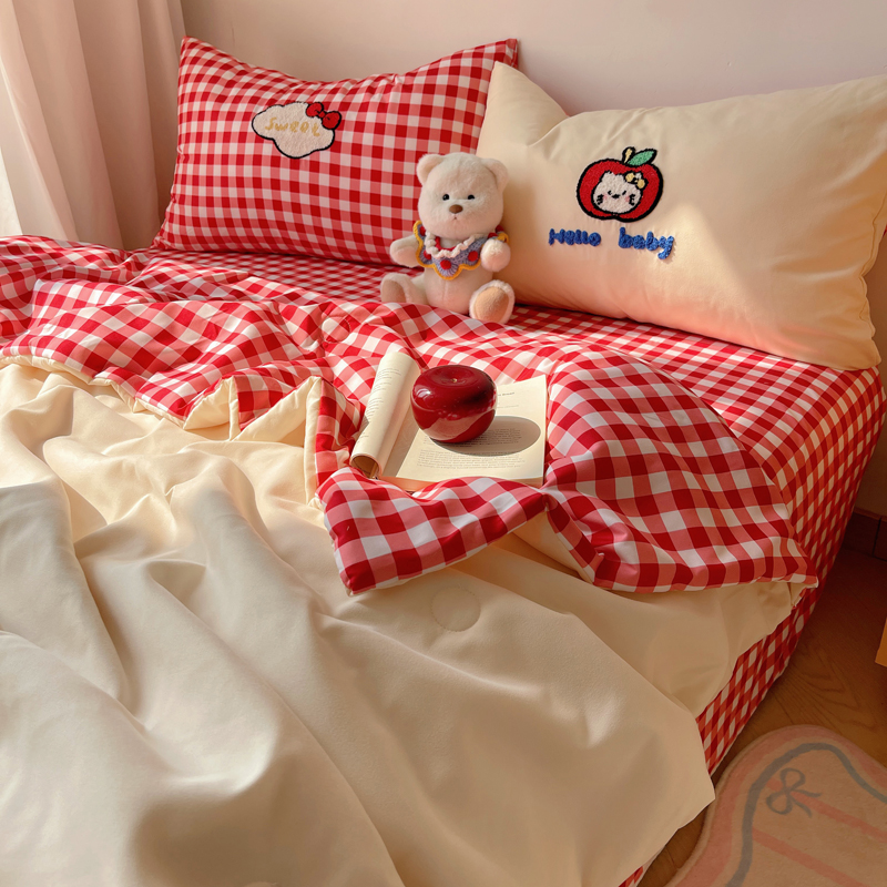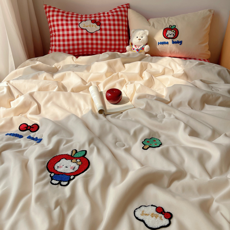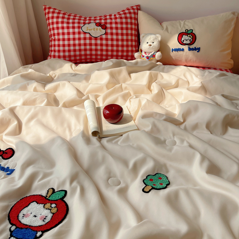 桃喜 2025新款水洗棉毛巾绣单夏被被子被芯夏被套件(非全棉)系列1 红格子小猫