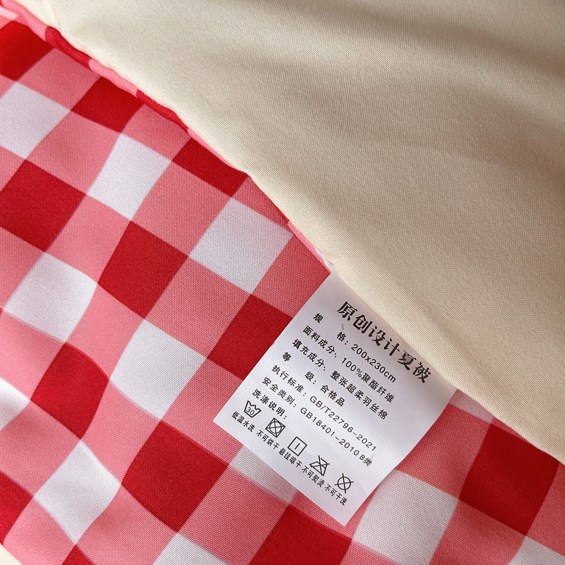 商品名称:桃喜 2025新款水洗棉毛巾绣单夏被被子被芯夏被套件(非全棉)系列1 红格子小猫
