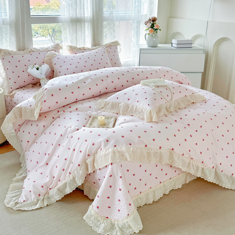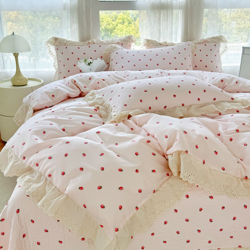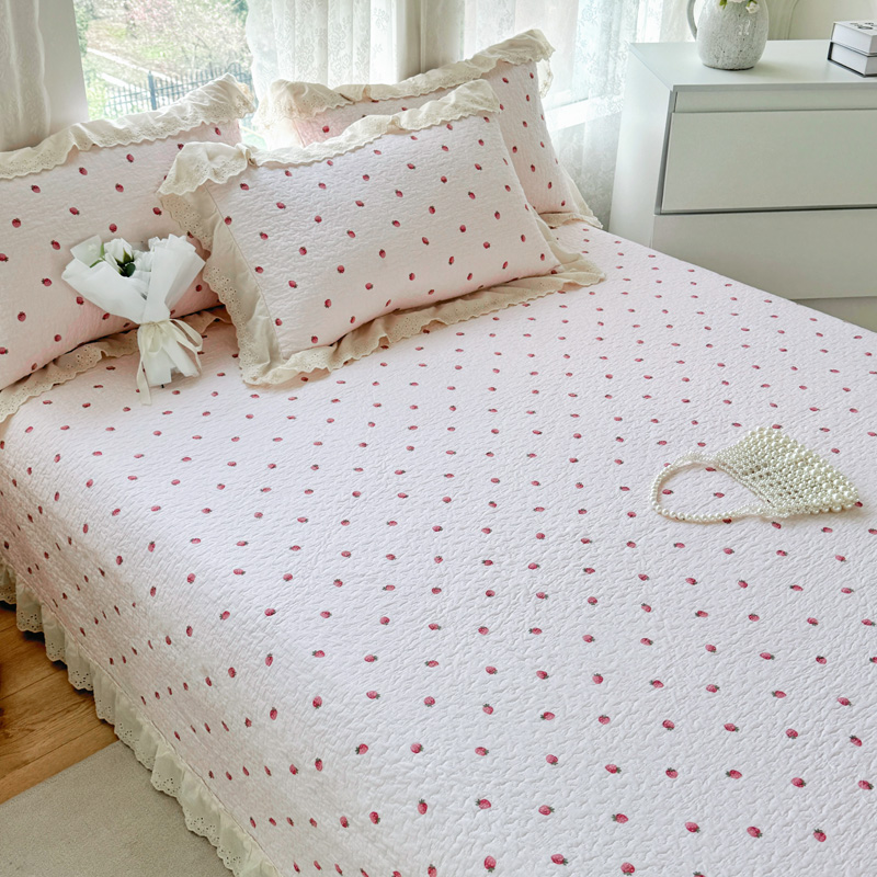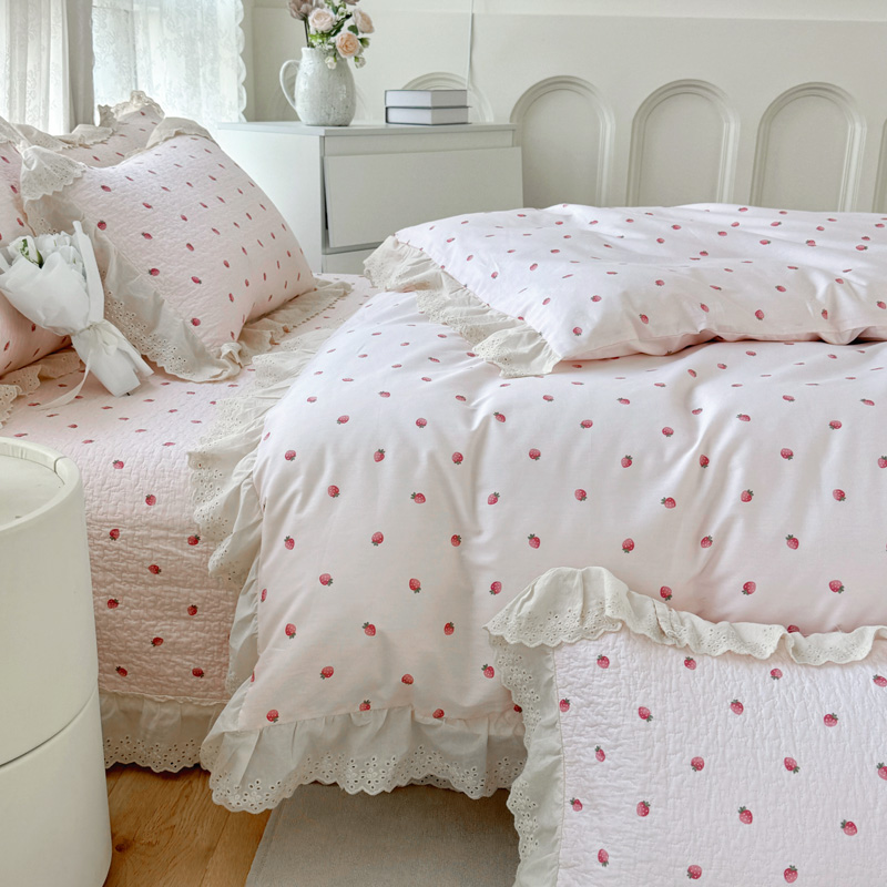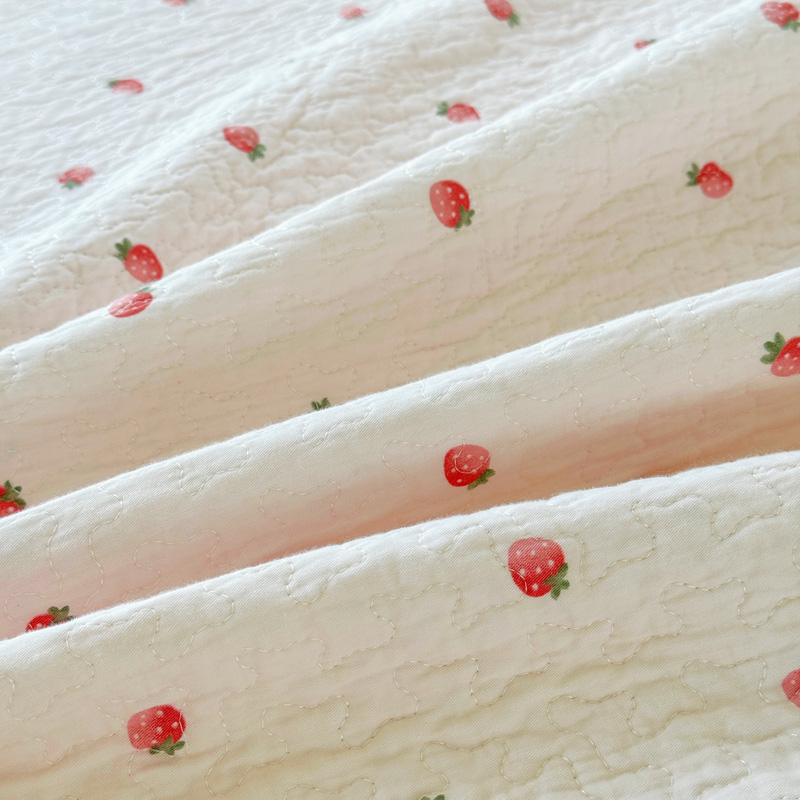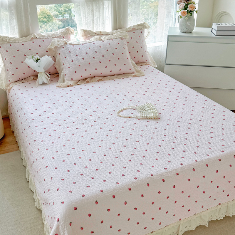 商品名称:添越家纺2025新款纯棉砂洗床盖三件套四件套系列 草莓小园