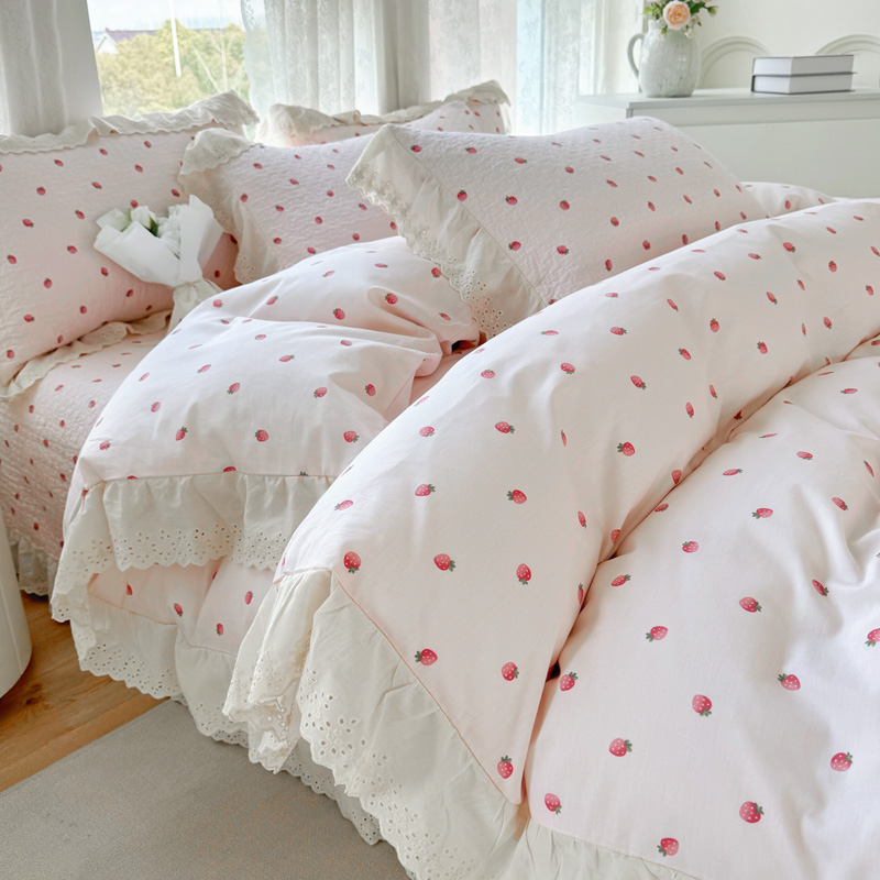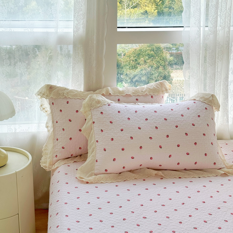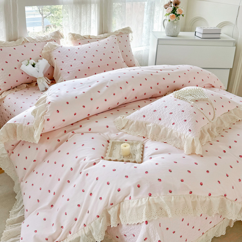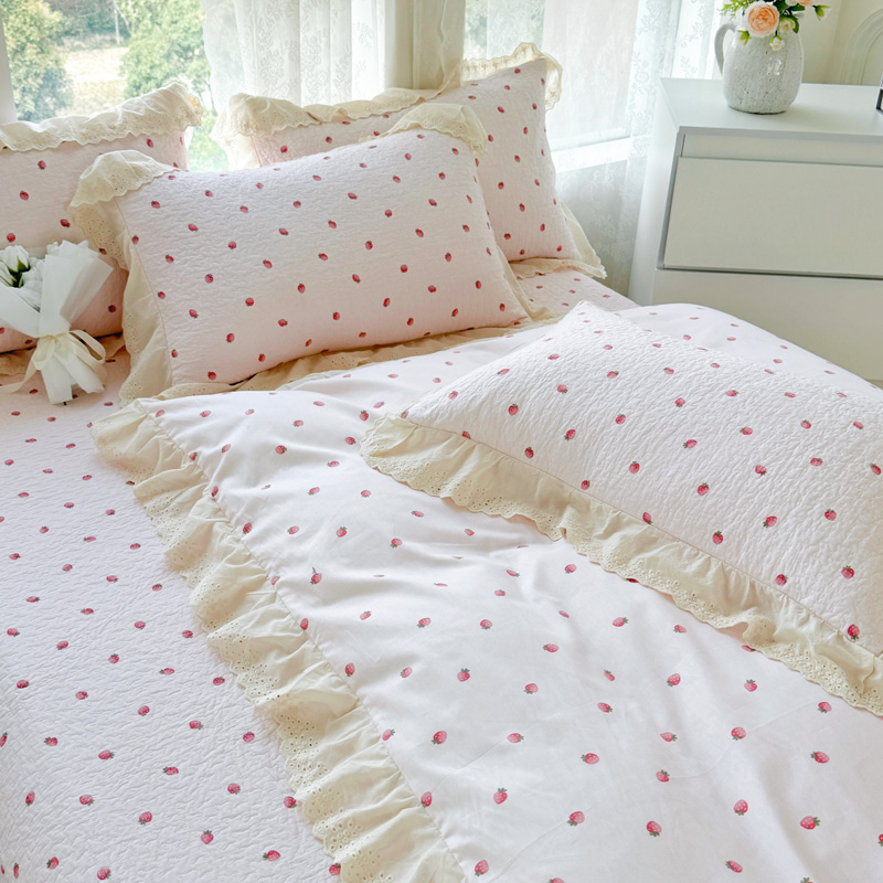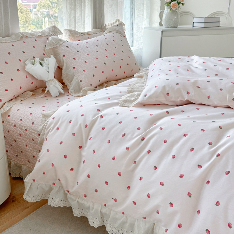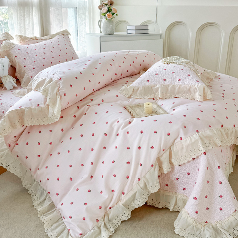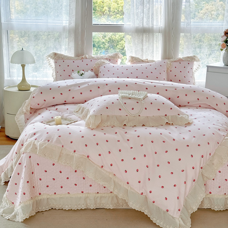 商品名称:添越家纺2025新款纯棉砂洗床盖三件套四件套系列 草莓小园