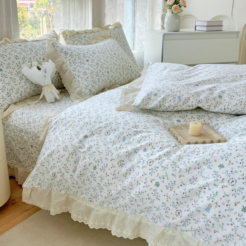 添越 2024小清新韩版蕾丝款花边纯棉夹棉床盖三件套全棉爱心熊-蕾丝款,爱心熊-蕾丝款