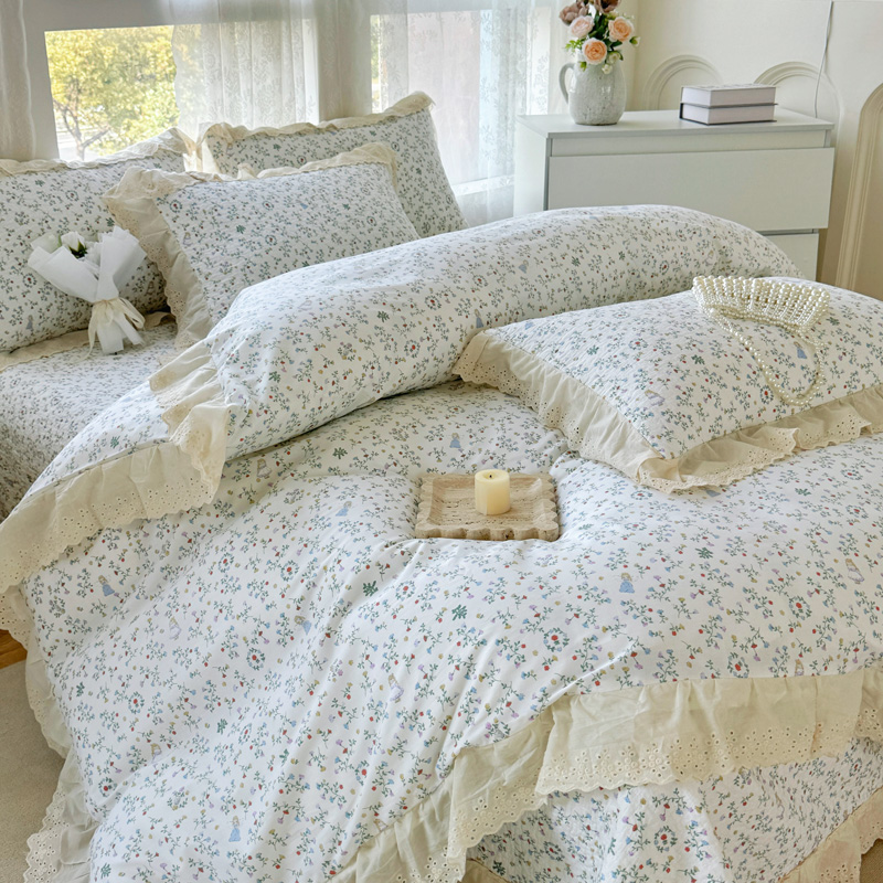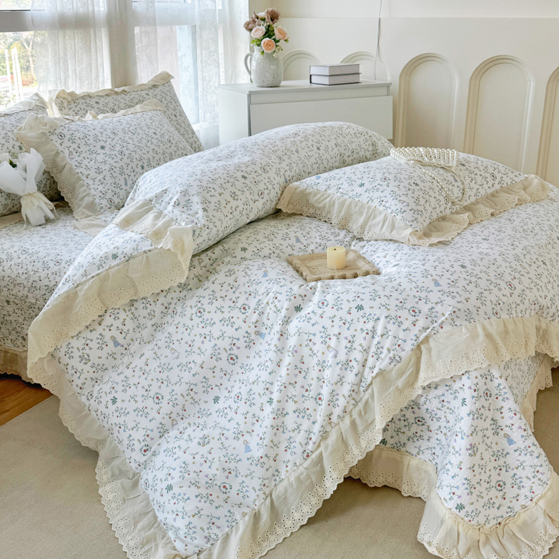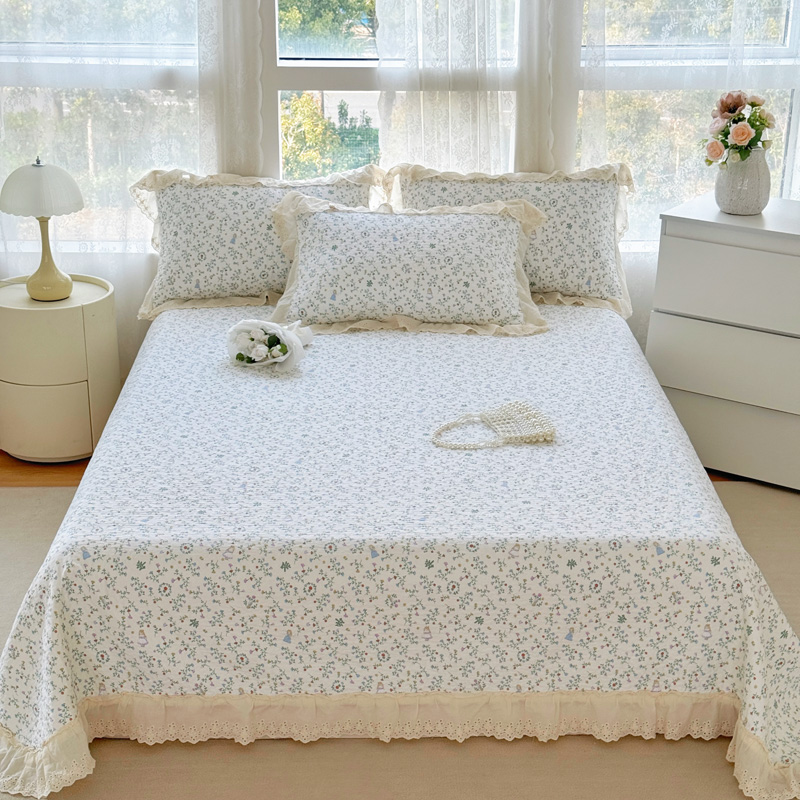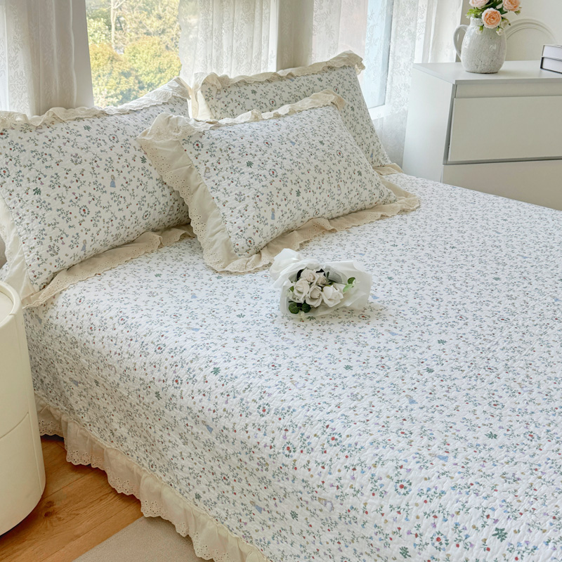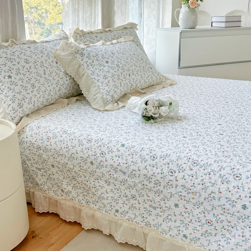 添越 2024小清新韩版蕾丝款花边纯棉夹棉床盖三件套全棉爱意时光蕾丝款,爱意时光蕾丝款