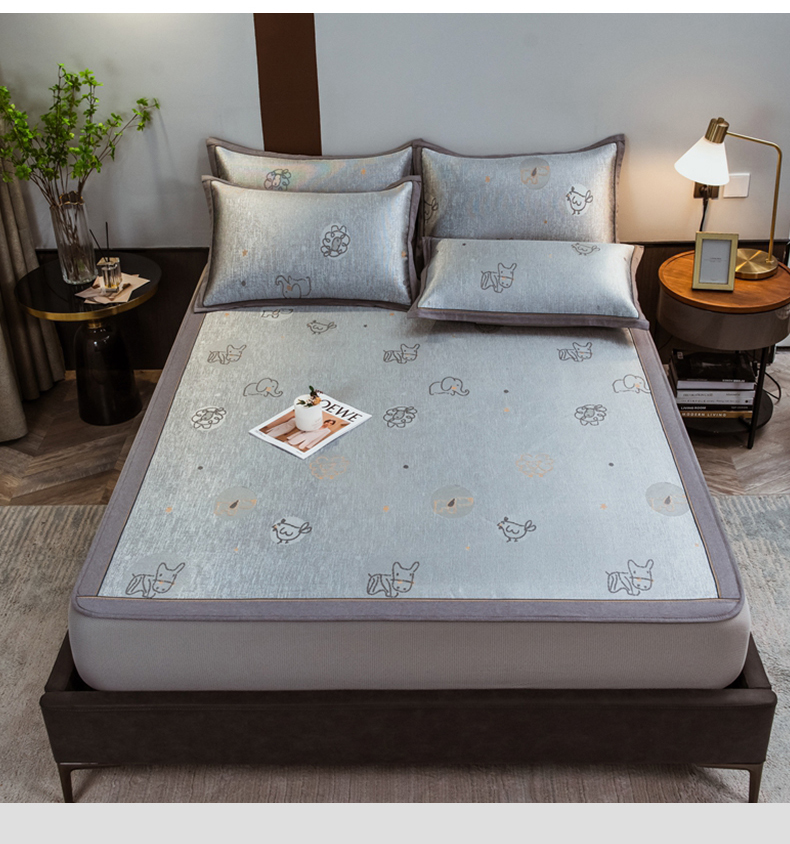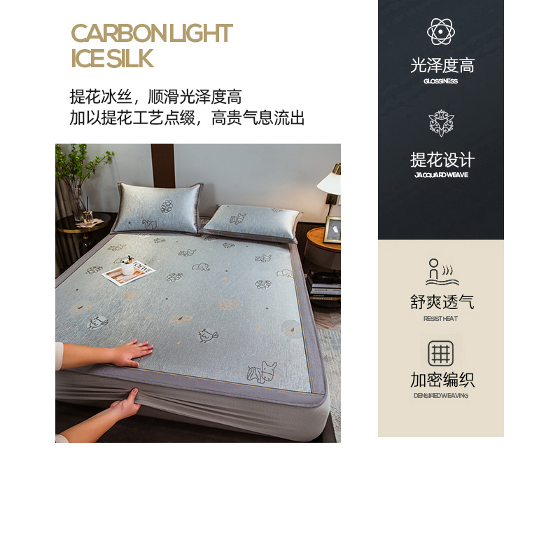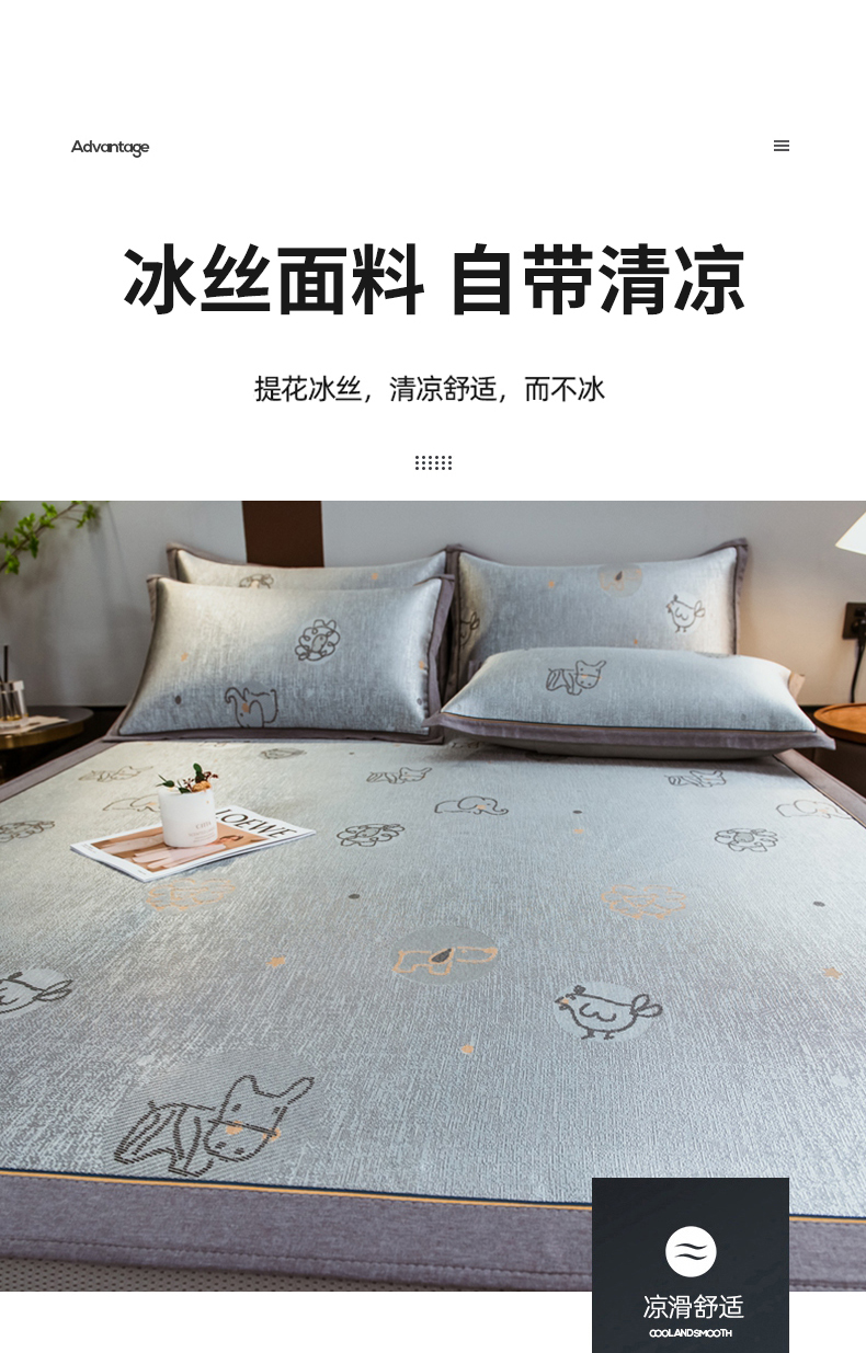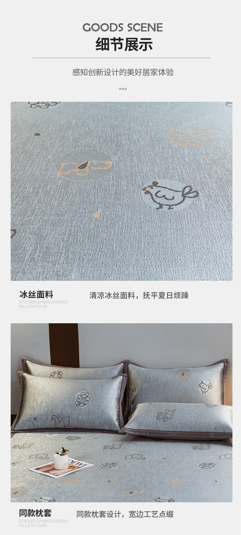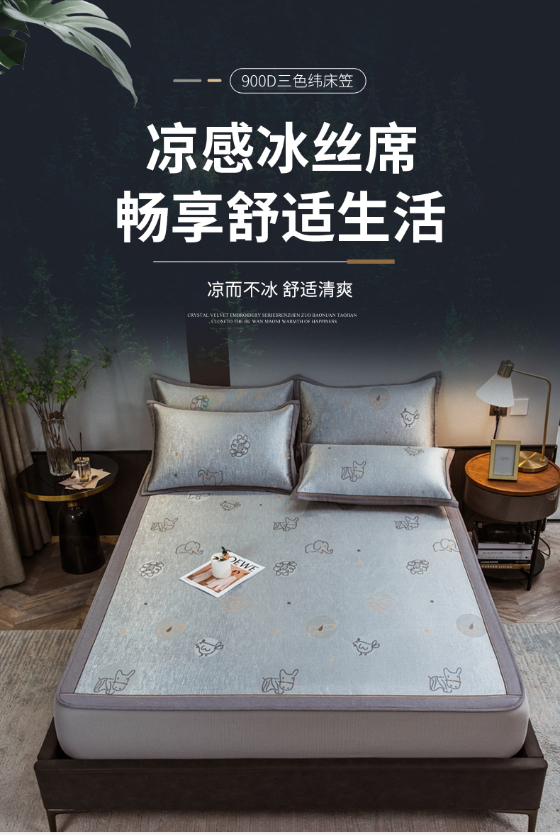 商品名称:全季家居 2025新款900D高精密三色纬提花冰丝凉席 床笠-动物乐园