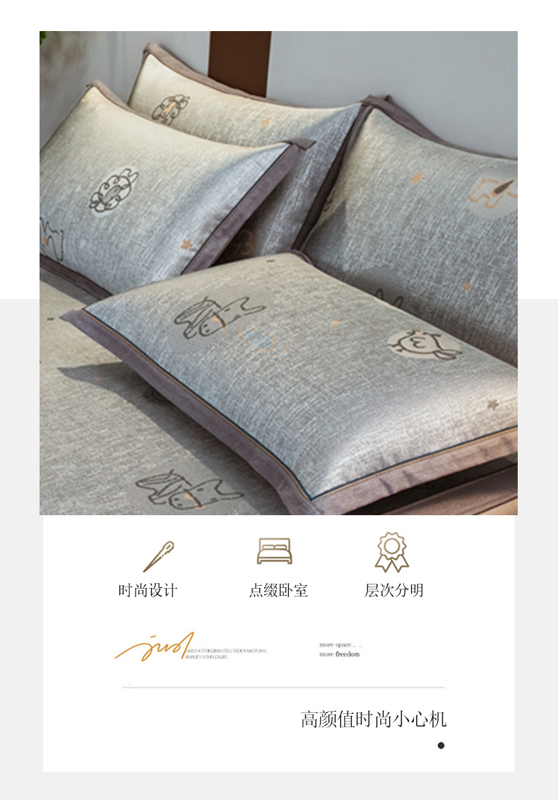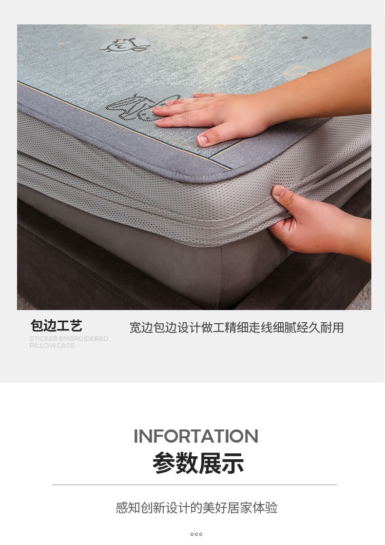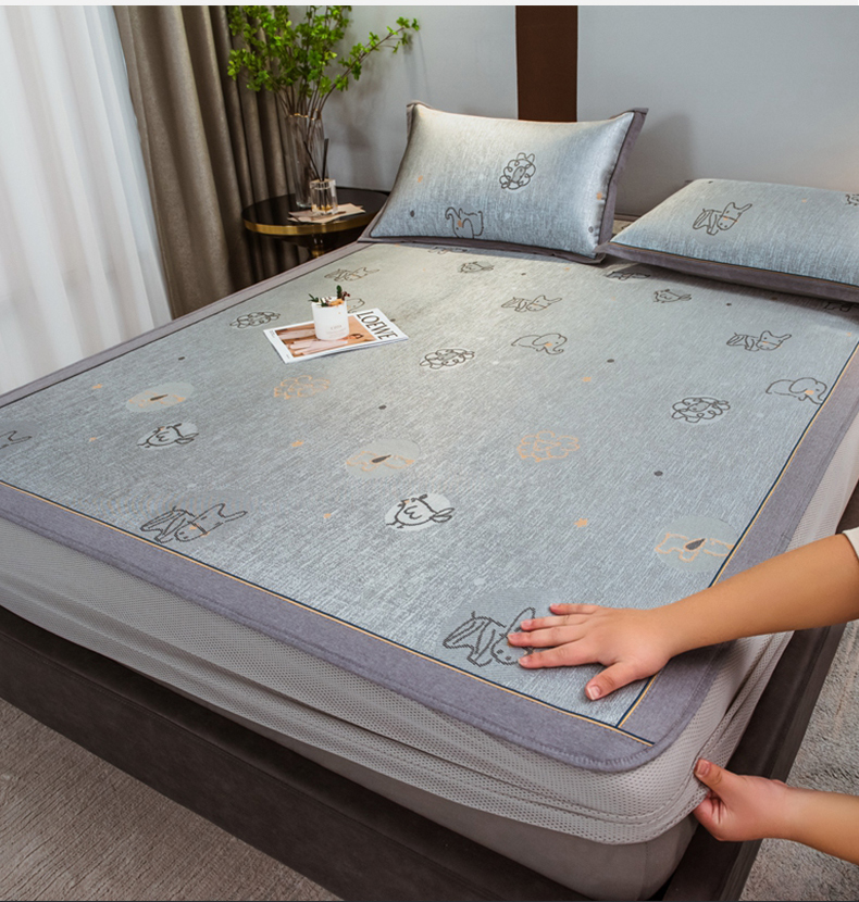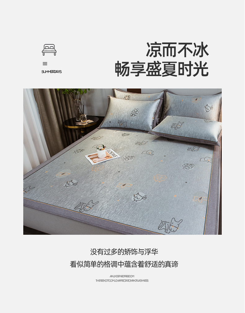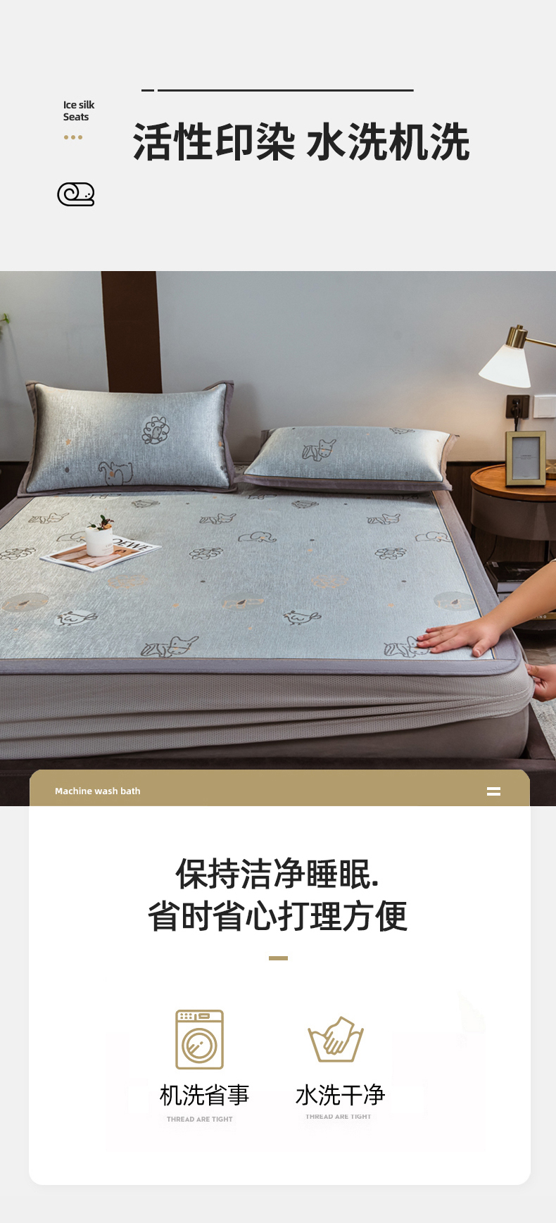 商品名称:全季家居 2025新款900D高精密三色纬提花冰丝凉席 床笠-动物乐园