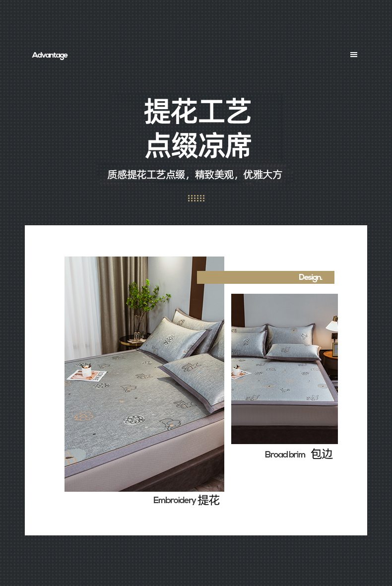 (总)全季家居 2023新款A类轻奢抗菌冰藤席,和意款-孔雀蓝,和意款-星际灰,和意款-薄荷绿,字母款-孔雀蓝,字母款-薄荷绿,字母款-星际灰
