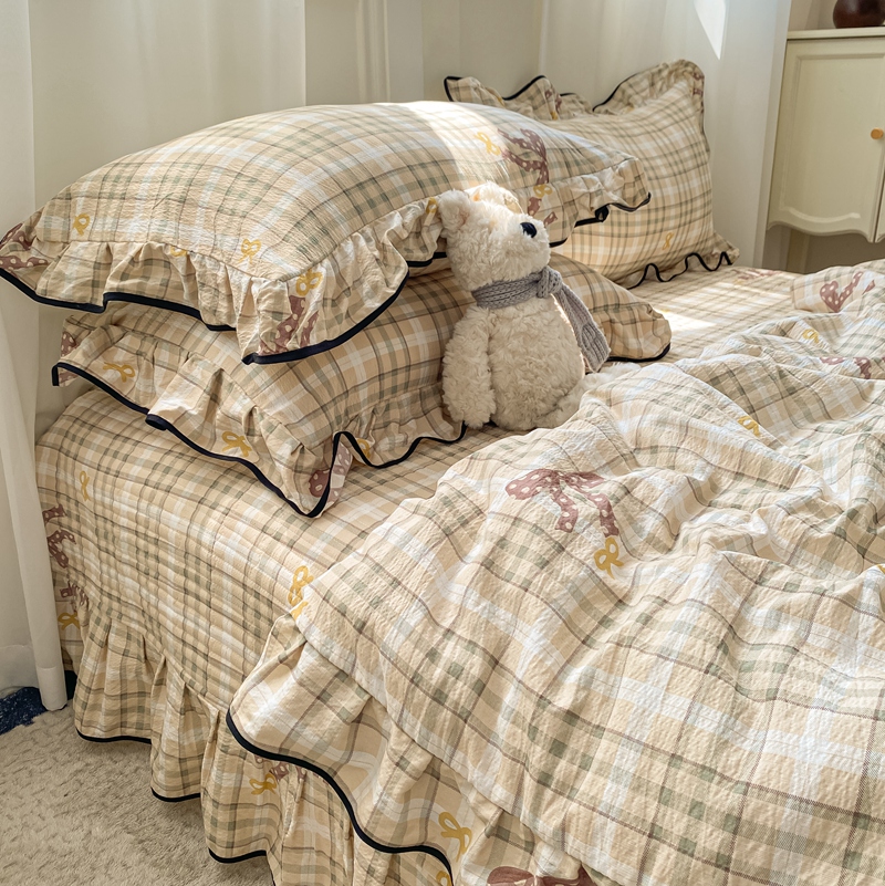 商品名称:2025新款云感双层纱夏被四件套-床盖款 太妃糖