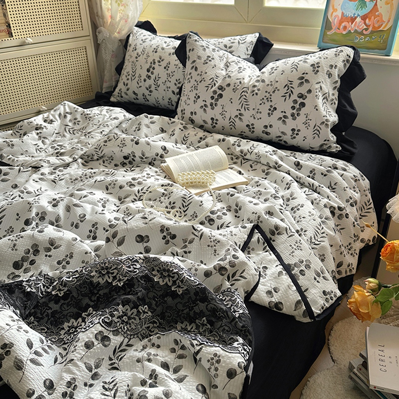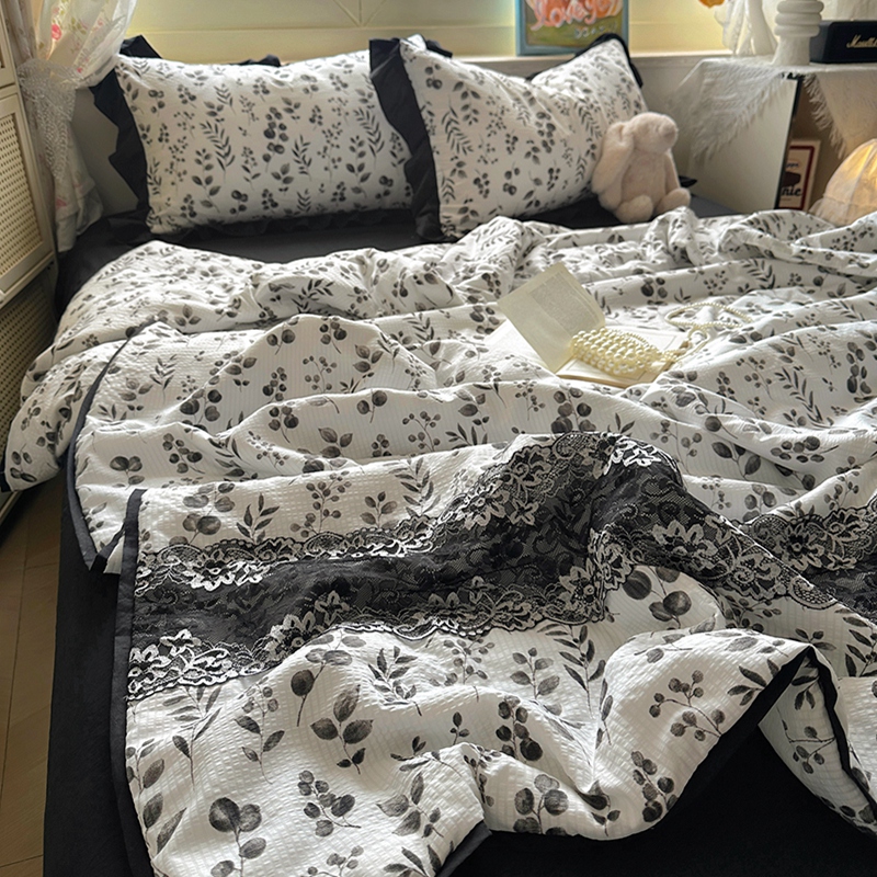 当前位置: 91家纺网 > 商品网购 > 床品套件 > 四件套 > 夏被四件套 > 阿曼达 2025年新款水洗印花花边夏被四件套 夏被-美学