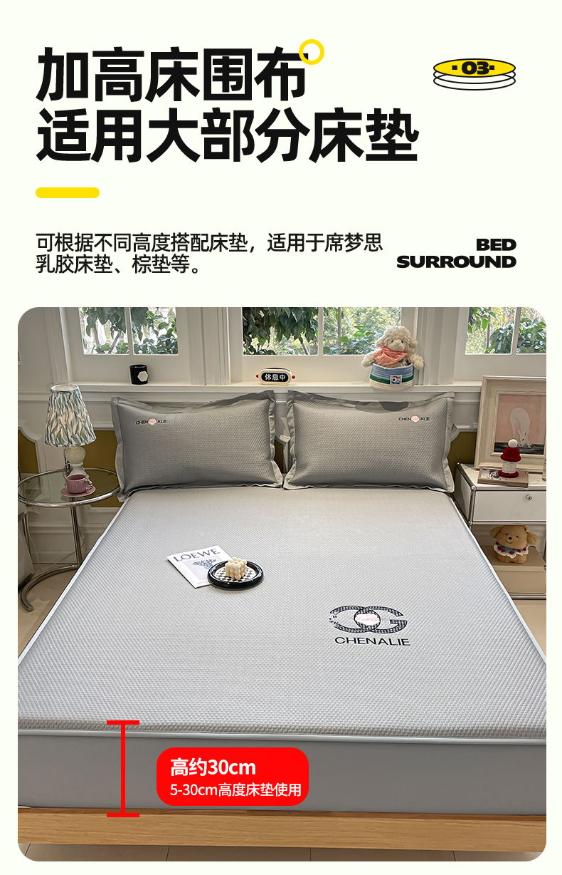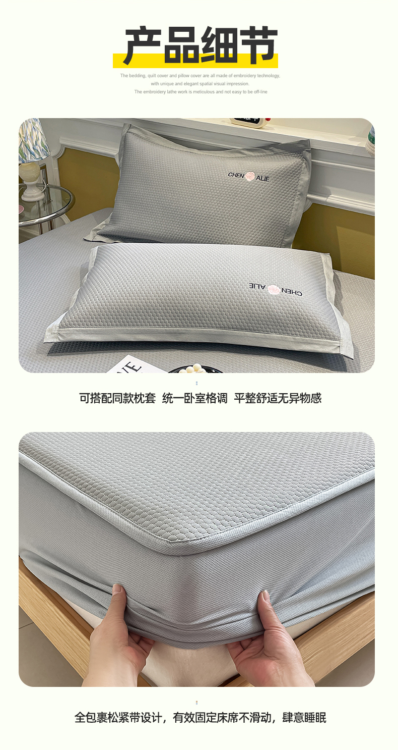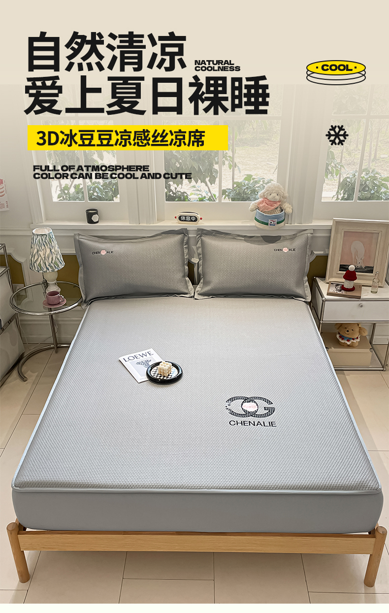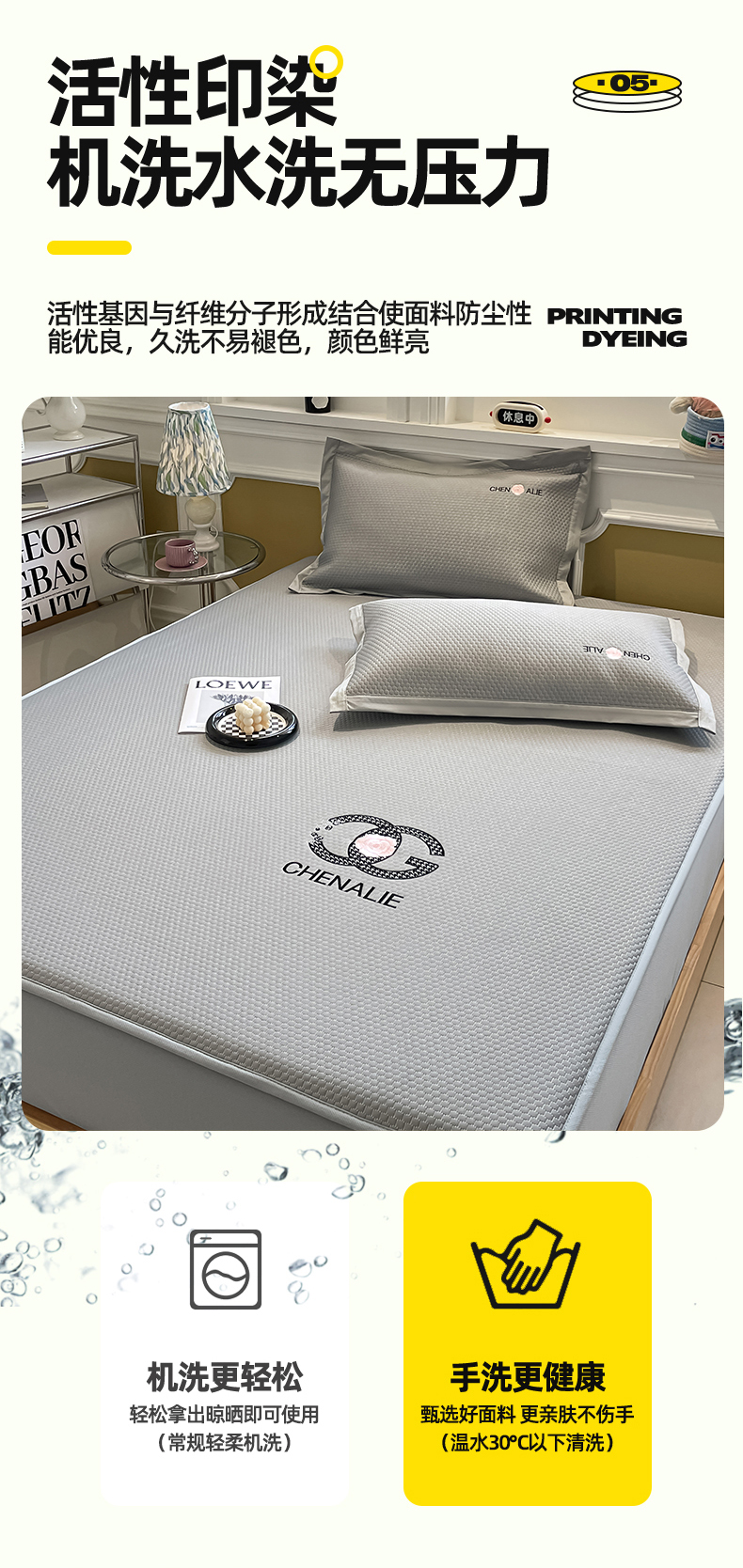 商品名称:启程家纺 2025新款凉豆豆复合三明治刺绣款凉席席子-床笠款 小香风-灰-床笠款