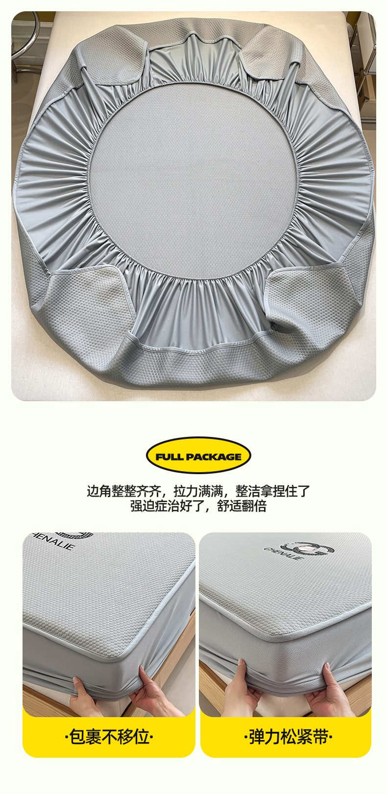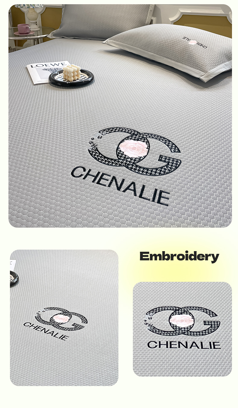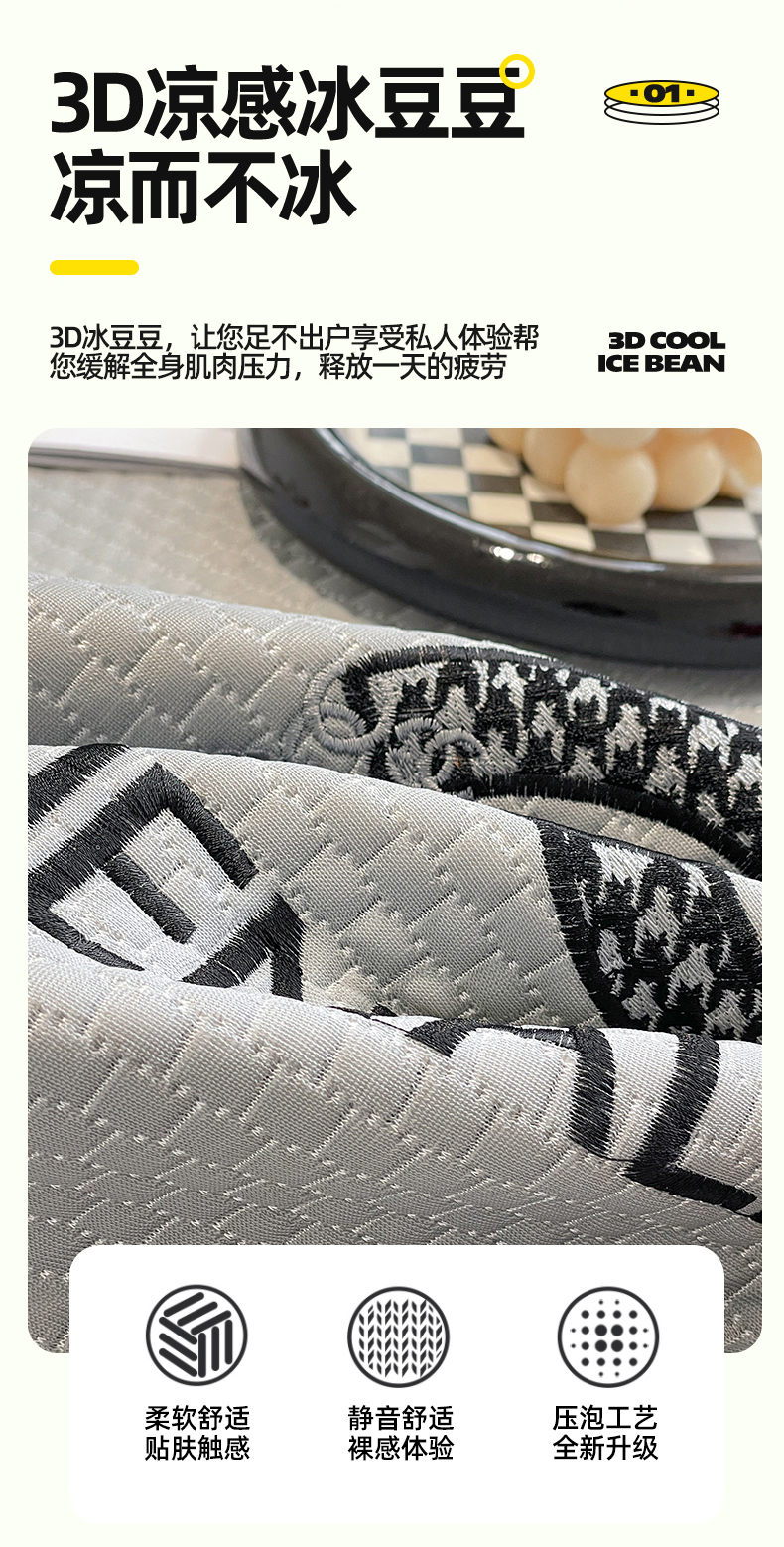 商品名称:启程家纺 2025新款凉豆豆复合三明治刺绣款凉席席子-床笠款 小香风-灰-床笠款