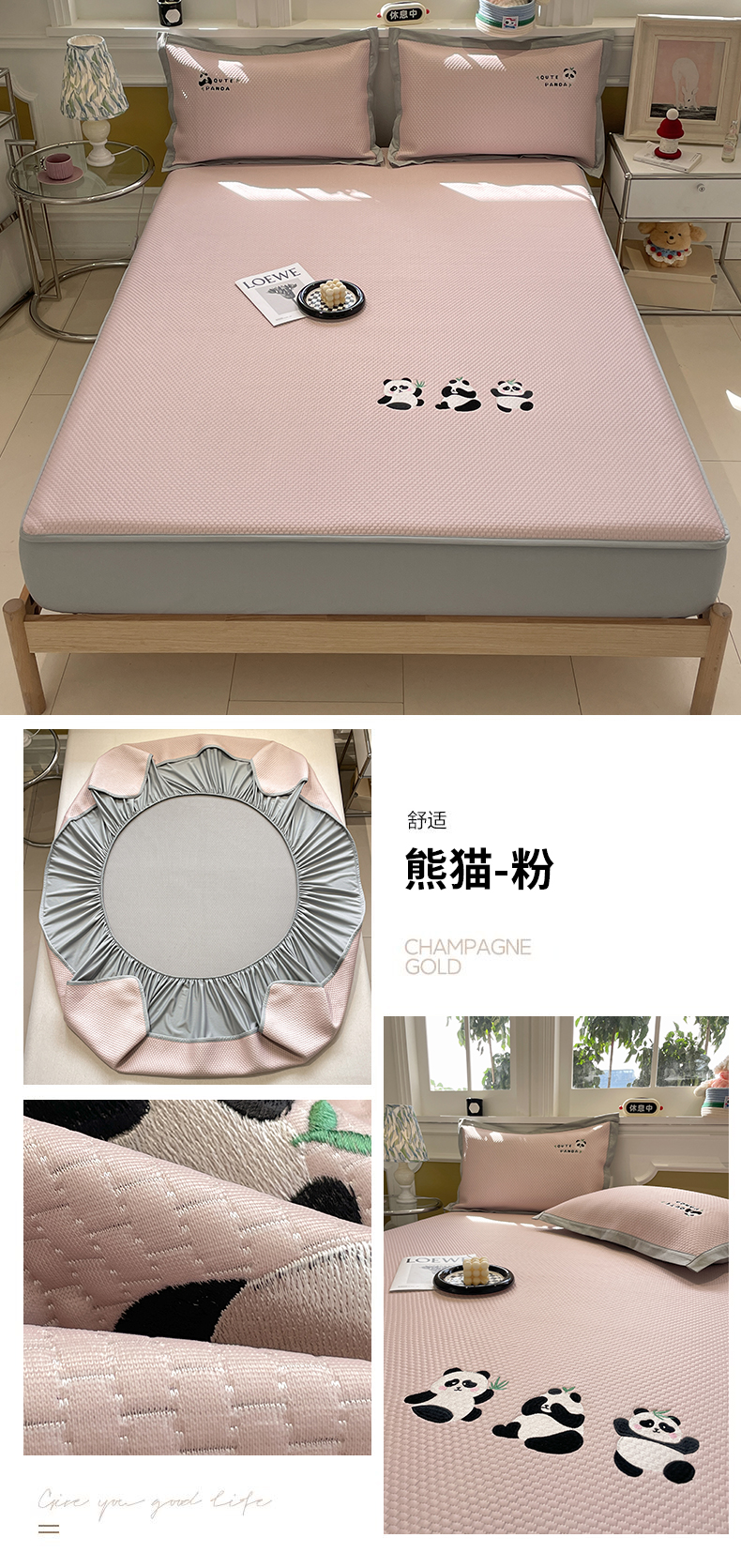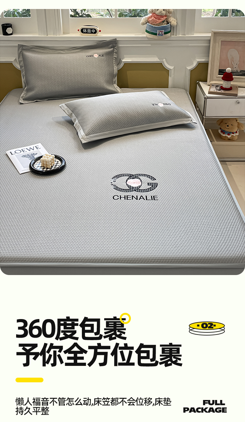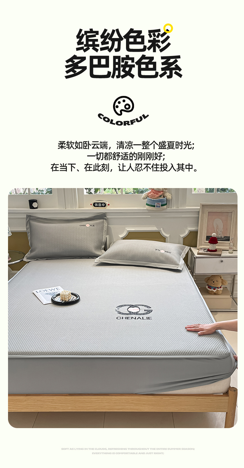 启程家纺 2025新款凉豆豆复合三明治刺绣款凉席席子-床笠款 小香风-灰-床笠款