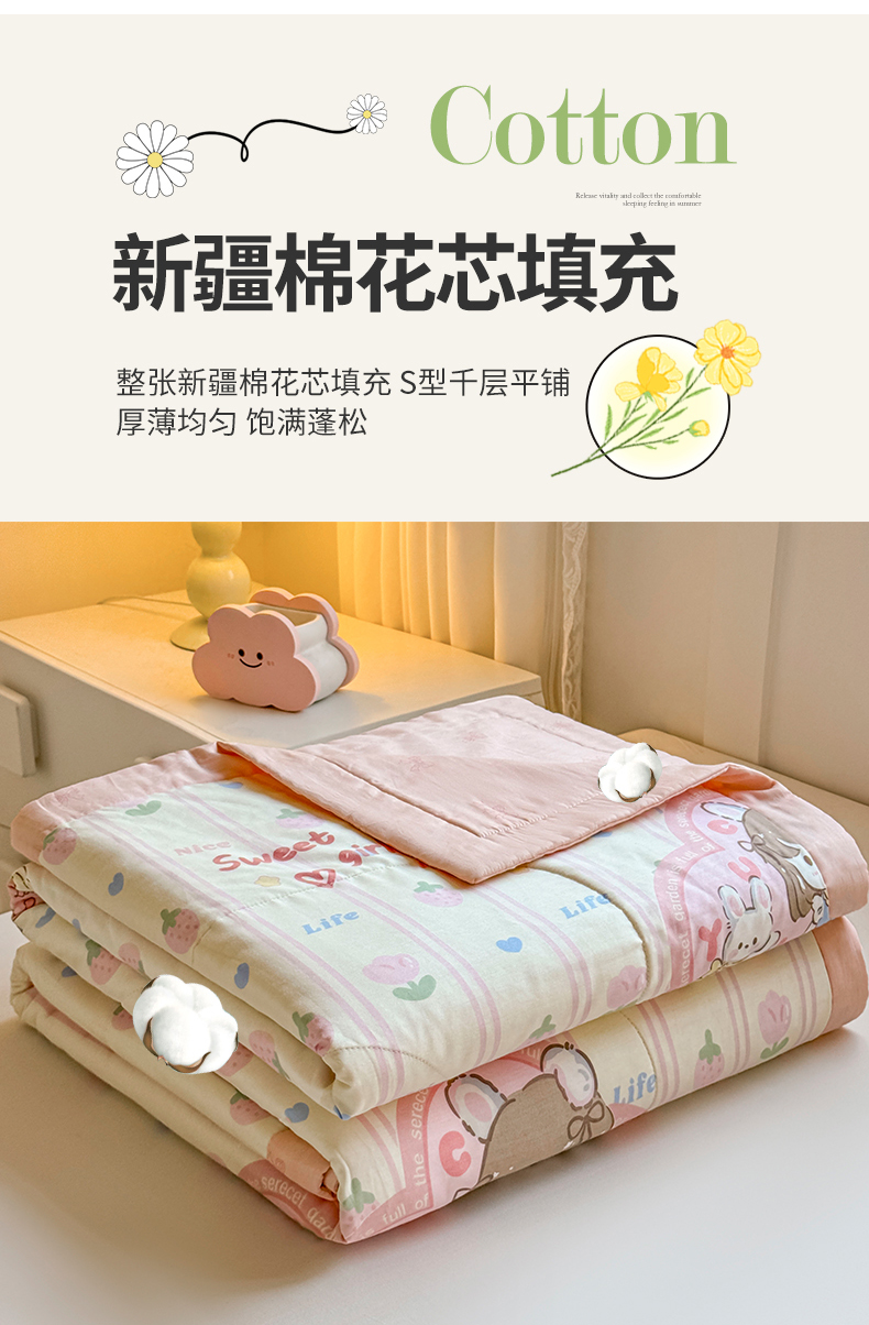 (总)小石头家纺 2025新款双层纱抗菌被被子被芯冬被春秋被,爱心蝴蝶结,海棠之恋,花园小兔,浪漫花园,乐园派对,萌宠猫咪,星星草莓
