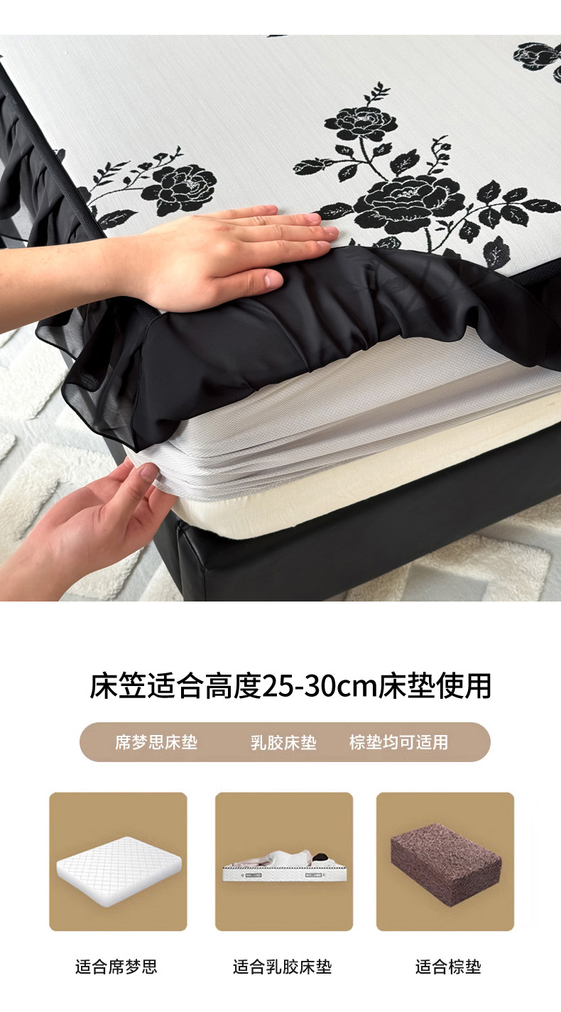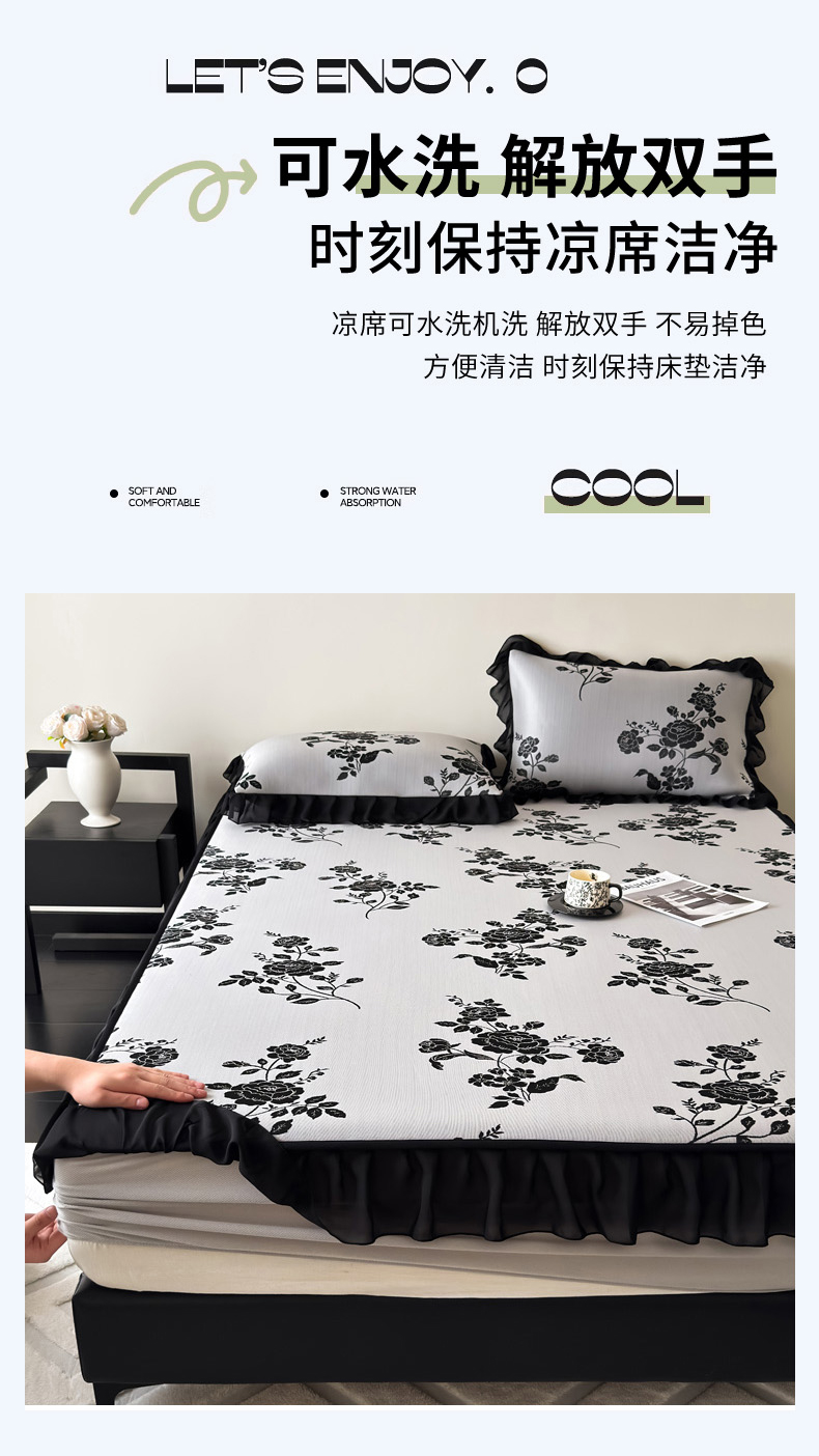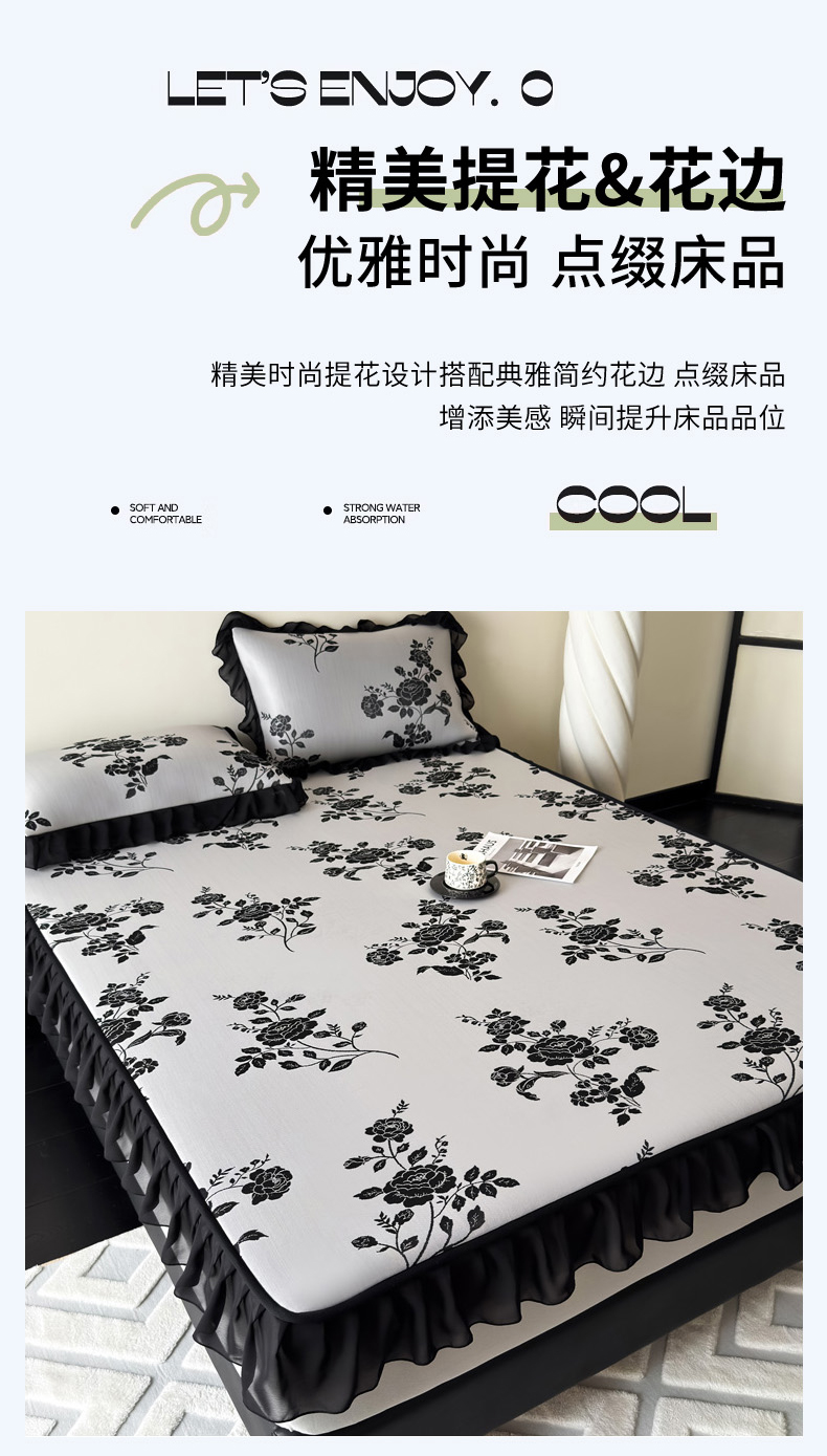 商品名称:九花鹿 2025新款A类法式赫本风PE凉感提花冰丝凉席-床笠款 床笠款-蔓蔓