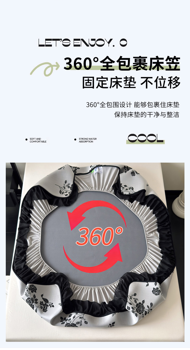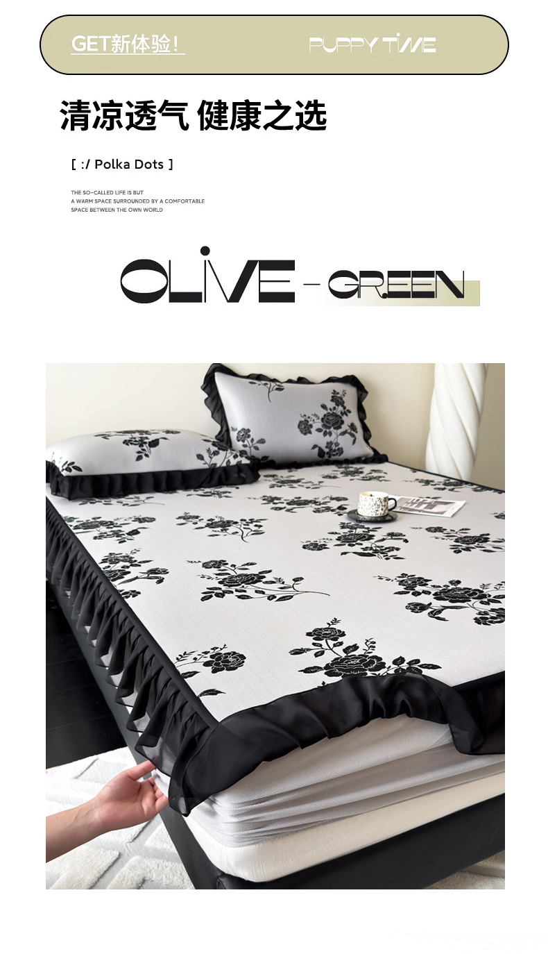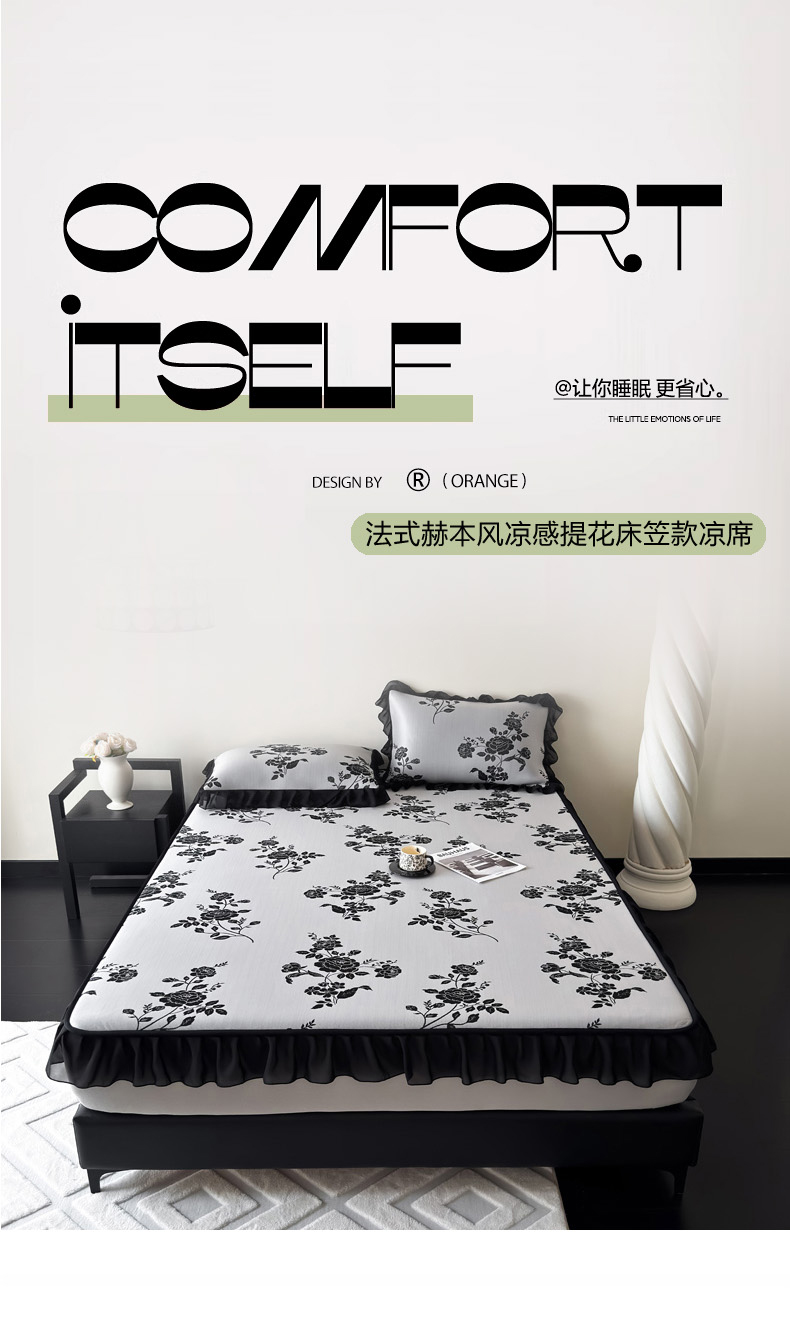 商品名称:九花鹿 2025新款A类法式赫本风PE凉感提花冰丝凉席-床笠款 床笠款-蔓蔓