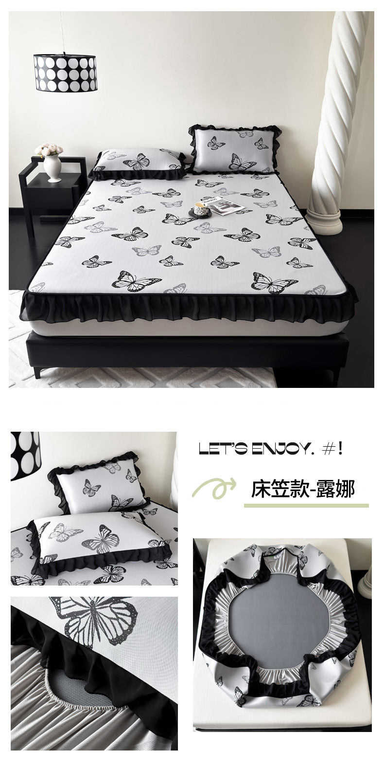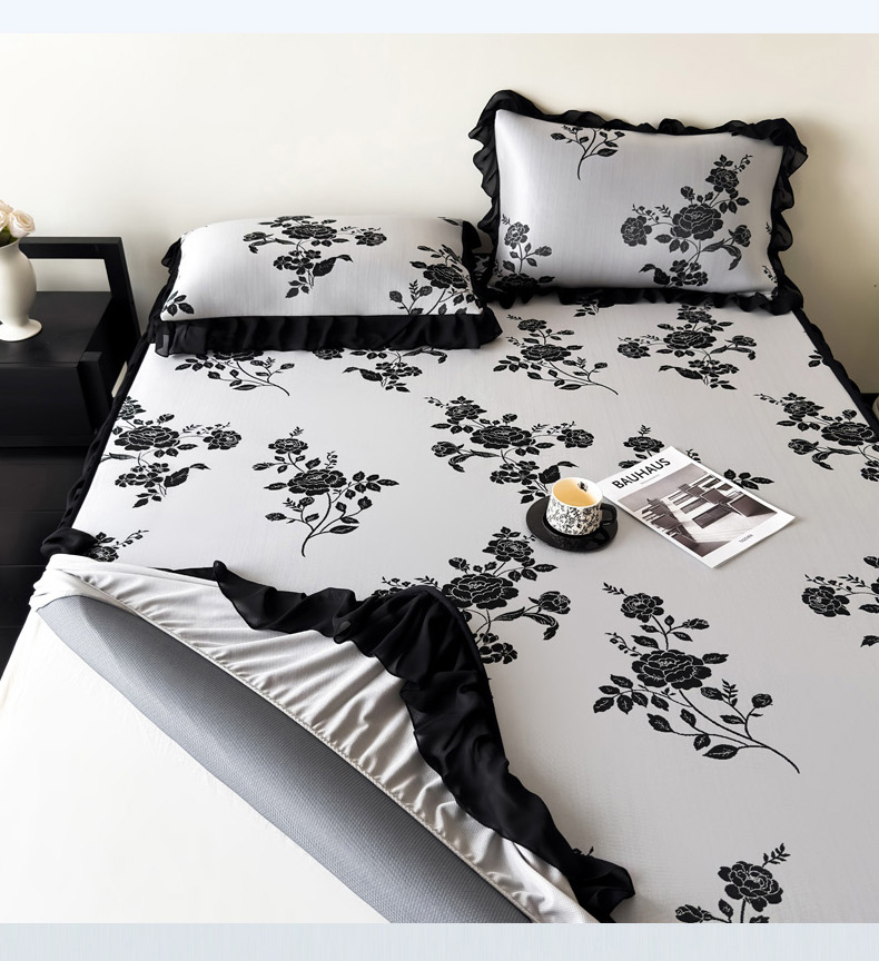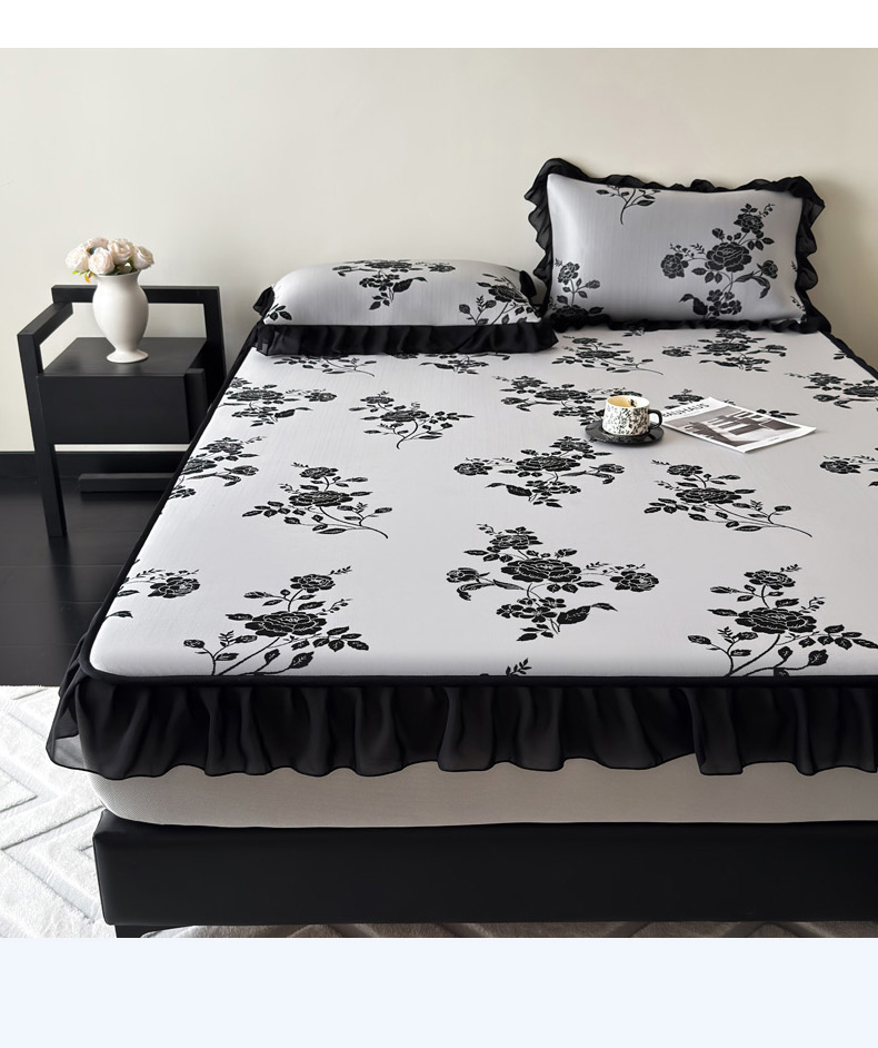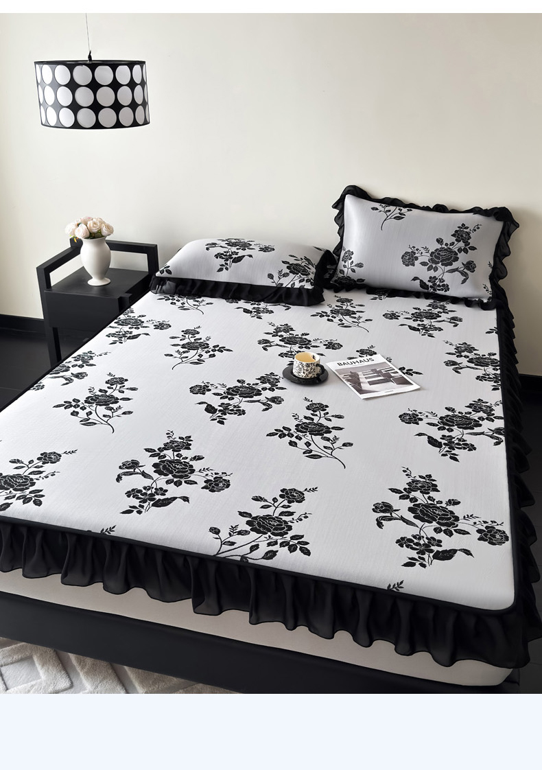 九花鹿 2025新款A类法式赫本风PE凉感提花冰丝凉席-床笠款 床笠款-蔓蔓