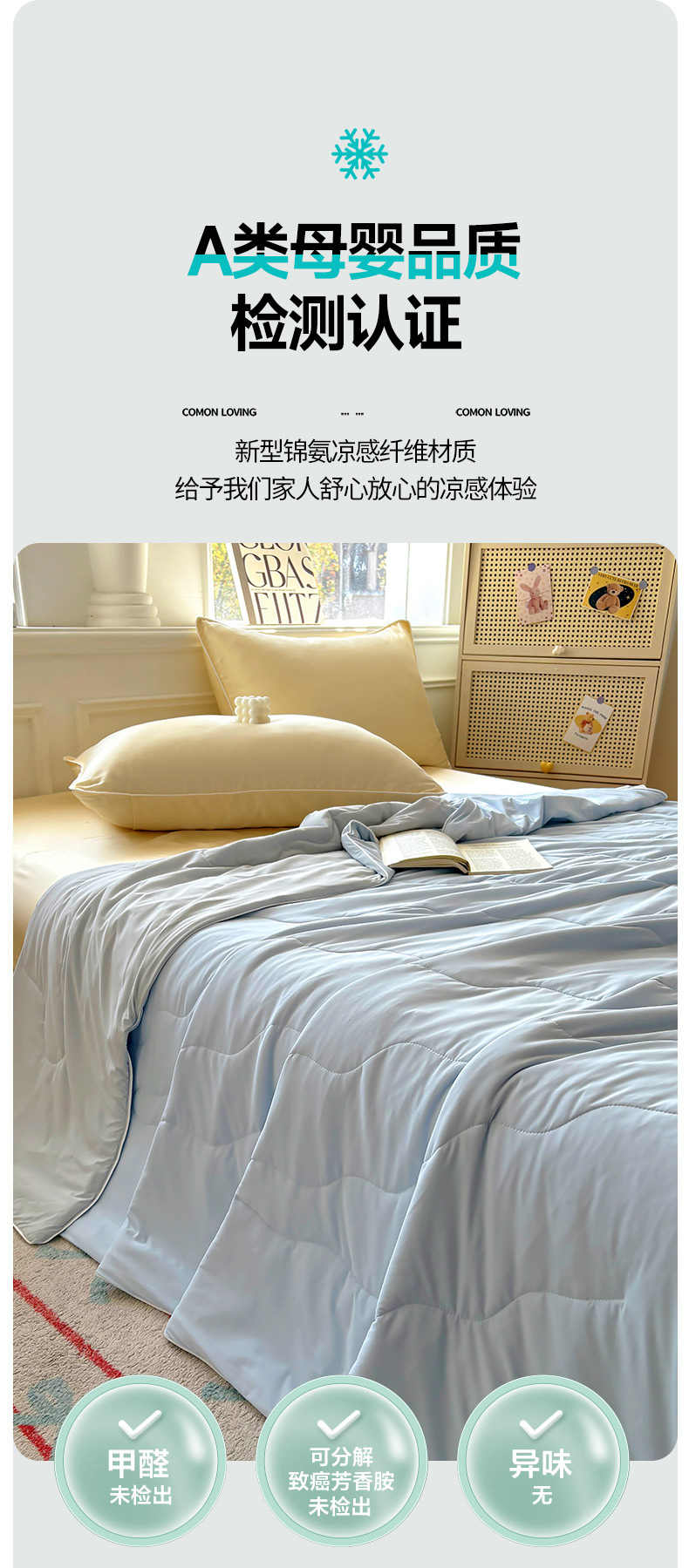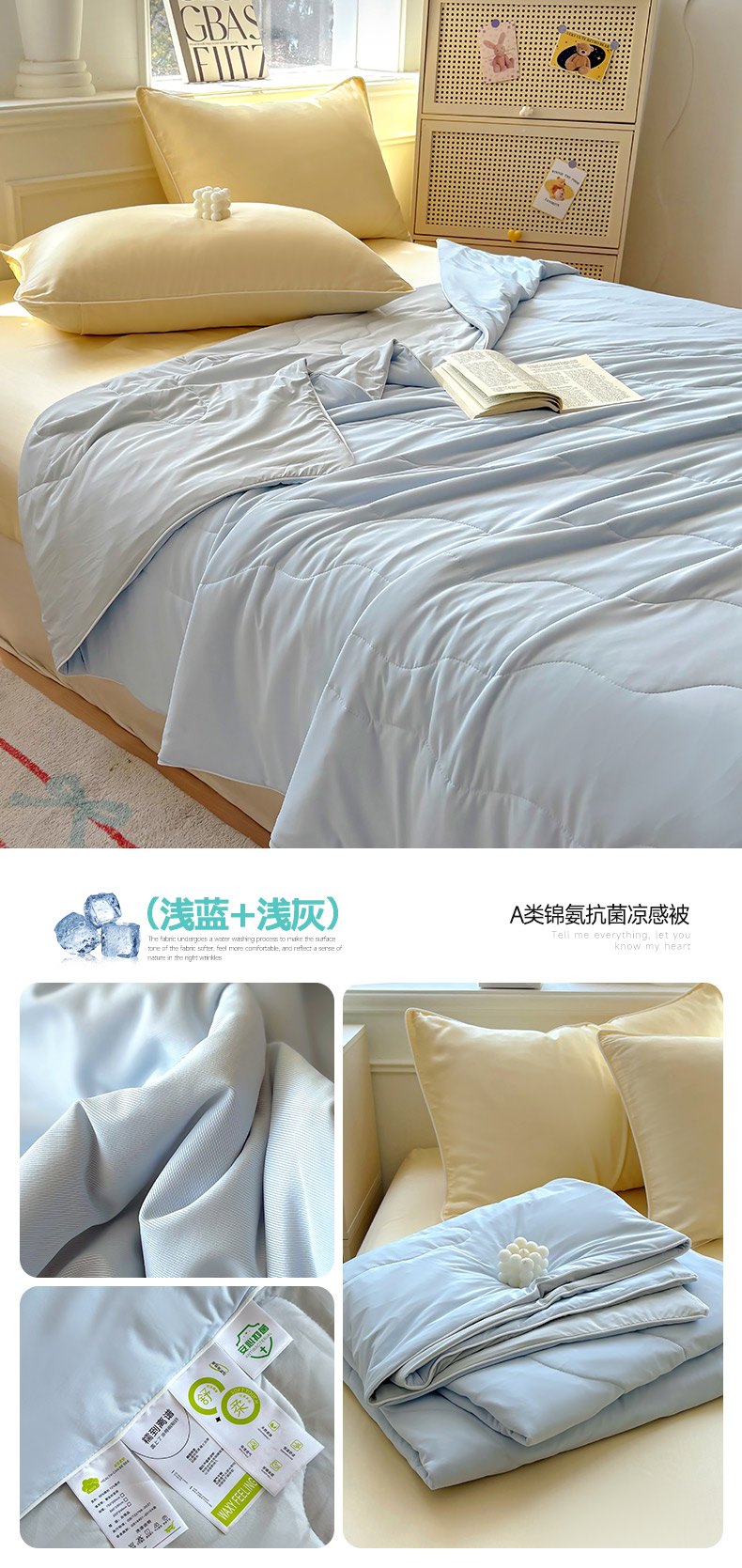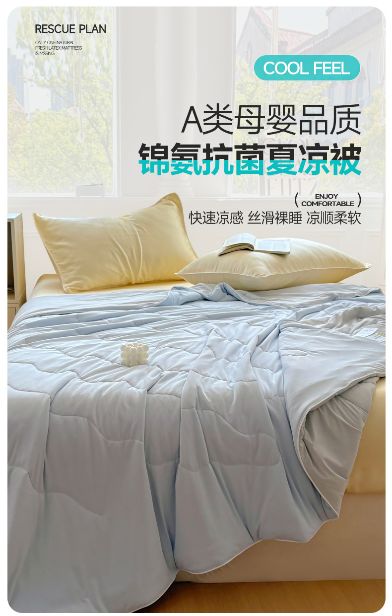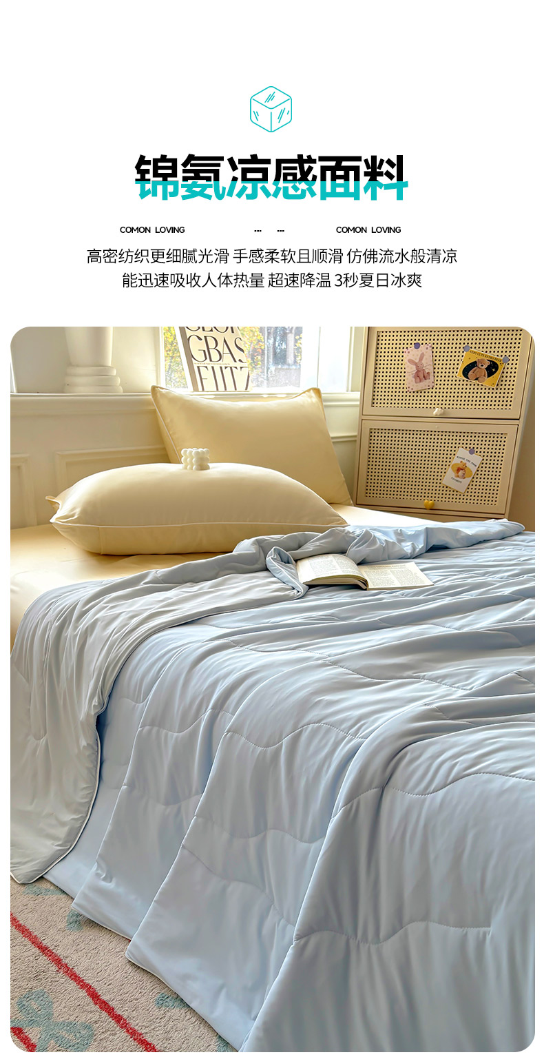 商品名称:百寐 2025新款A类160克88%锦纶+12%氨纶锦氨夏被纯色夏凉被空调被 浅蓝+浅灰