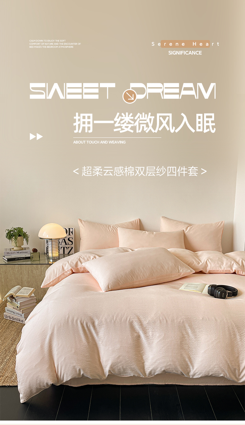 当前位置: 91家纺网 > 商品网购 > 床品套件 > 四件套 > 化纤活性四件套 > 优承佳 2025新款超柔云感纯色双层纱四件套 双层纱-浅粉