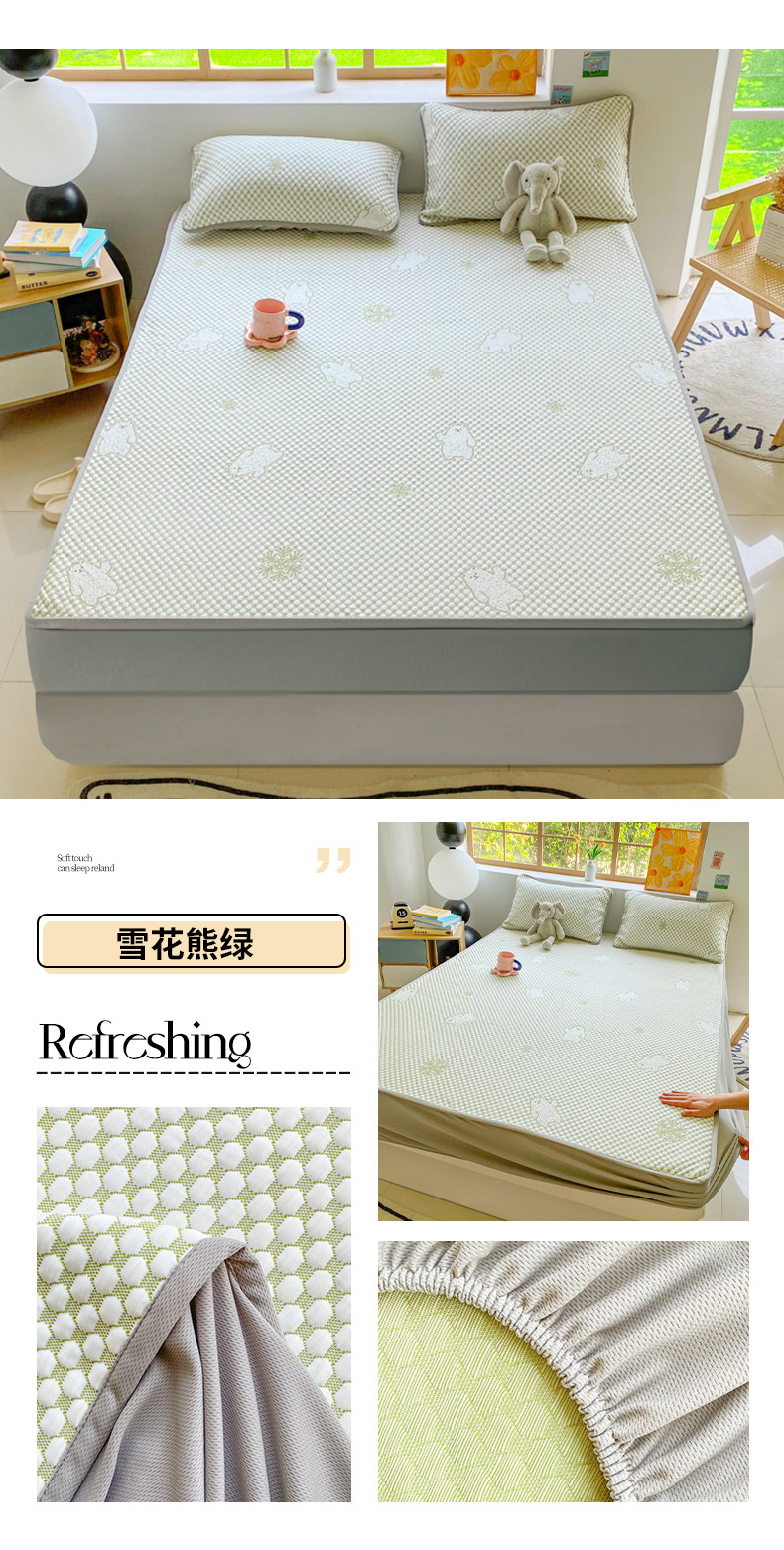 商品名称:千朵 2025新款凉感PE冰豆豆提花床笠款凉席 雪花熊绿