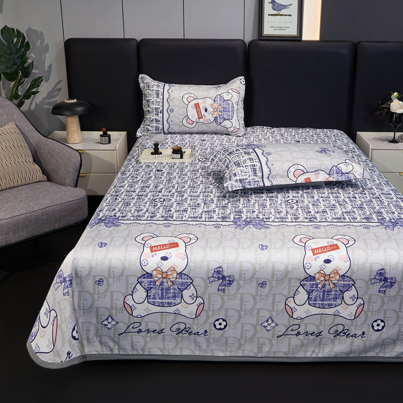 梦卓家纺 2025新款冰丝凉席床单款凉席三件套 潮牌熊