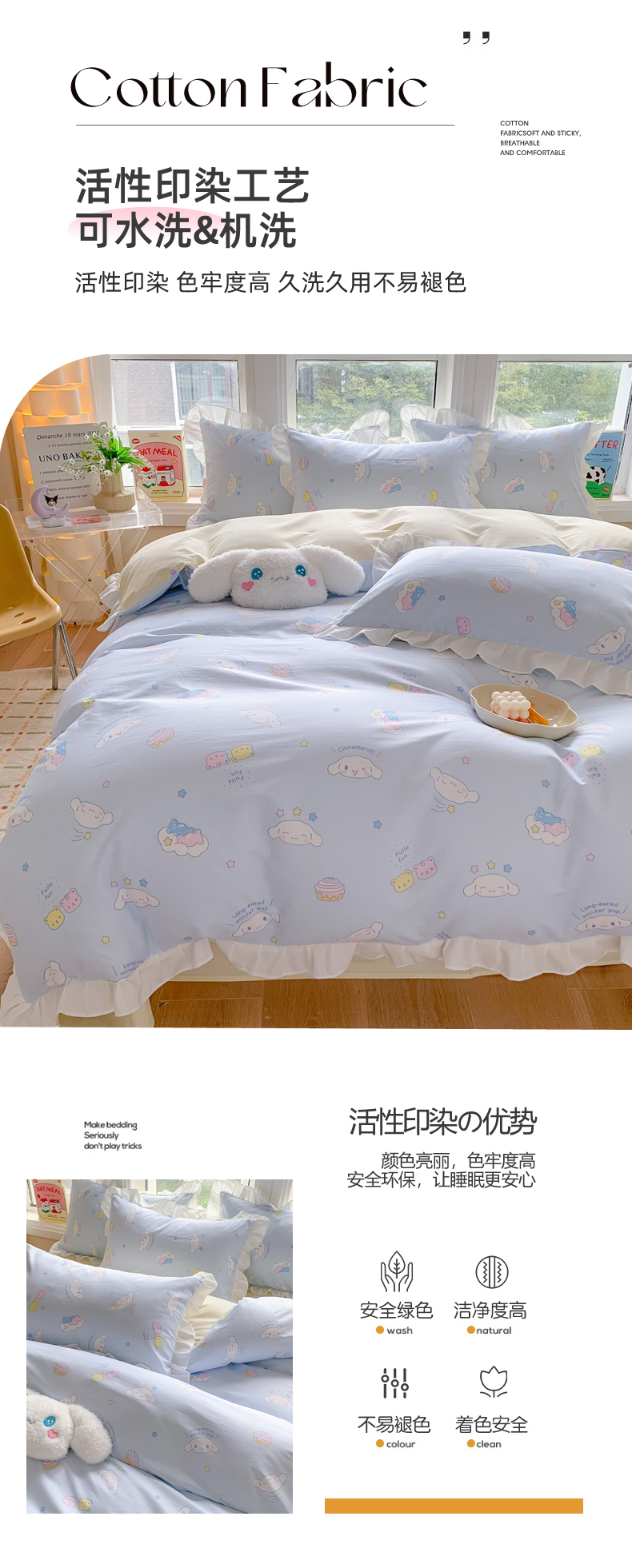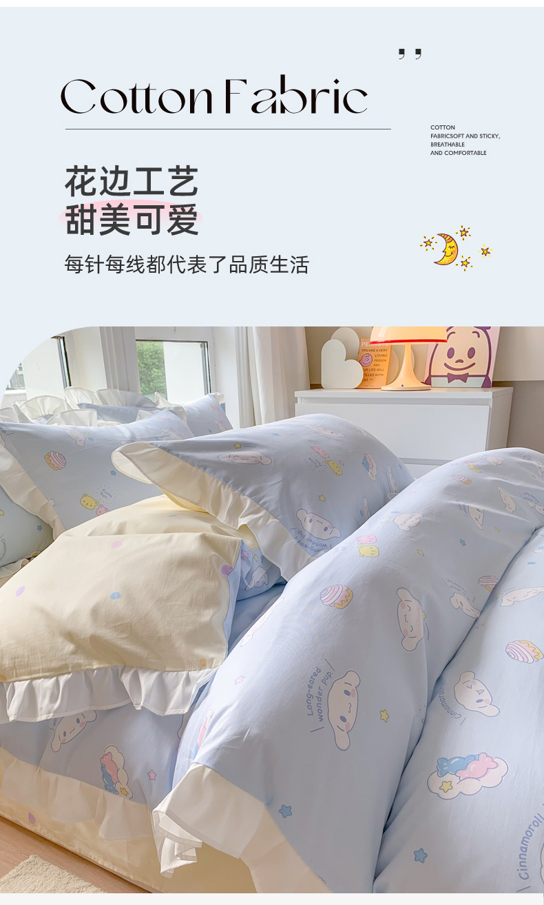 当前位置: 91家纺网 > 商品网购 > 床品套件 > 四件套 > 全棉普通四件套 > 玉元坊 2025年新款三丽鸥系列白花边被套纯棉全棉床裙三件套四件套-大耳狗系列 云朵大耳狗【花边款】