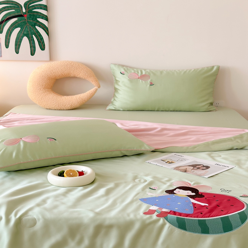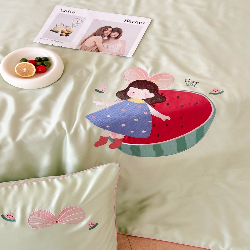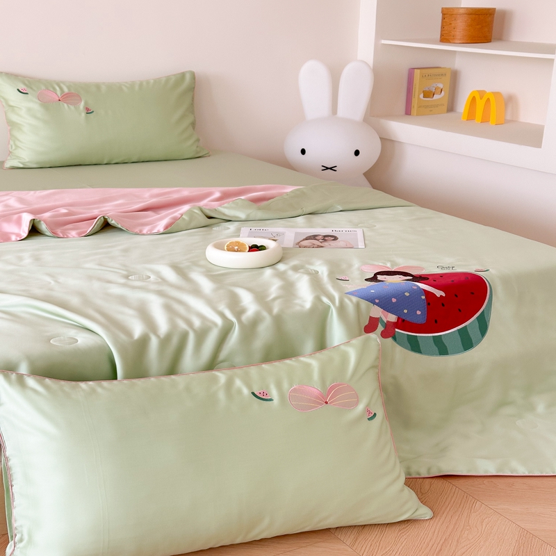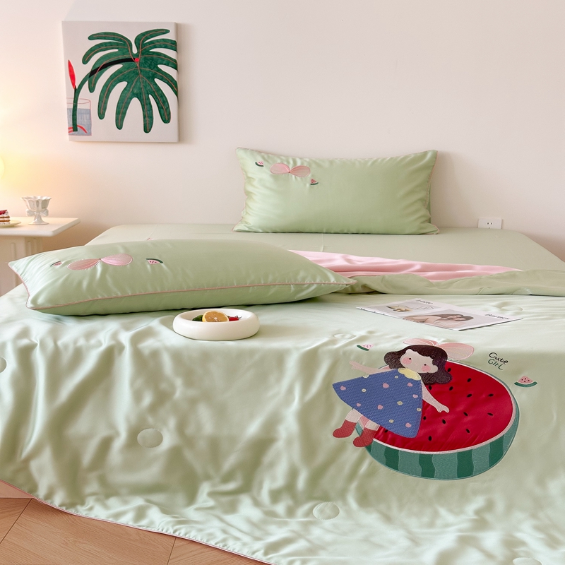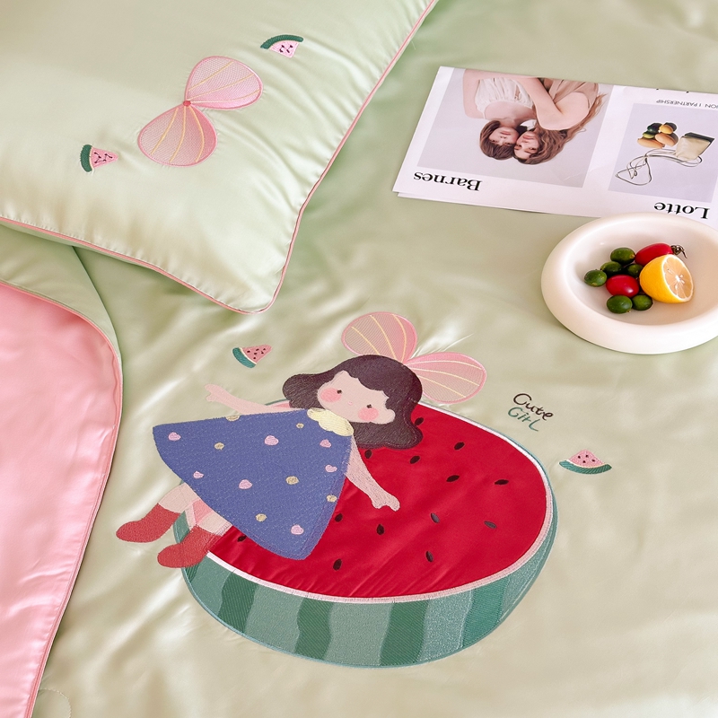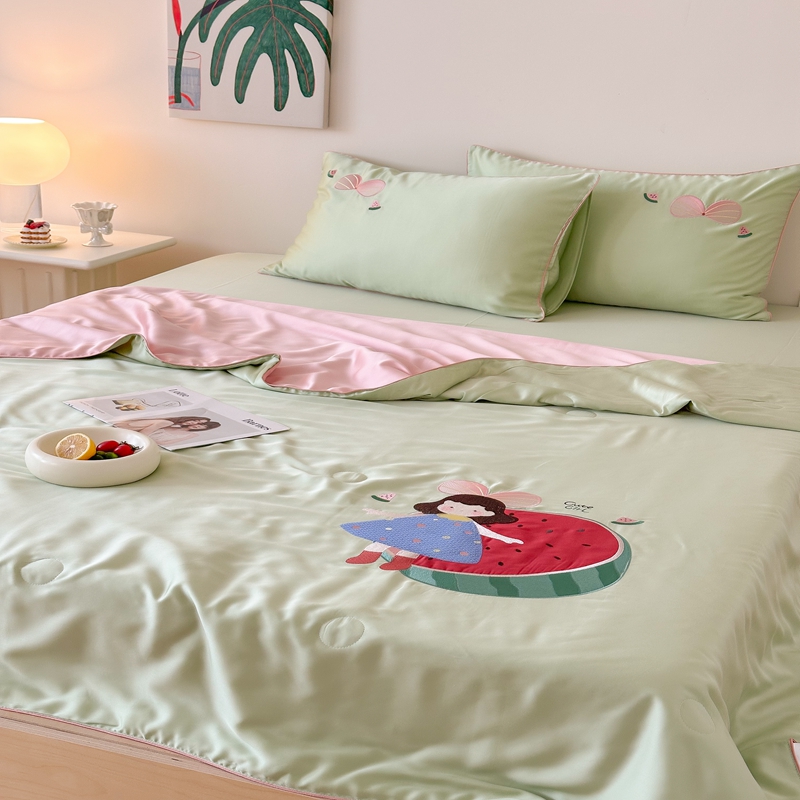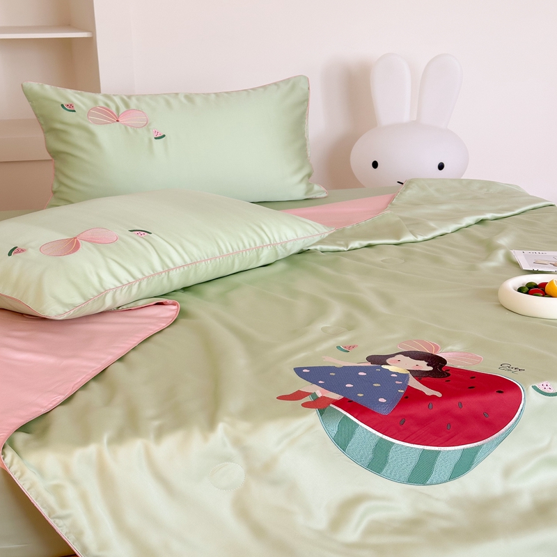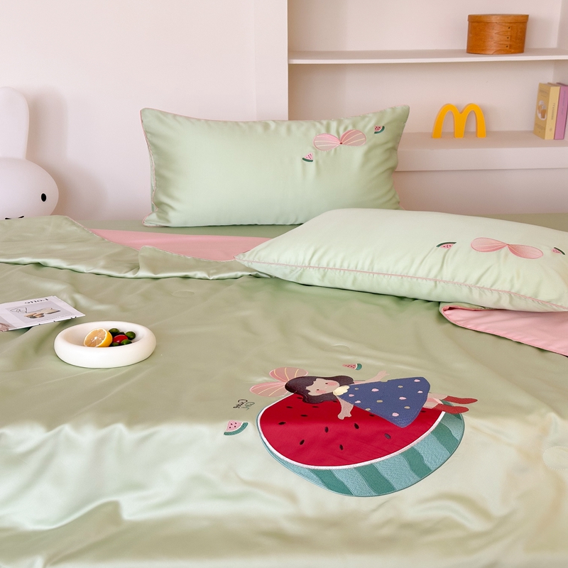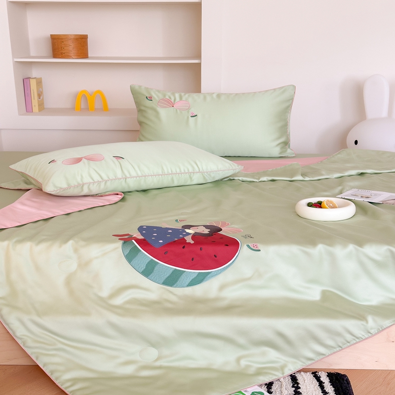 (总)西西家居 2025新款60支兰精天丝儿童夏被(面料A类)绣花款-西瓜女孩