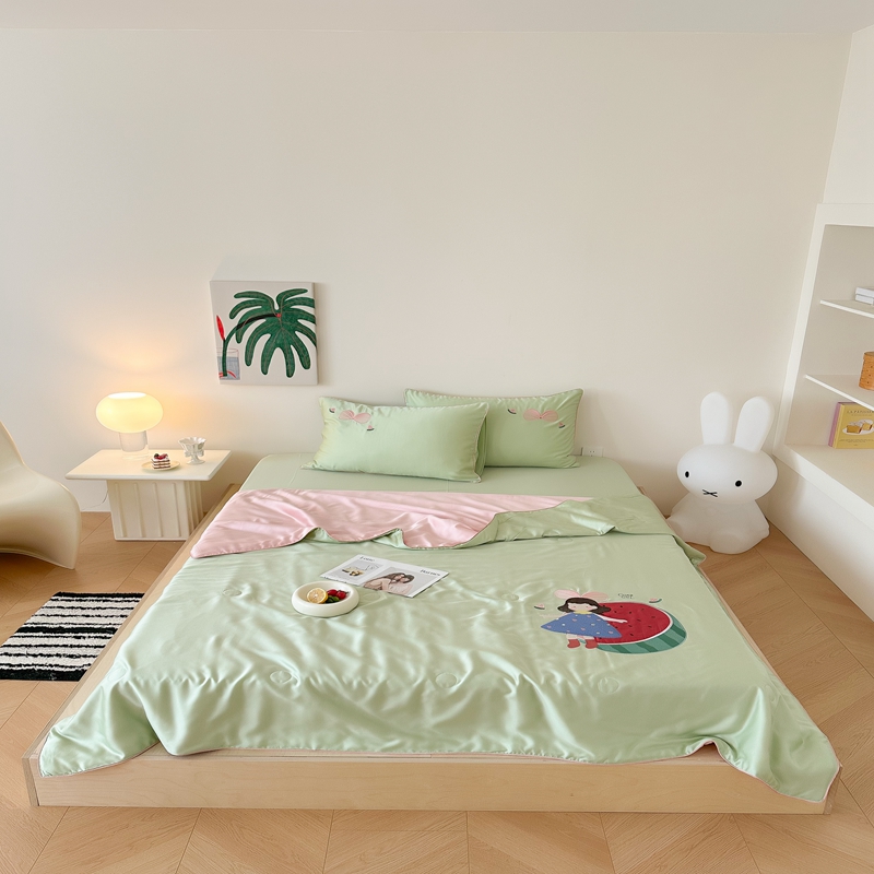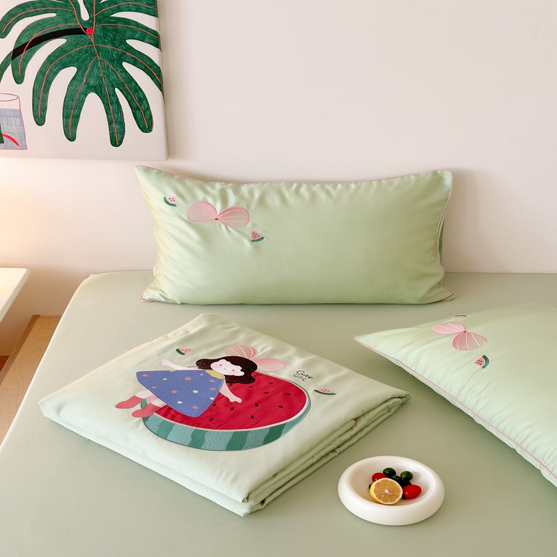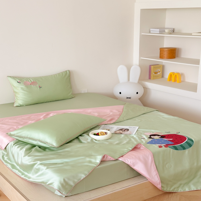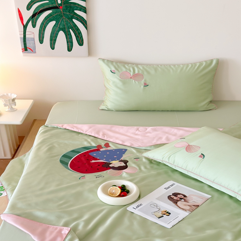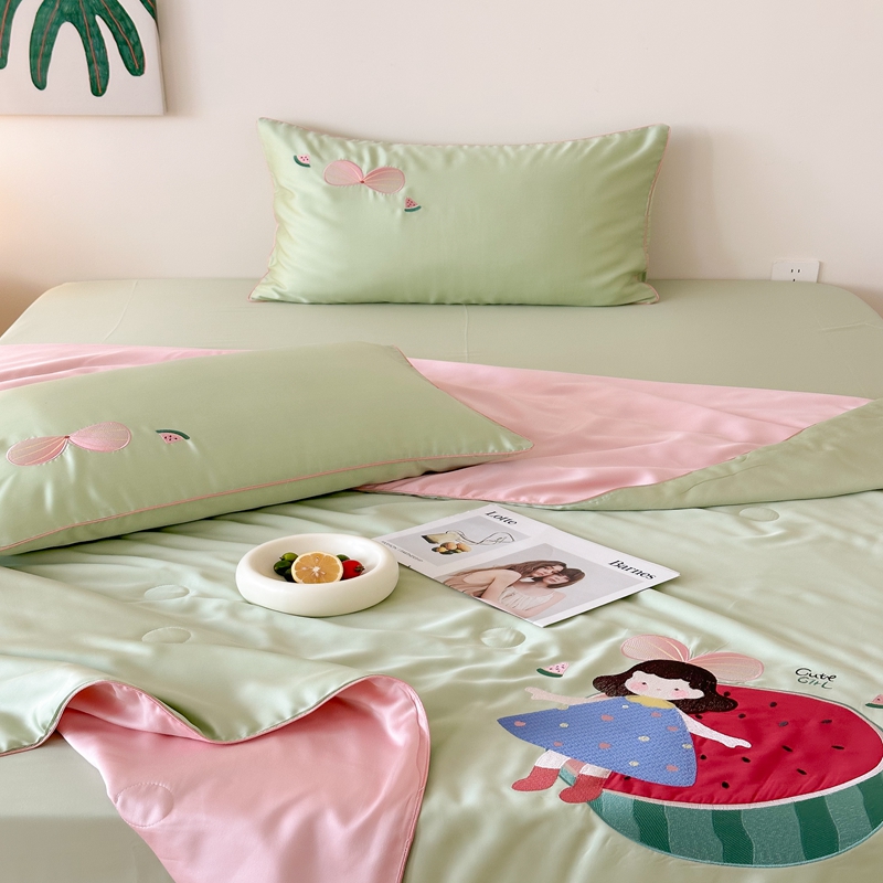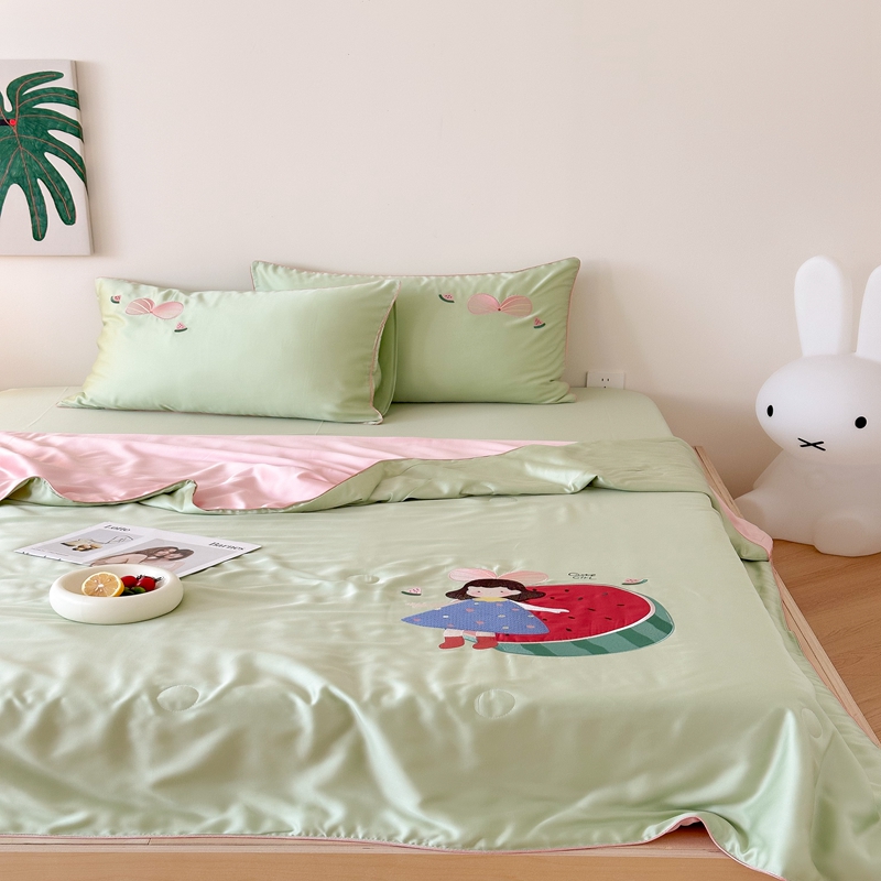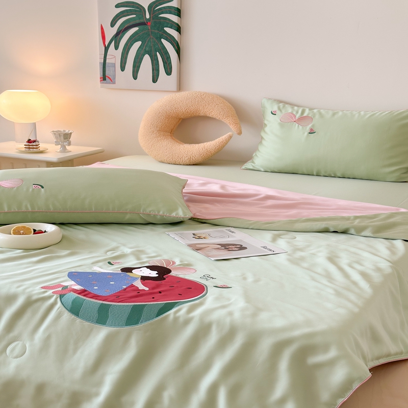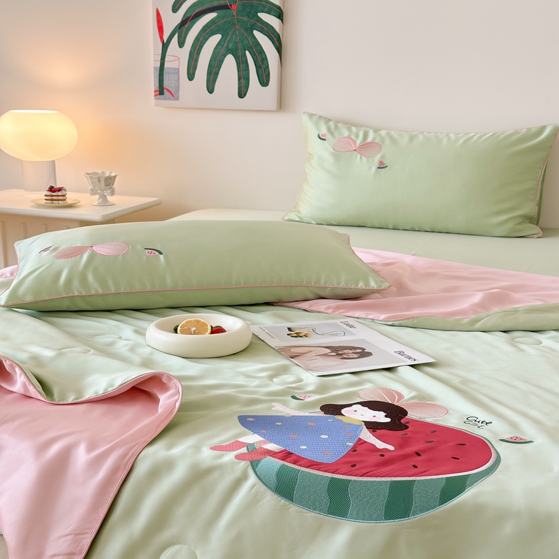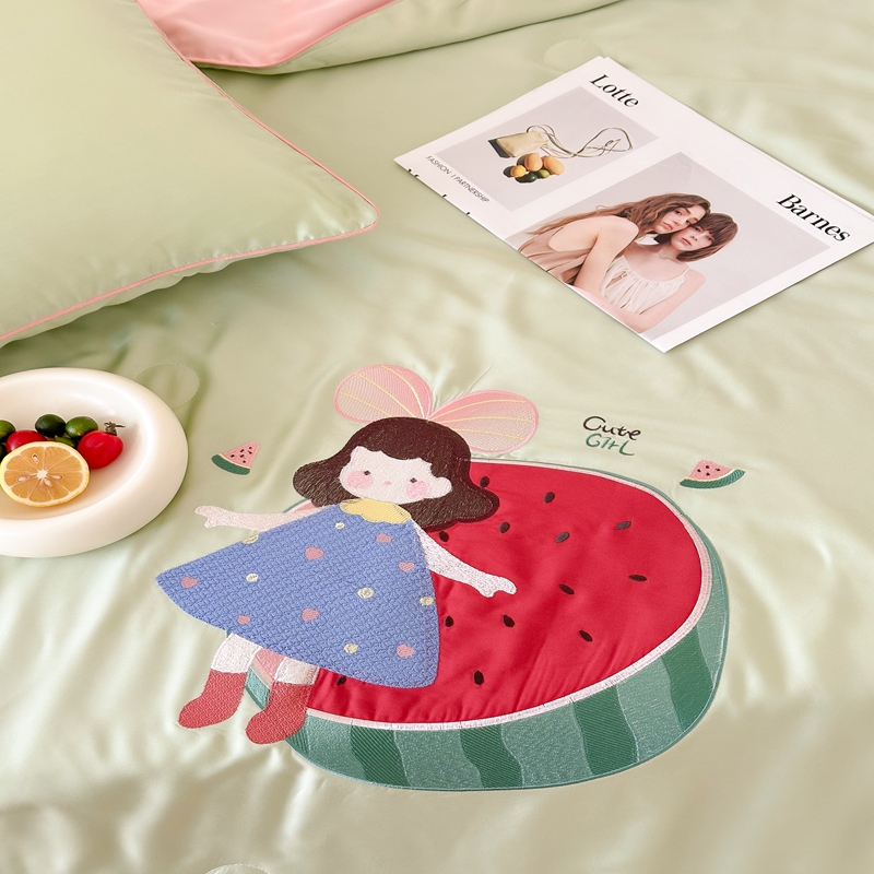(总)西西家居 2025新款60支兰精天丝儿童夏被(面料A类)绣花款-西瓜女孩