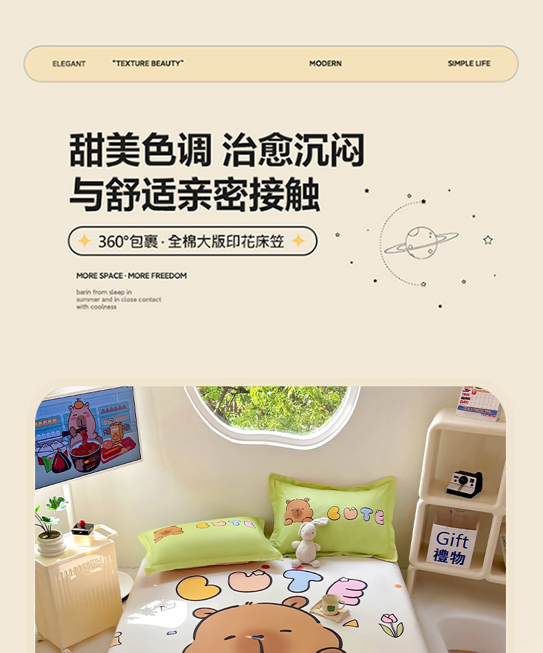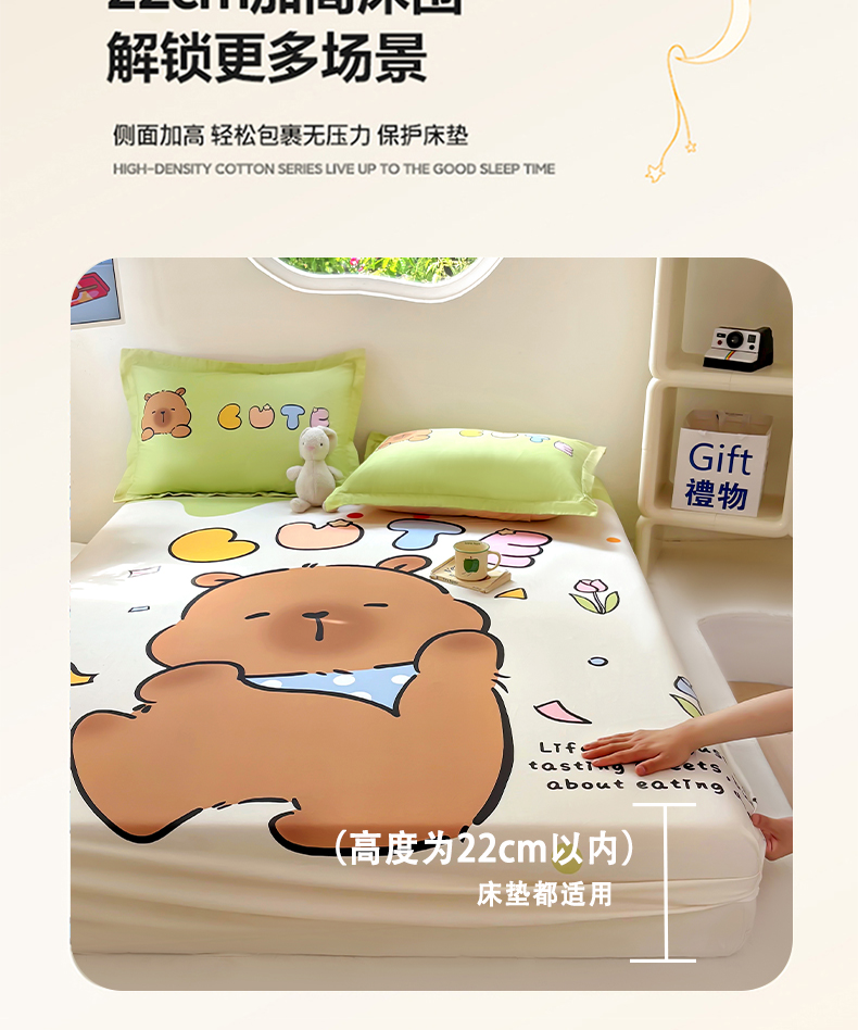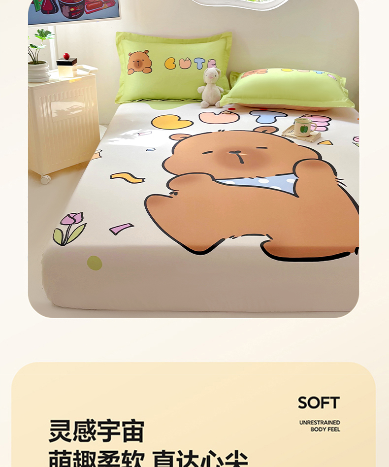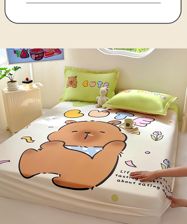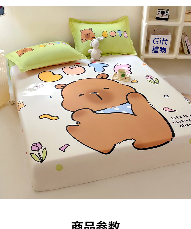 商品名称:浩诚 2025新款卡皮巴拉原创IP全棉纯棉大版单床笠单枕套床笠枕套单件-有作品登记证书 水豚巴拉