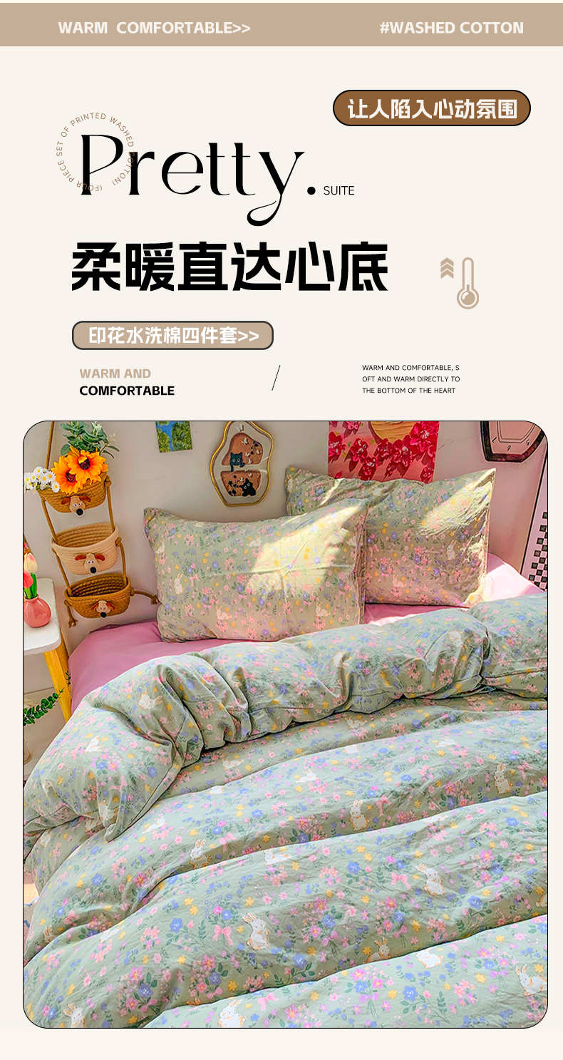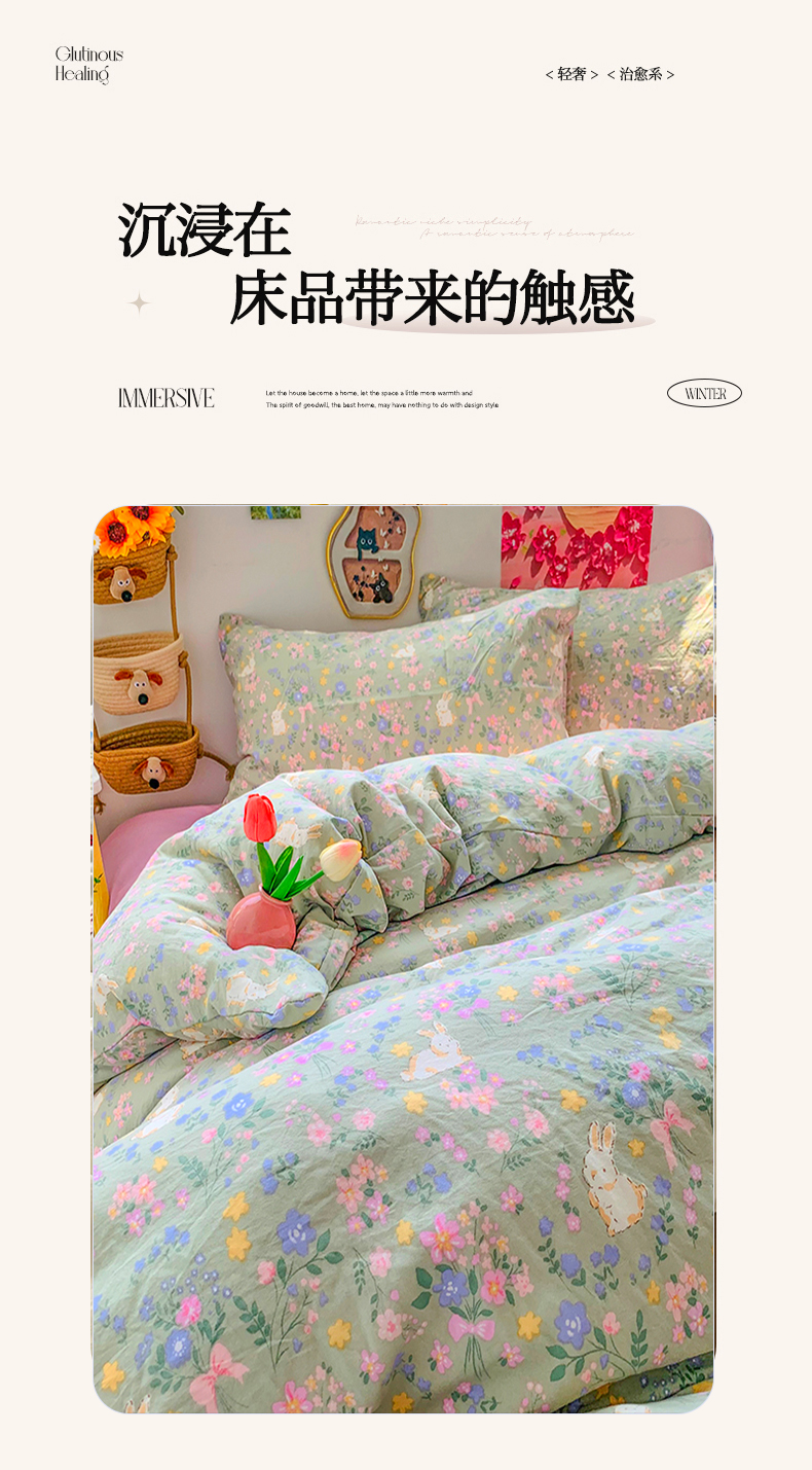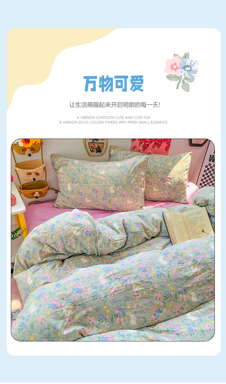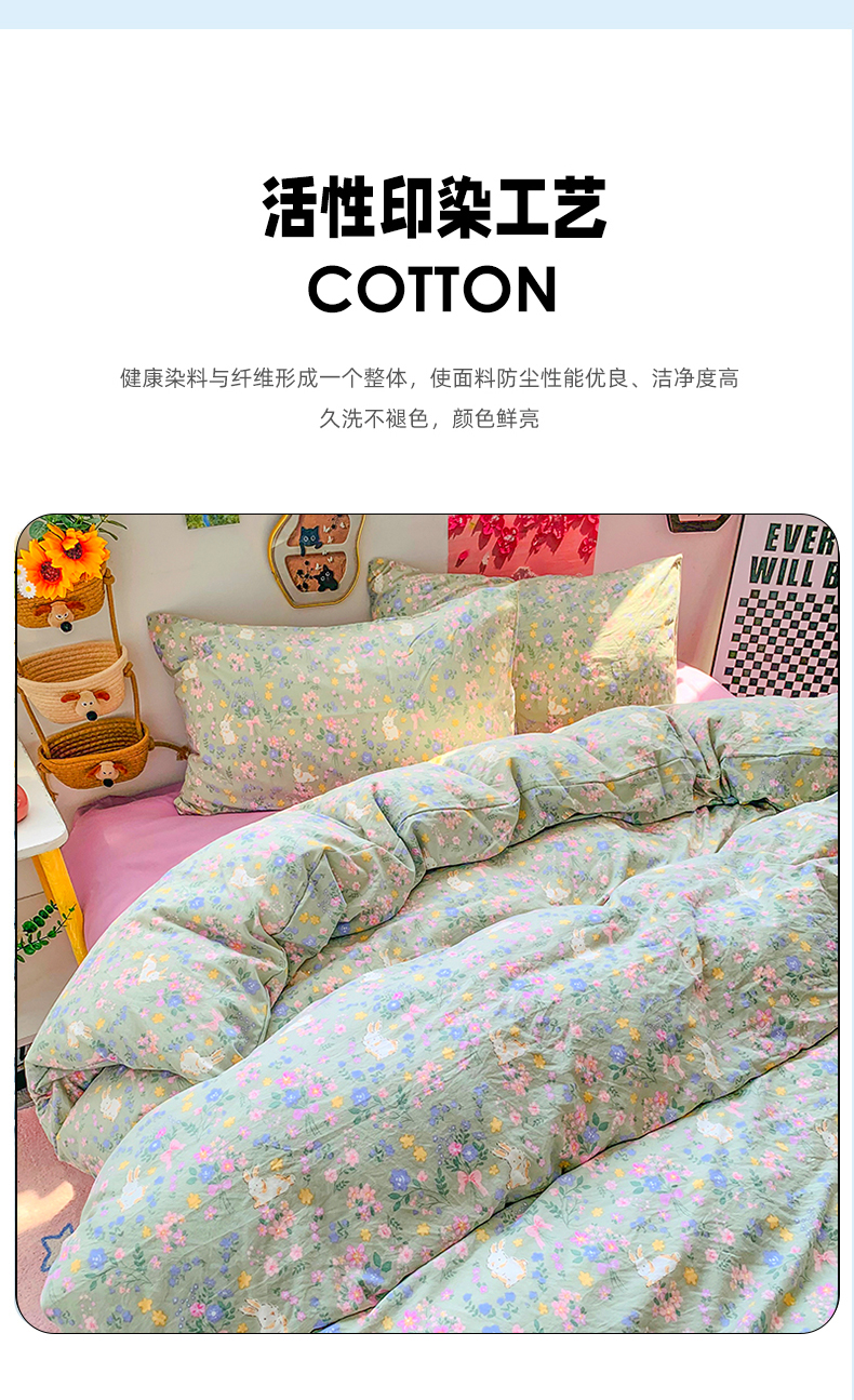 当前位置: 91家纺网 > 商品网购 > 床品套件 > 四件套 > 水洗棉四件套 > 艾特你 2025新款印花水洗棉四件套 花丛间兔