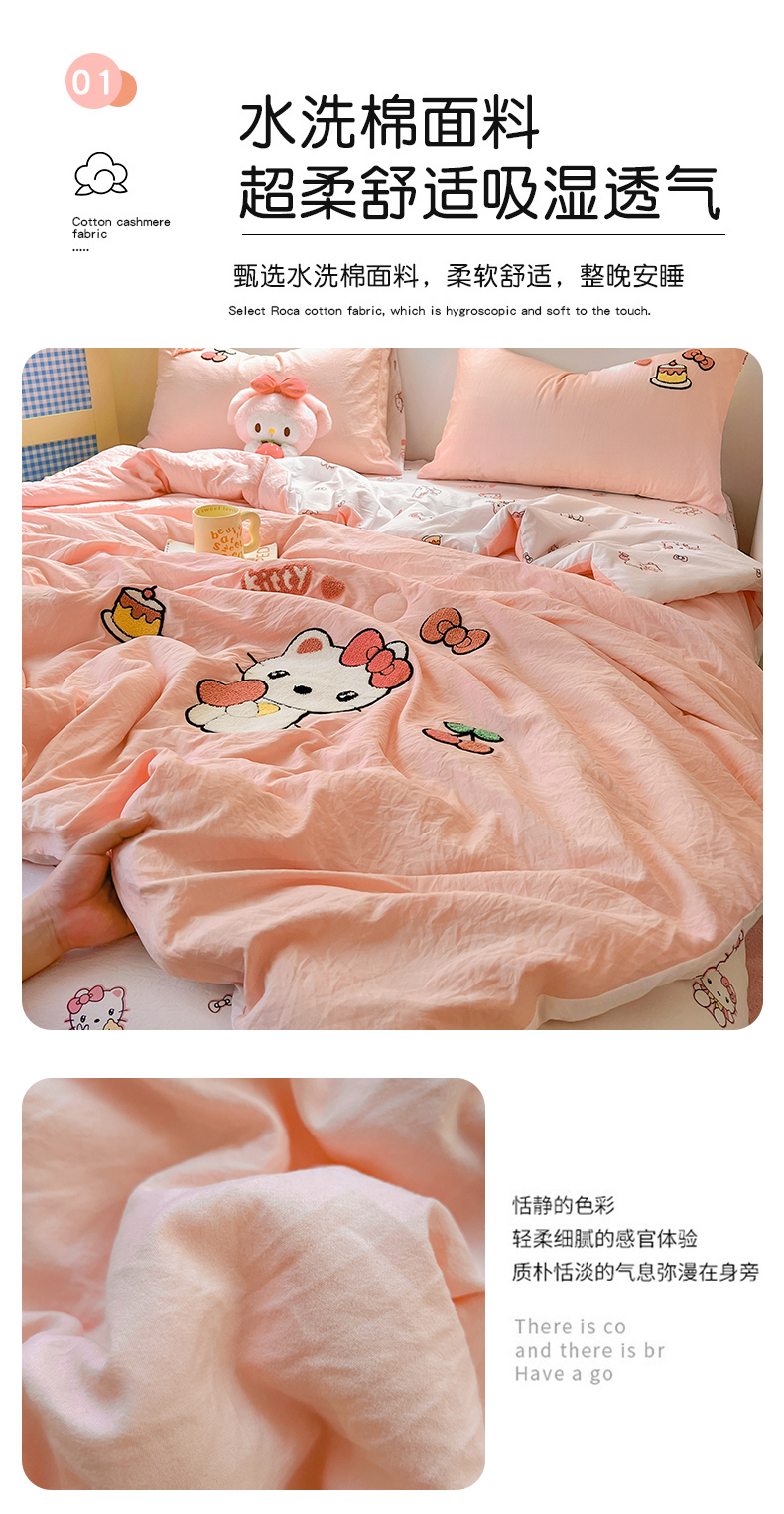 当前位置: 91家纺网 > 商品网购 > 床品套件 > 四件套 > 夏被四件套 > 易辰美 2025新款水洗棉毛巾绣夏被空调被夏凉被四件套 KT猫