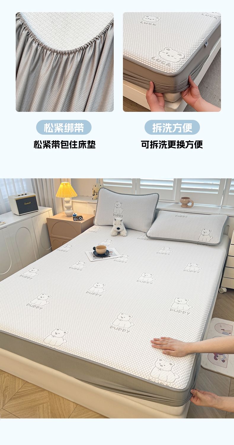 • 91家纺网 家纺一手货源 找家纺 喜居 2025新款A类凉感豆豆席床笠款 luck小冰熊-蓝