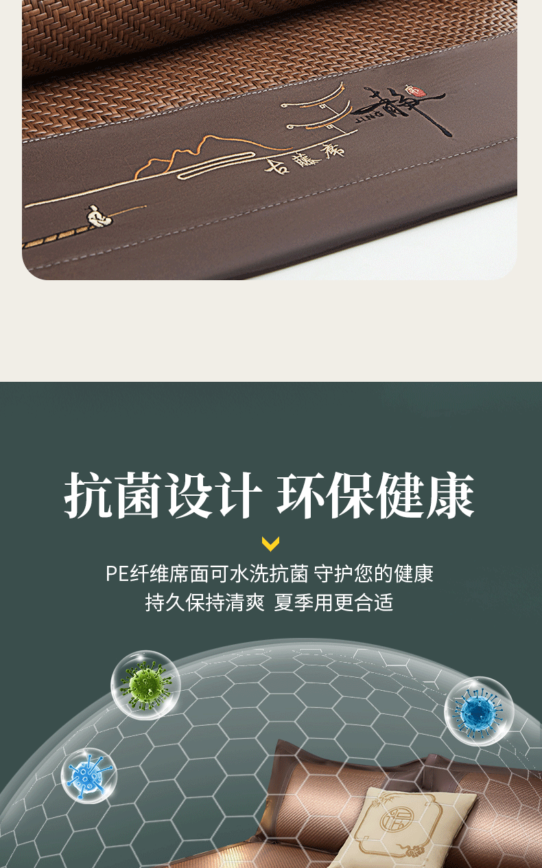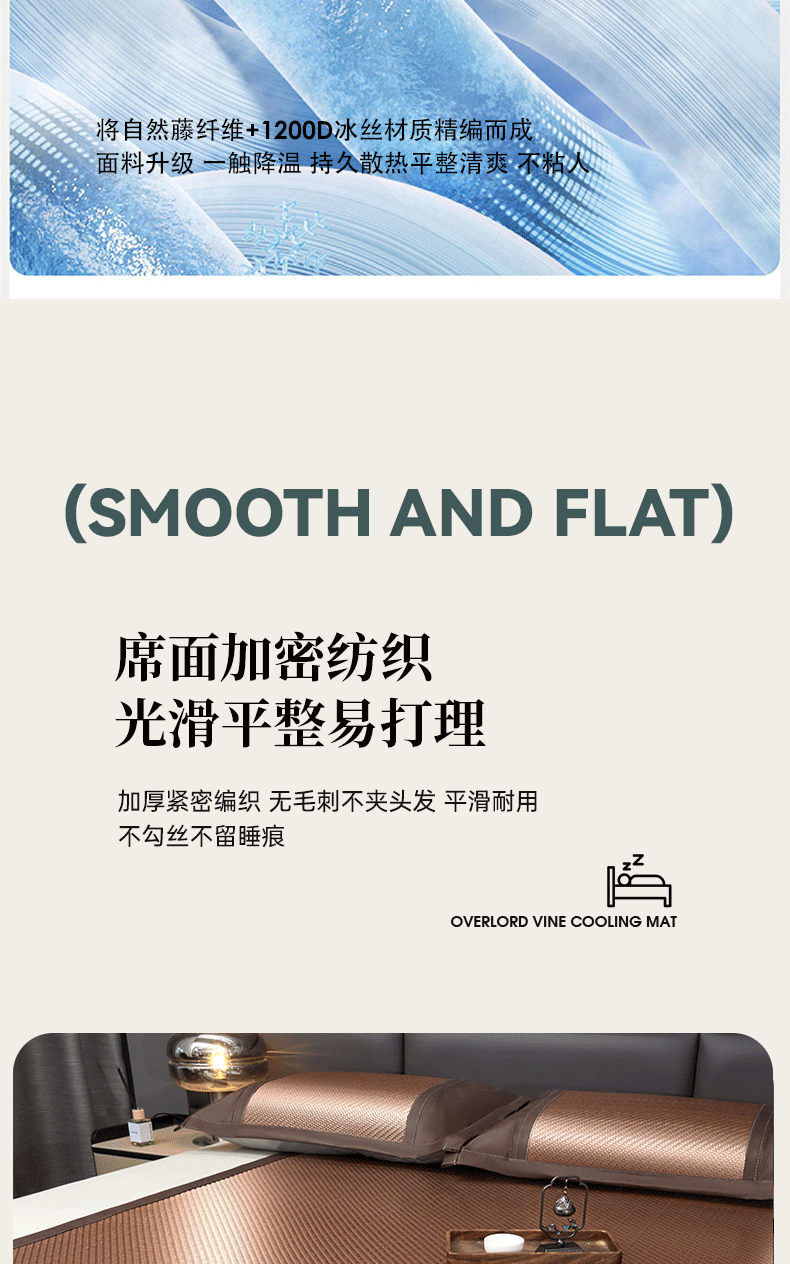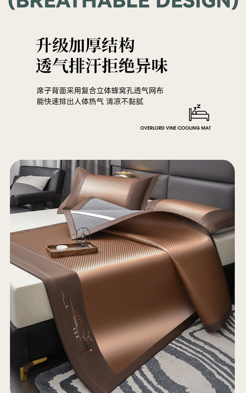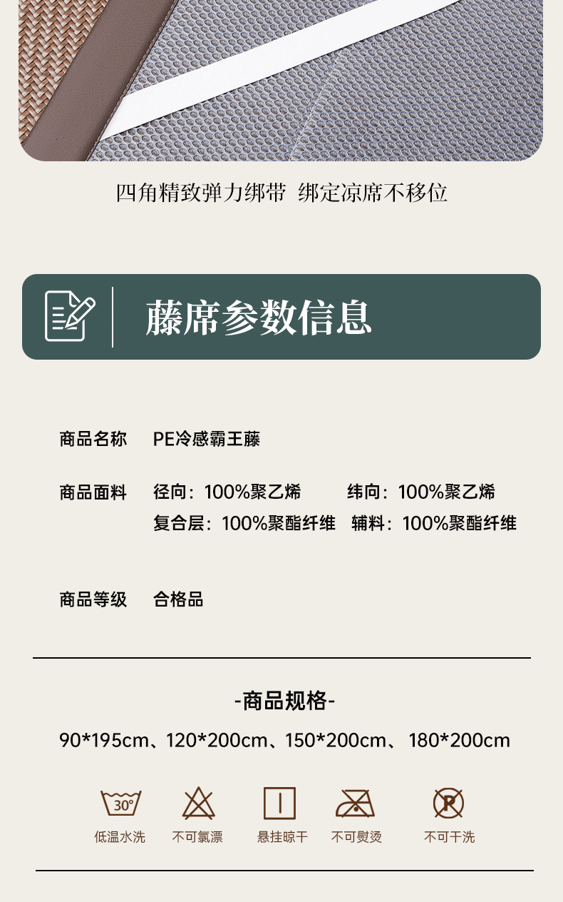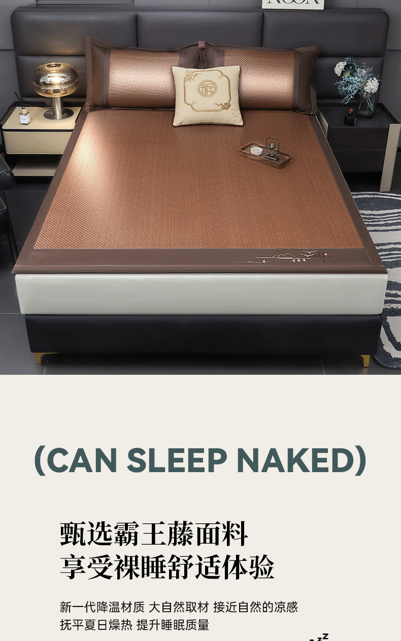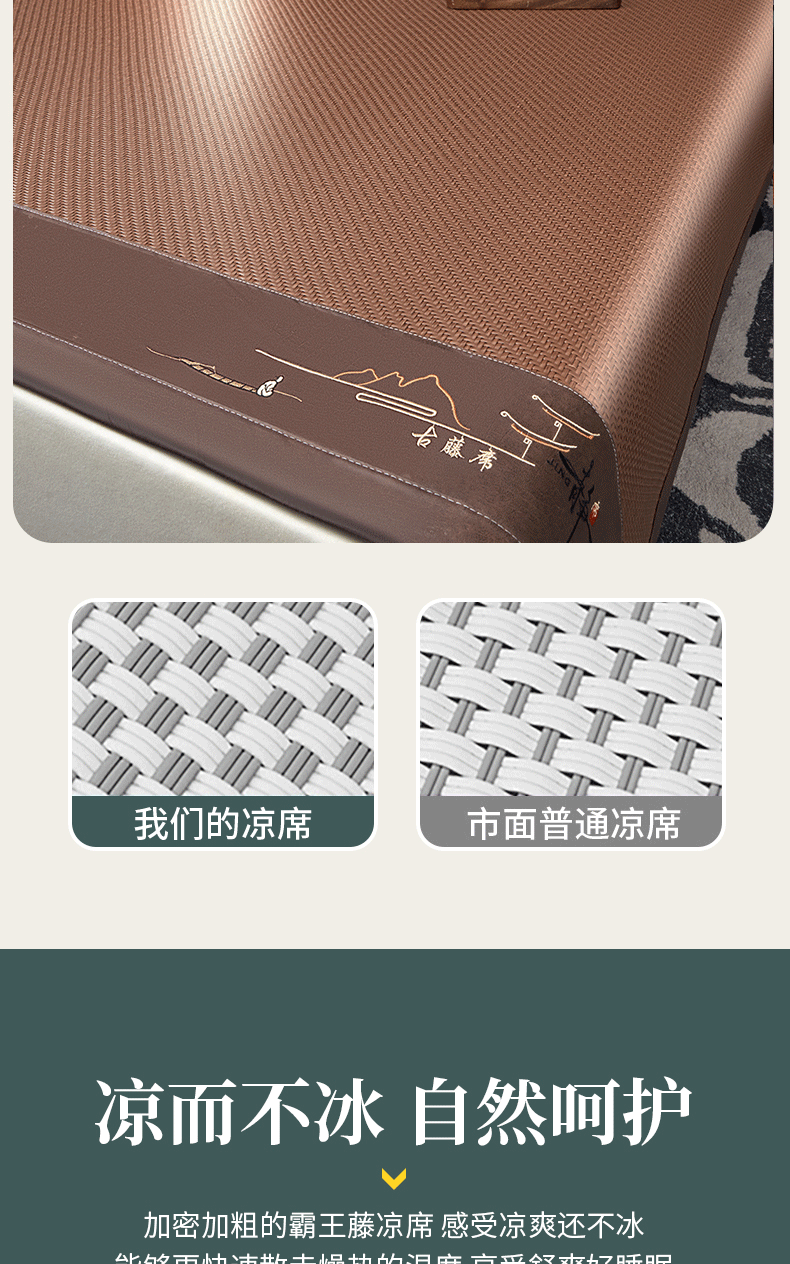 商品名称:卡罗兰 2025新款PE超冷感霸王藤刺绣床笠款凉席席子 古藤咖-床笠款