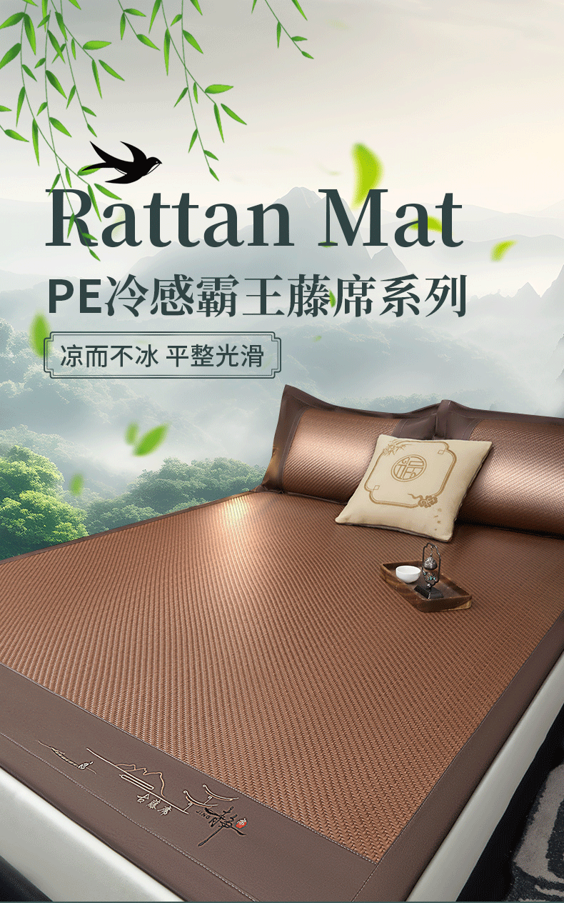 (总)卡罗兰 2025新款PE超冷感霸王藤刺绣凉席冰藤席床单款,霸王藤-咖色,霸王藤-烟灰色,霸王藤-禅香色,霸王藤-孔雀蓝,霸王藤-水绿