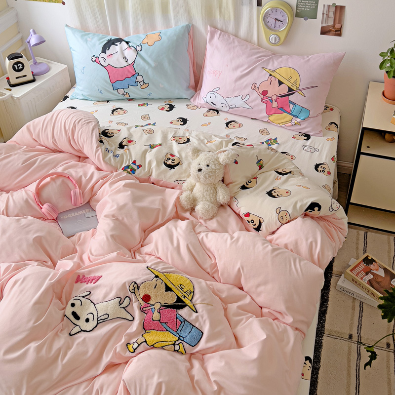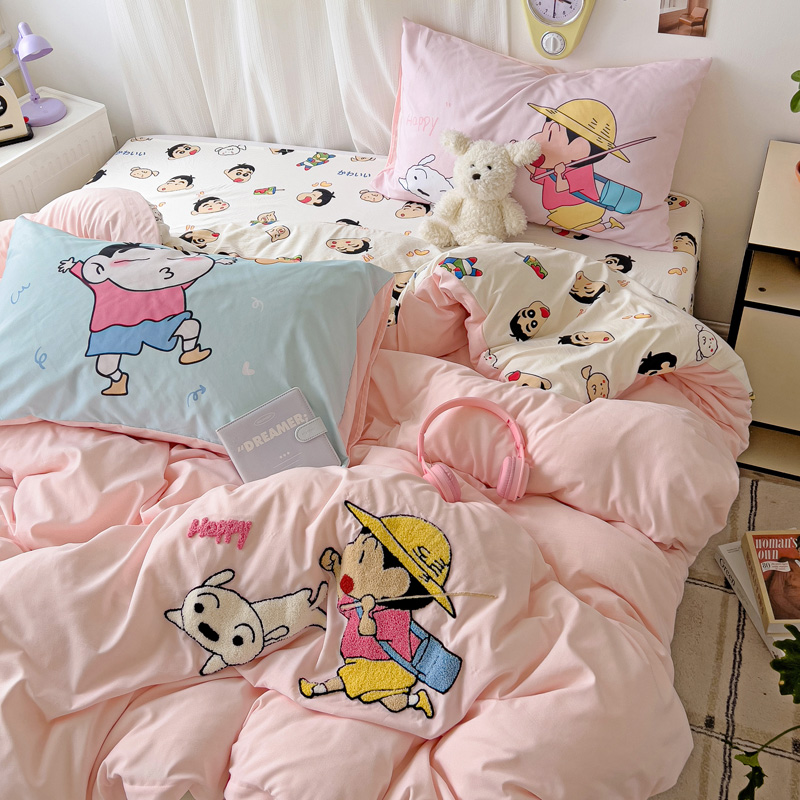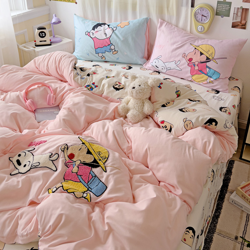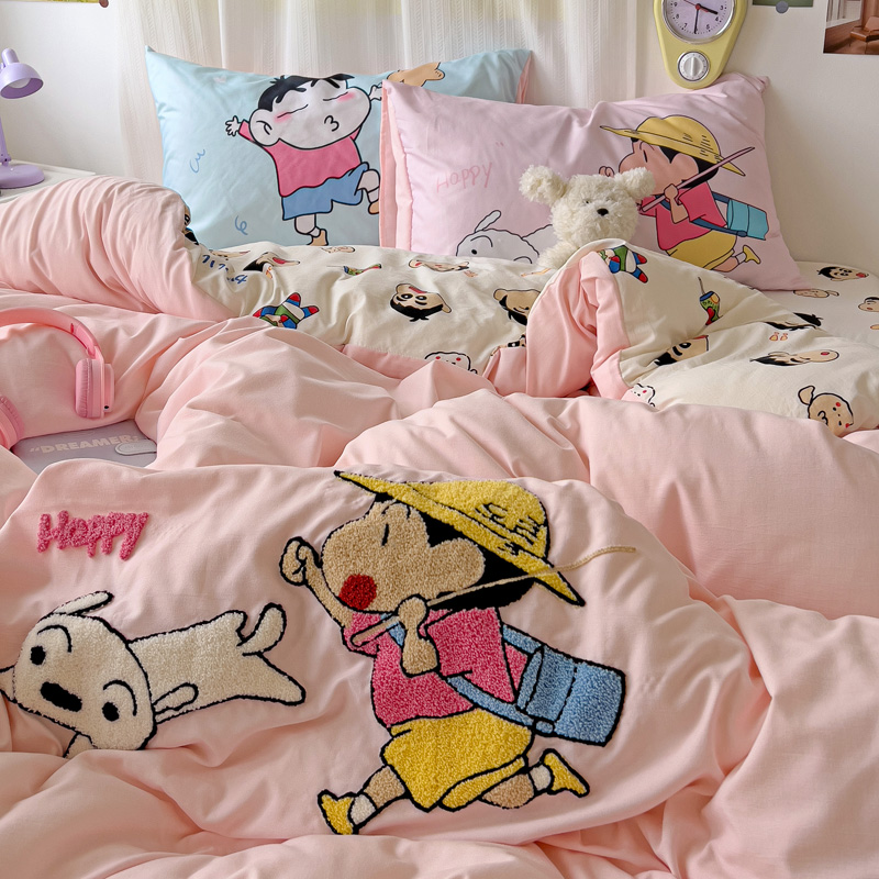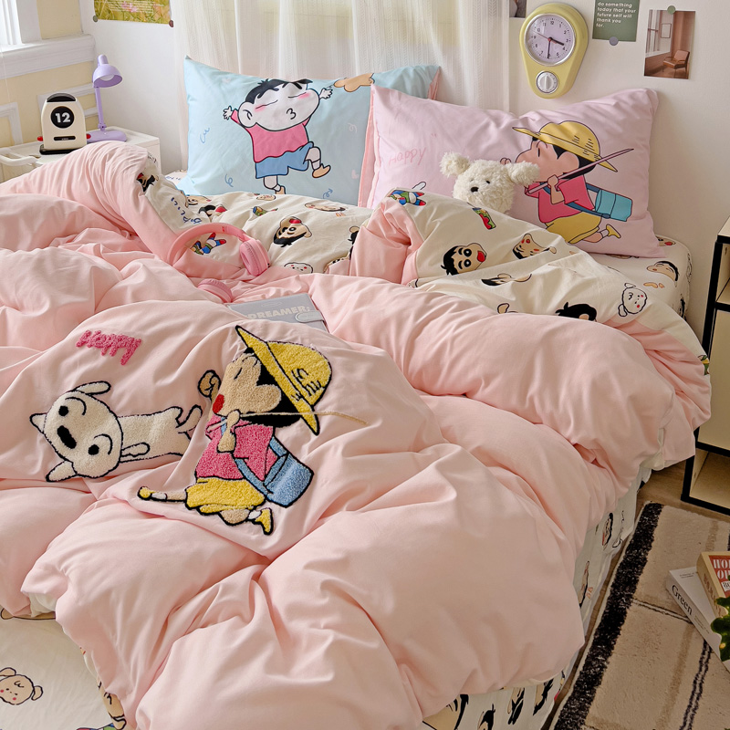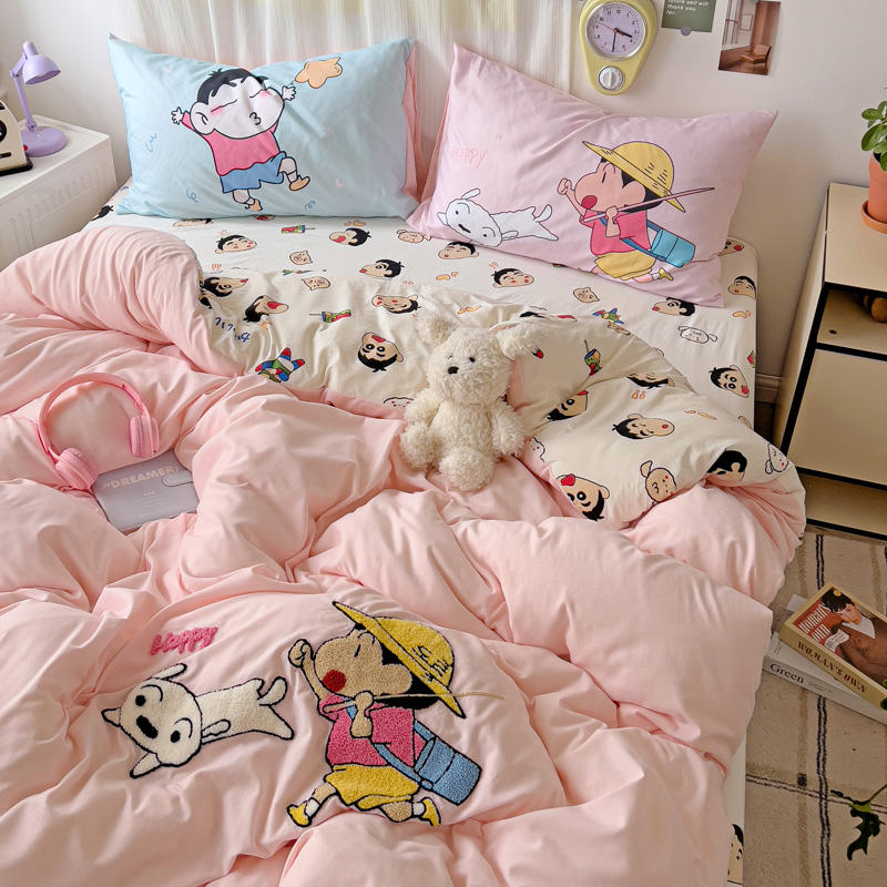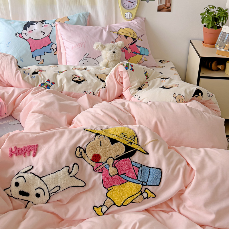 (总)一霖家纺 2025新款大版卡通牛奶绒四件套,搞怪新新紫,俏皮小新-黄,俏皮小新-蓝,甜心猫咪,星空小新