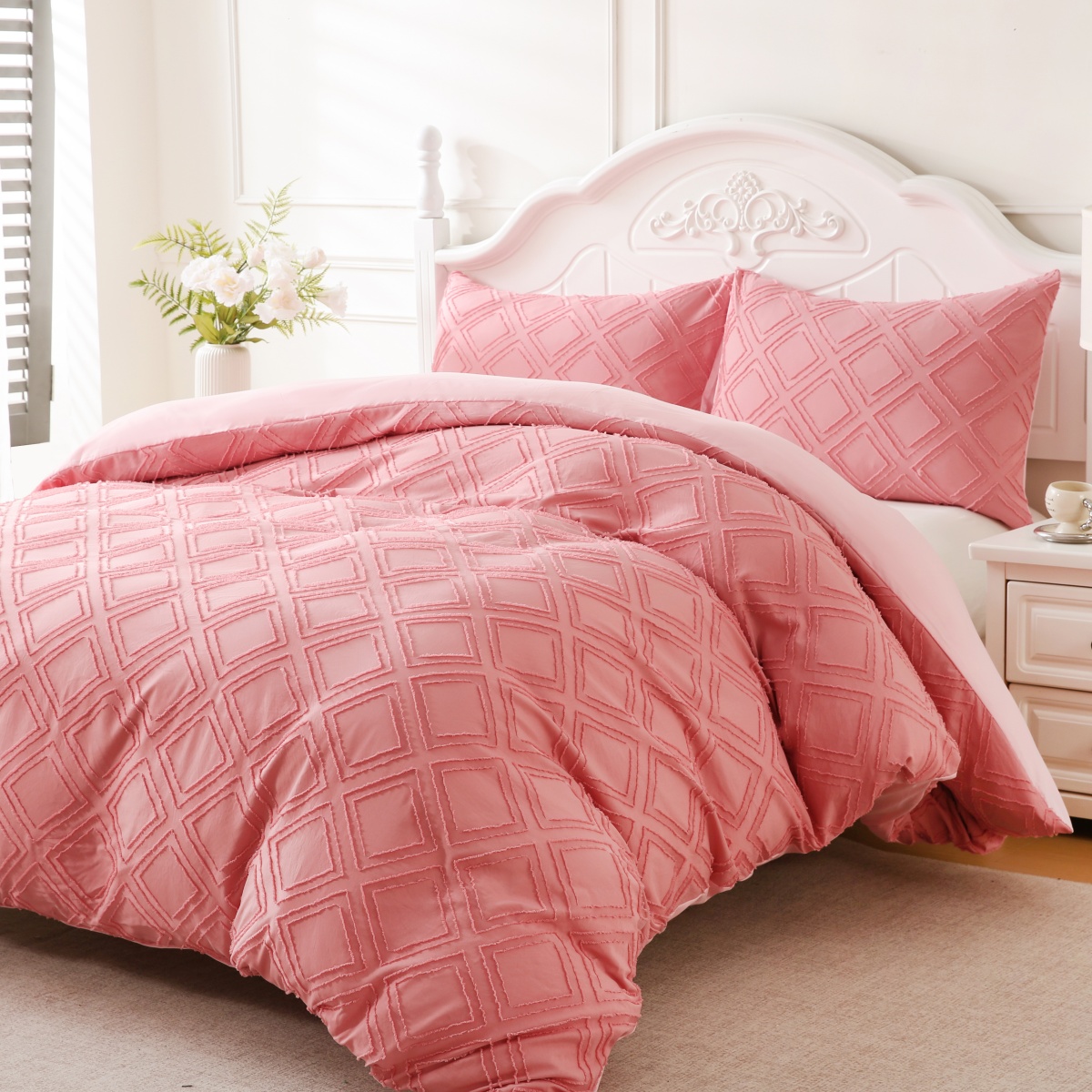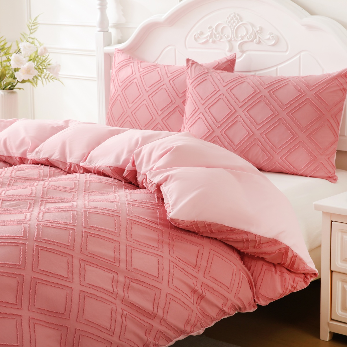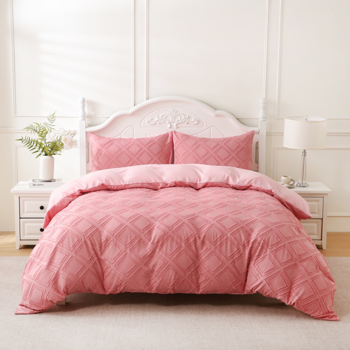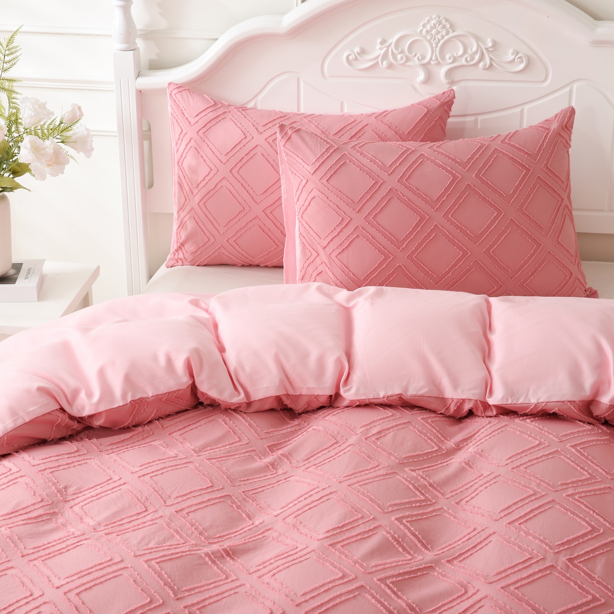 当前位置: 91家纺网 > 商品网购 > 跨境商品 > 床上用品(Bedding) > 床品套件(Bedding Comforter Sets) > 子不语家纺2025新款跨境外贸 剪花簇绒纯色三件套亚马逊Temu速卖 通Shein沃尔玛专供 菱形粉