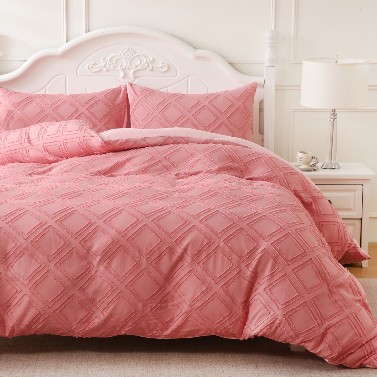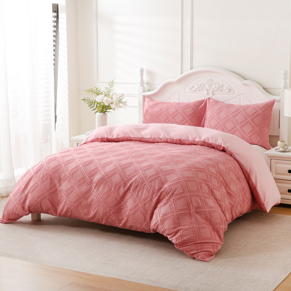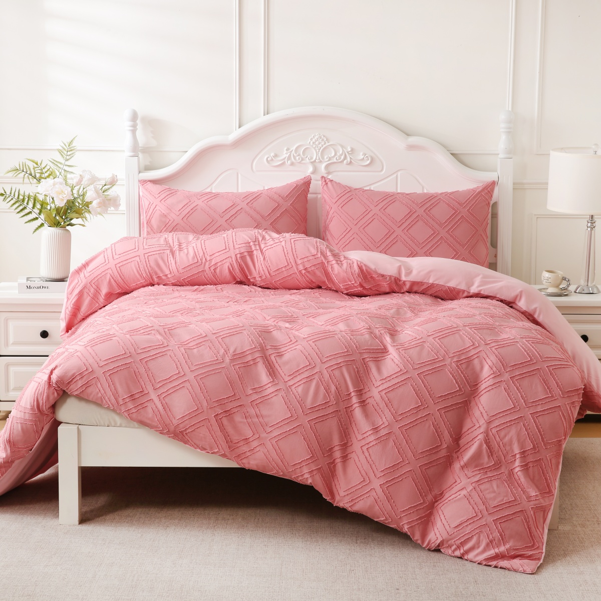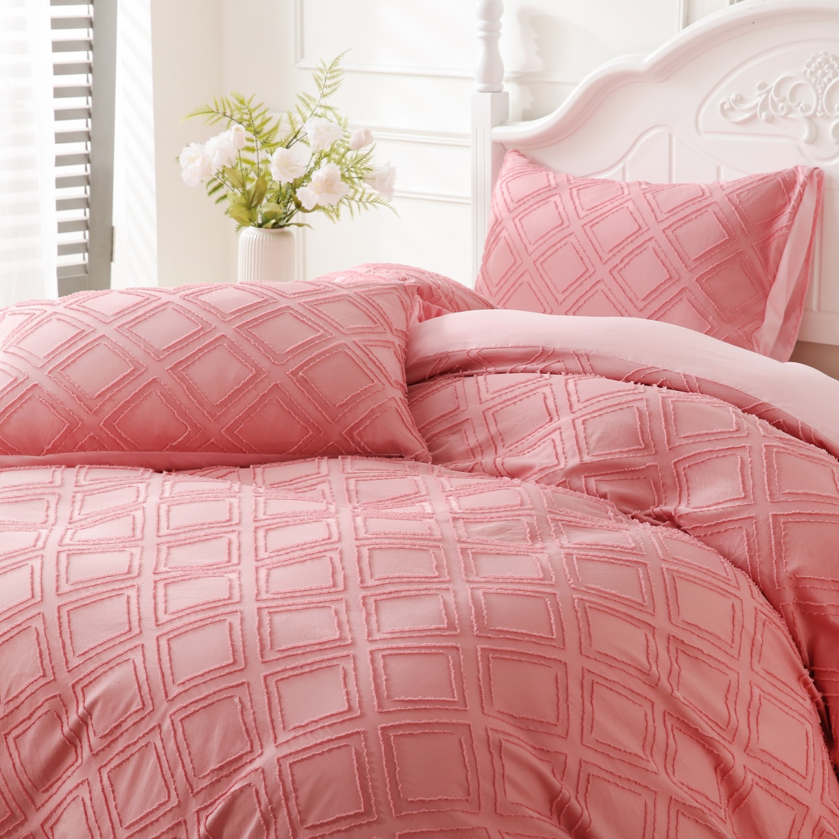 当前位置: 91家纺网 > 商品网购 > 跨境商品 > 床上用品(Bedding) > 床品套件(Bedding Comforter Sets) > 子不语家纺2025新款跨境外贸 剪花簇绒纯色三件套亚马逊Temu速卖 通Shein沃尔玛专供 菱形粉