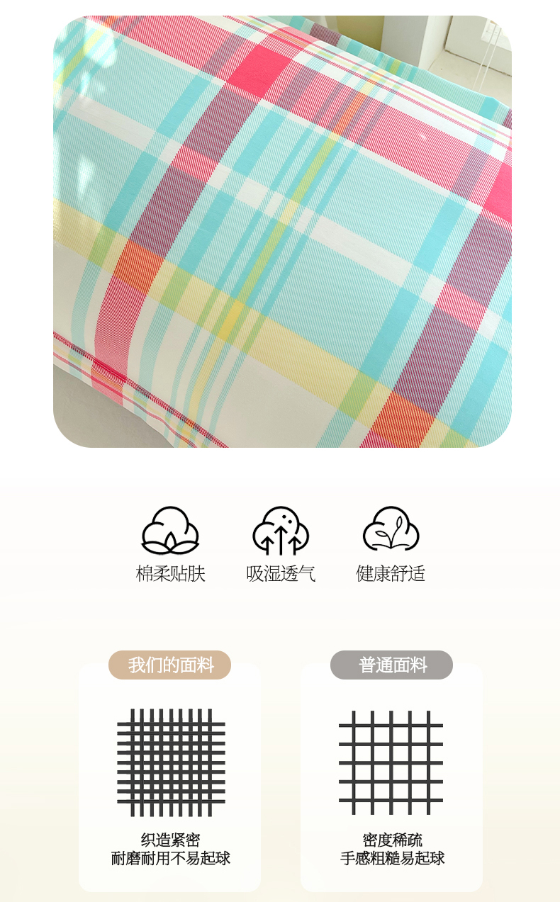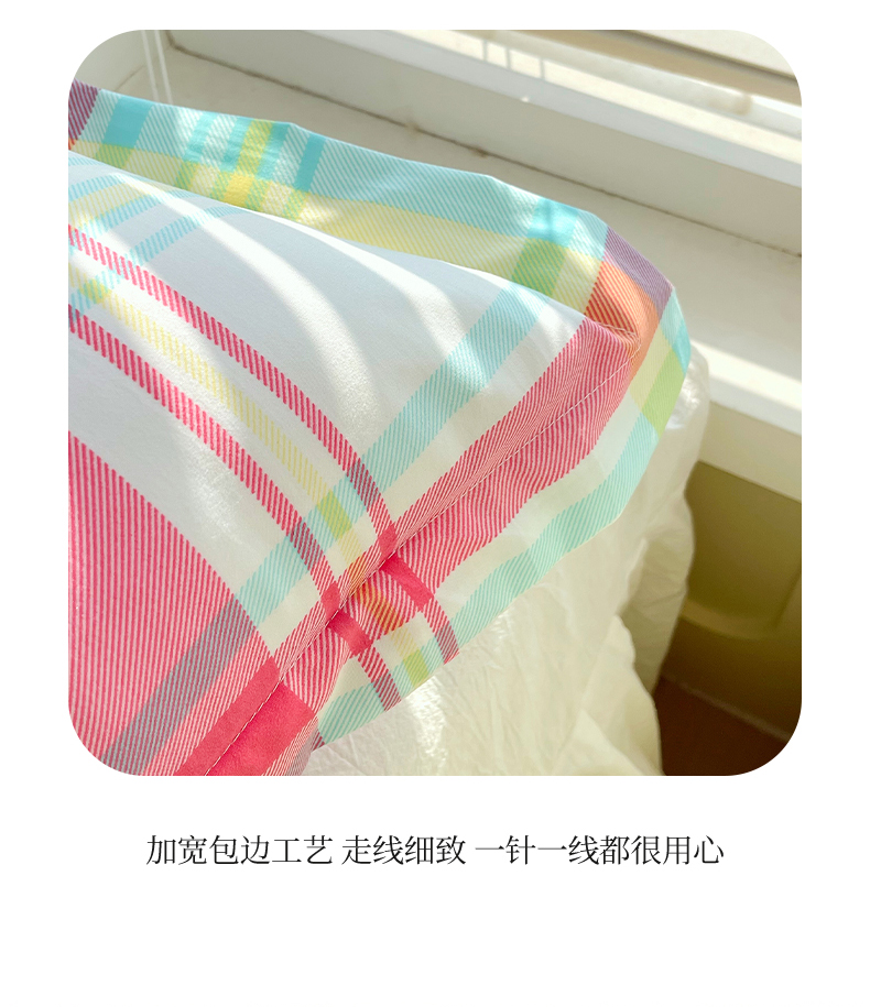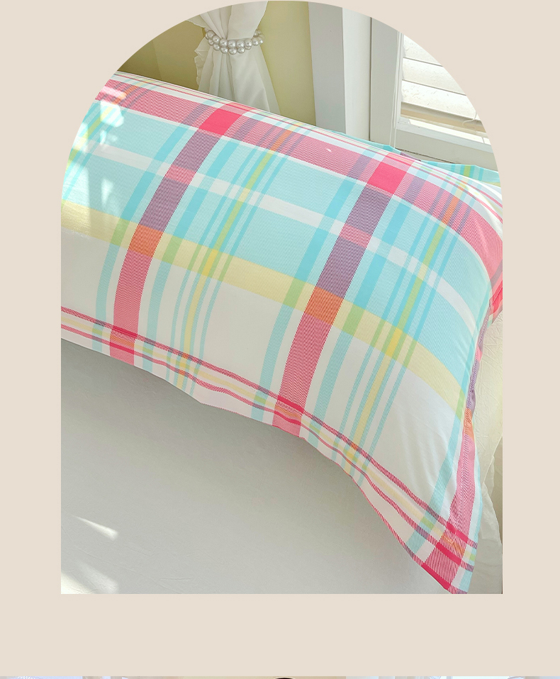 商品名称:雨彤家纺 2025年新款A类条纹水洗棉枕套 春彩格