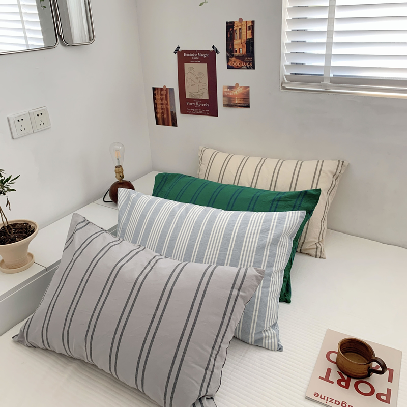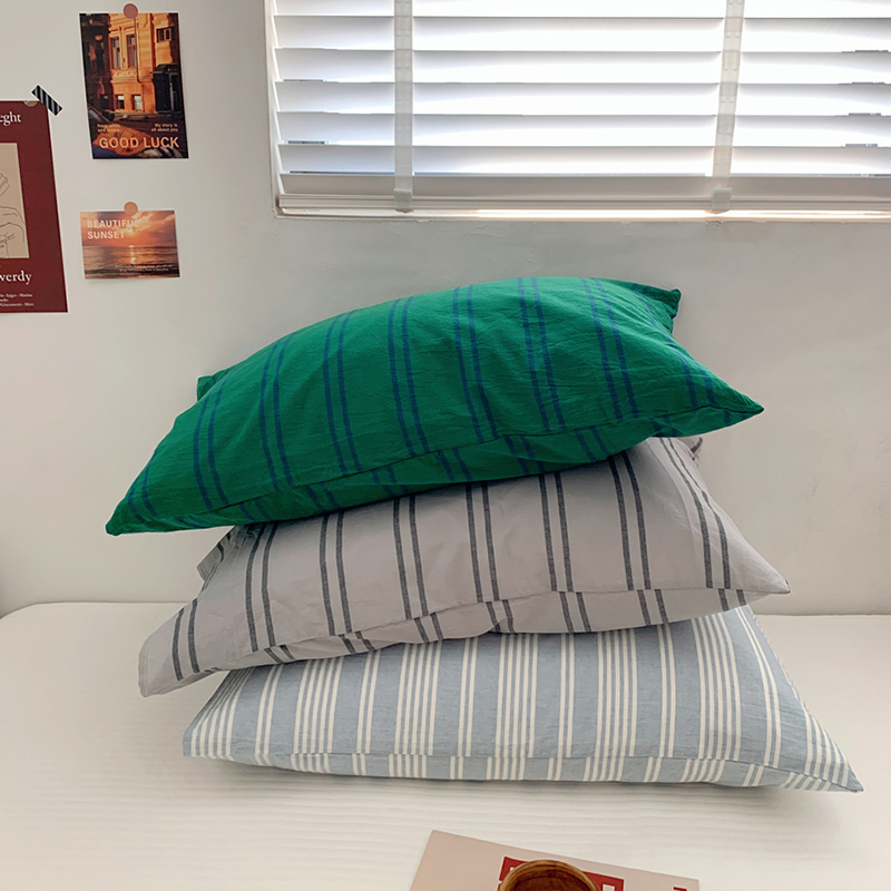 柚可家居 2024新款水洗棉条纹系列单枕套-系列一 淡蓝竖条纹
